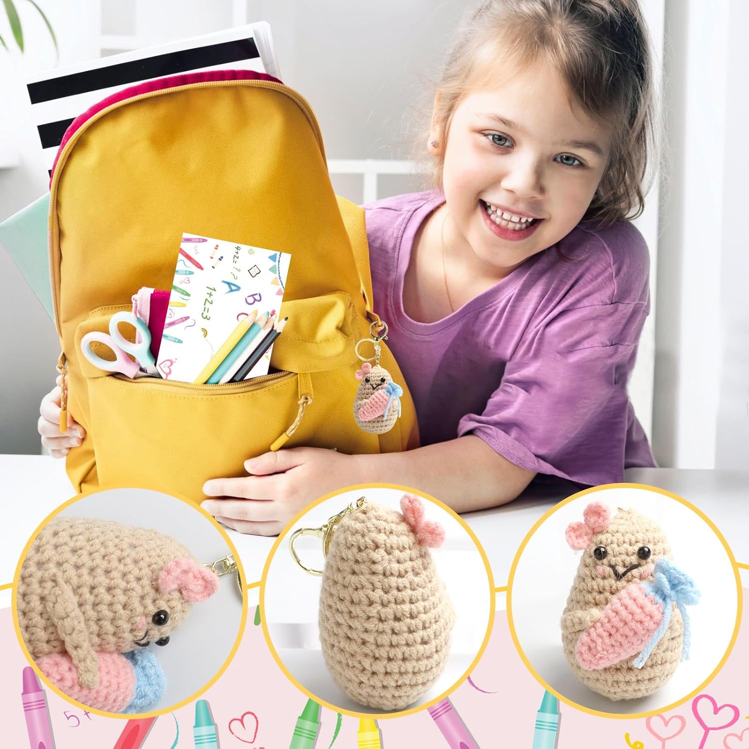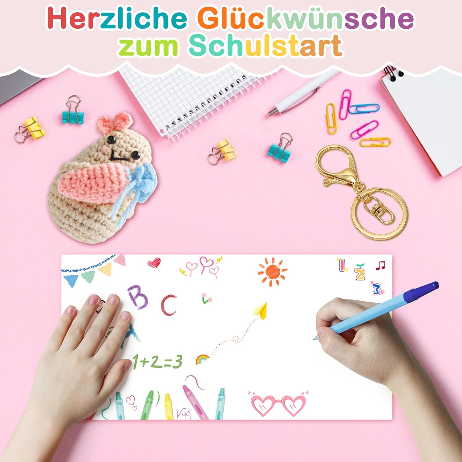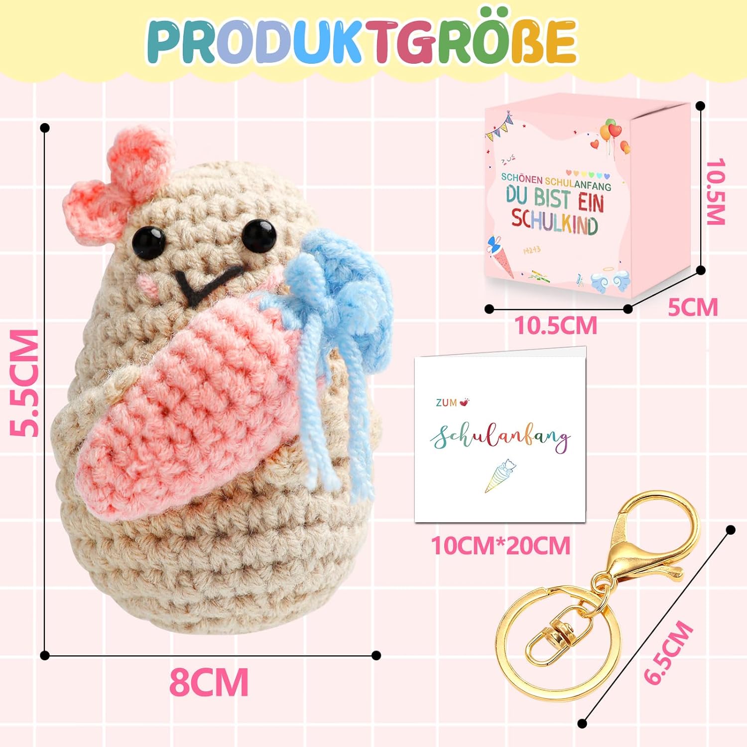 【Regalo scolastico cono scolastico】 La confezione regalo contiene una bambola creativa di patate positiva lavorata a maglia con piccoli coni scolastici, 1 dolce biglietto di auguri e un portachiavi. Lascia che la bambola patata positiva portafortuna dia calore e forza ai tuoi bambini e li accompagni a scuola. 【Bambola di lana fatta a mano】 La graziosa bambola di patate è fatta di lana e ogni bambola di patate è cucita a mano da artigiani. Le bambole di patate sembrano rotonde e paffute, sono morbide e si sentono benissimo. 【Biglietti d'auguri creativi】 Le confezioni regalo creative e i biglietti d'auguri sono appositamente progettati per il rientro a scuola, utilizzando graziosi disegni grafici e colori vivaci adatti ai bambini e contengono calorosi auguri per i bambini. I regali per il rientro a scuola rendono felici i più piccoli il primo giorno di scuola. 【Facile da trasportare】 Le bambole lavorate a maglia sono leggere e facili da trasportare. Il portachiavi incluso è realizzato in acciaio inossidabile. Appendi il portachiavi allo zaino, allo zaino o al portachiavi per tenerlo con i tuoi bambini. I dolci angeli custodi possono accompagnare i bambini delle scuole elementari a scuola e proteggerli dagli imprevisti. 【Confezione regalo squisita】 Il design carino e raffinato della confezione regalo lo rende molto adatto come regalo di rientro a scuola per i bambini. Adatto anche come regalo per esprimere incoraggiamento e sostegno ai ragazzi e alle ragazze in età scolare! Usalo come talismano, souvenir, regalo di compleanno, ecc. Per rendere felici i bambini!