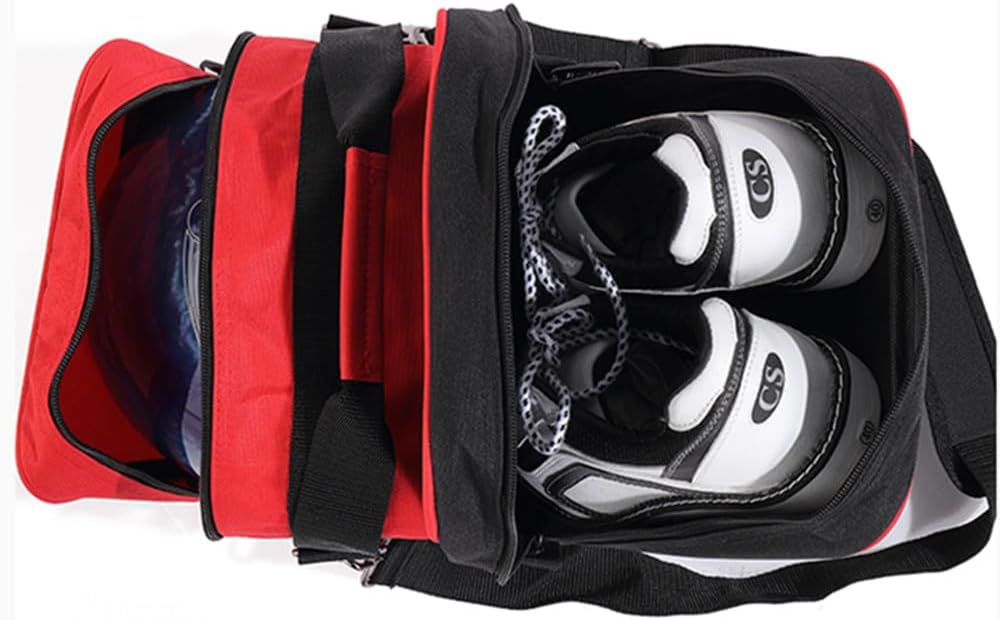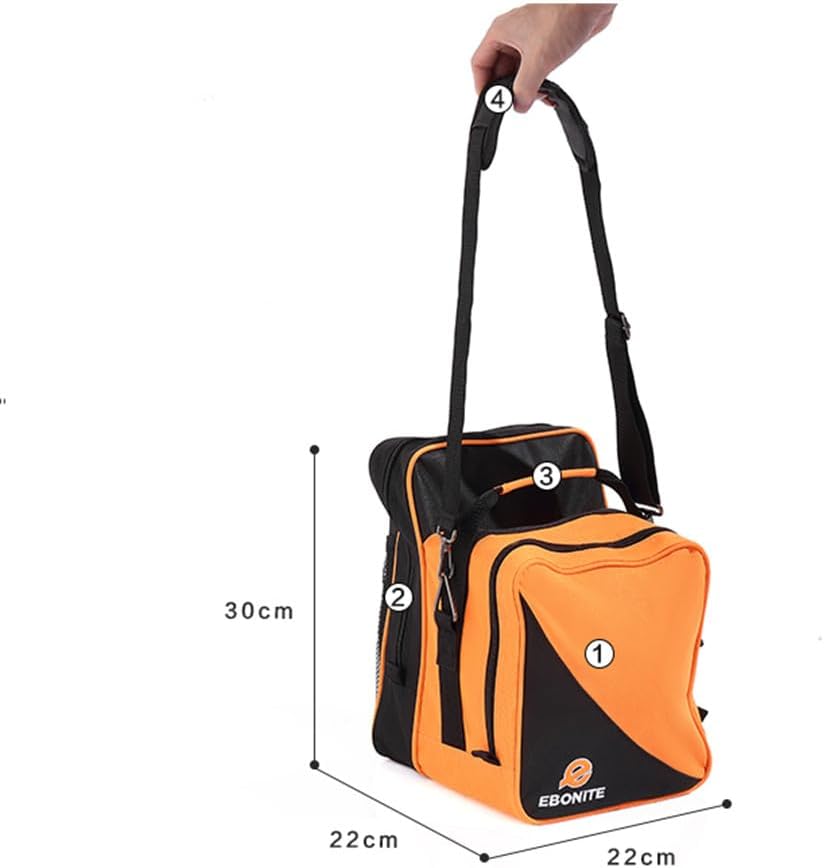 Alta qualità: la borsa da bowling a palla singola è realizzata in materiale molto resistente da 1680 denari, ed è progettata per resistere e pesare, è un ottimo regalo per principianti e giocatori di bowling. La dimensione di questa borsa da bowling è L x W x H: 30*22*22CM. Spazio separato per le scarpe: la borsa da bowling con uno scomparto per scarpe, può contenere un paio di scarpe da bowling. Facile da trasportare: la borsa da bowling a palla singola dispone di una tracolla regolabile per ridurre lo stress per la spalla, e il manico imbottito assicura di trasportare comodamente la borsa per palline da bowling. La borsa da bowling singola palla appositamente progettata con la tasca a rete per asciugamano bagnato o telefono, chiavi, portafoglio e altri piccoli oggetti.