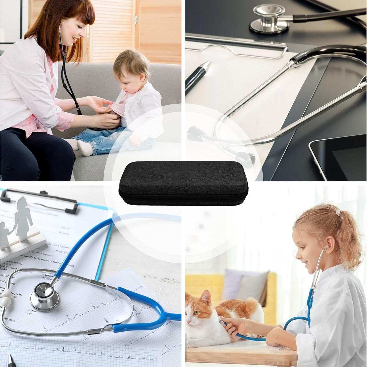 CAPACITÀ AMPLIATA: il design spazioso di questa borsa per stetoscopio per infermiere offre molto spazio per riporre gli oggetti e spazio extra per piccoli accessori medici. Tessuto antigraffio: proteggi la vita del tuo stetoscopio con la nostra custodia antiurto, progettata con fodera in velluto per attutire le cadute e tessuto EVA antigraffio e resistente all'usura per una maggiore durata. AMICA DEL VIAGGIO: la nostra custodia per stetoscopio è una soluzione pratica per i professionisti medici in movimento. Il design leggero e portatile con cinghia da polso consente un facile trasporto senza aggiungere peso. Ampia applicazione: mantieni il tuo stetoscopio e altri elementi essenziali per la cura organizzati e al sicuro con la nostra custodia robusta che li protegge da sporco, graffi e usura. Perfetto per studenti di infermieristica, medici, ecc. Protezione per stetoscopio e accessori: proteggi il tuo stetoscopio e gli accessori da urti e scivolamenti imprevisti con la nostra custodia per stetoscopio antiurto. Esterno rigido, rivestimento interno morbido e liscio e tasca in rete per riporre comodamente gli oggetti.