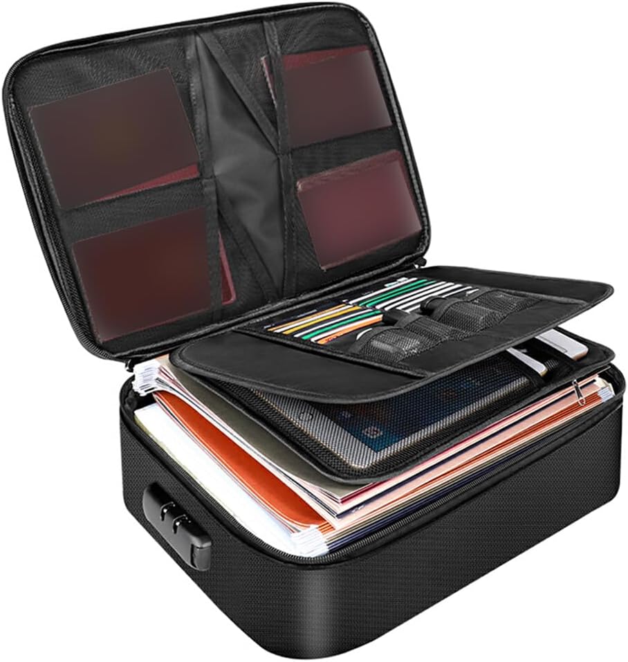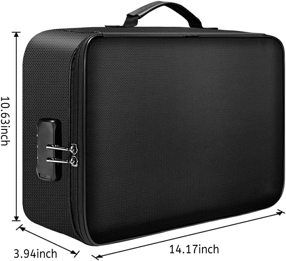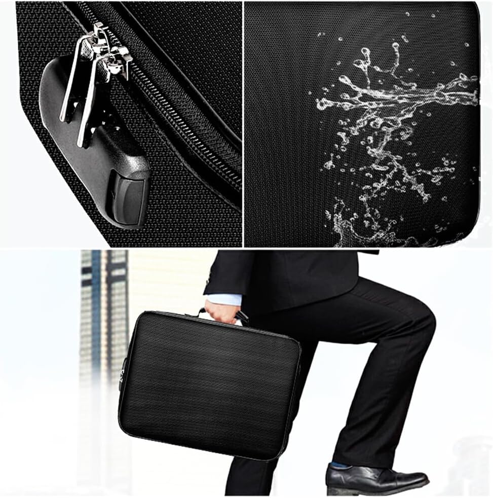 Materiale durevole: questa custodia per file è realizzata in fibra di vetro rivestita in silicone a doppio strato che è ignifuga e impermeabile, una protezione extra è sempre una buona idea Design speciale: facile trovare rapidamente i file che stai cercando. Progettato con una maniglia robusta per trasportare facilmente tutto ciò di cui hai bisogno. Funzione utile: le cerniere a doppio cursore facilitano l'apertura e la chiusura della borsa. Dotato di blocco password per proteggere i tuoi oggetti di valore Pregevole fattura: lavorazione squisita, lunga durata, dettagli squisiti, possono servirti a lungo Strumento significativo: può archiviare documenti importanti, denaro, disco U, carte, certificati, tablet in modo sicuro e ordinato
