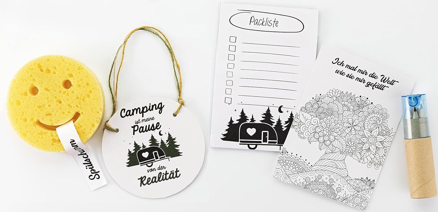 La borsa a sorpresa piena di spirito natalizio Per tutti gli appassionati di campeggio e camper Ottimo regalo e souvenir Regala cose belle e fai del bene: borsa a sorpresa realizzata in laboratori per persone con disabilità Ritorno alla natura e all'avventura... La piccola borsa a sorpresa è una grande sorpresa per tutti i campeggiatori e gli amanti delle tende. Pieno di utensili utili e, soprattutto, per diffondere l'attesa prima della tua prossima vacanza in campeggio. Perché si sa: “Casa è dove parcheggiamo” – un buon motto per tutti gli appassionati di outdoor. Con questo in mente: divertiti a fare regali! Borsa Campig, contenuto: blocco portadocumenti per le vacanze in campeggio, spugna per piatti con faccina sorridente, portachiavi per la chiave della roulotte, mandala da colorare per i giorni di pioggia, set di matite colorate, piccola insegna da appendere; dicendo: "Il campeggio è la mia pausa dalla realtà". La cosa migliore è ordinare la borsa a sorpresa da campeggio online qui!