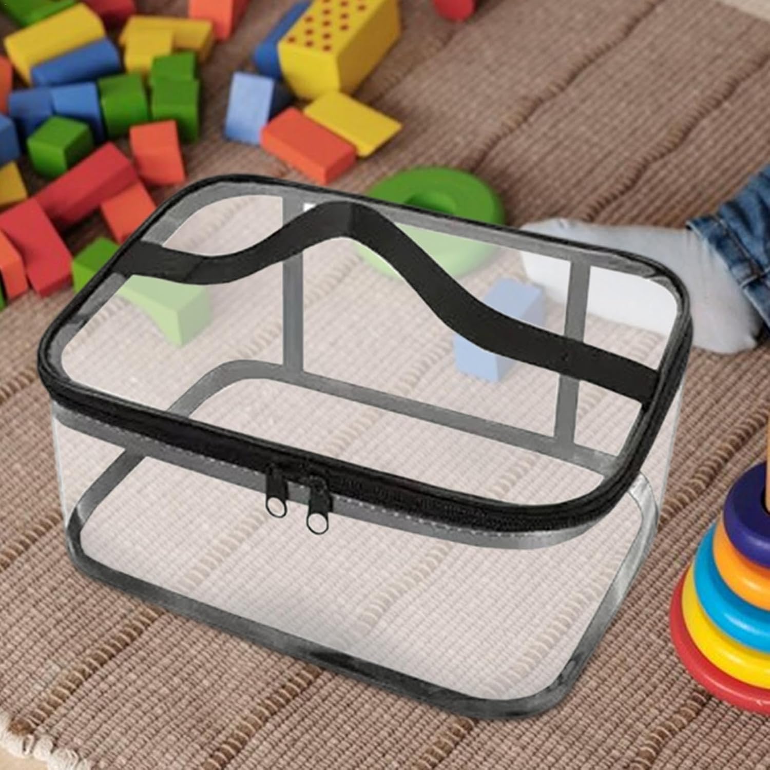Migliore organizzazione: semplifica i tuoi giochi con i mattoncini con la nostra custodia che ti consente di ordinare e organizzare pezzi di diversi colori e forme. Mantieni la tua stanza dei giocattoli o il tuo banco da lavoro in ordine e organizzato con questa versatile soluzione di archiviazione che si adatta a una varietà di parti di costruzione. Design semplificato: con il suo design cristallino, la nostra custodia consente una facile visibilità di tutti i contenuti a colpo d'occhio, eliminando la necessità di aprire e navigare ogni volta che hai bisogno di determinate parti. La soluzione perfetta per esperienze di costruzione rapide. Materiale eccellente: la nostra custodia in PVC di alta qualità protegge i tuoi blocchi con resistenza alla pressione e senza bordi irregolari. È perfetto per i bambini e offre un'eccellente durata per mantenere i tuoi blocchi al sicuro. Facile da trasportare: con una comoda maniglia, il nostro circuito di costruzione offre una comoda portabilità per il divertimento in movimento. Il tuo bambino potrà godersi l'emozione delle costruzioni sempre e ovunque, a casa, a scuola o in viaggio. Dimensioni adatte: con dimensioni di 23 x 17 x 10 cm, questa borsa portaoggetti è della dimensione perfetta per organizzare una vasta collezione di costruzioni pur essendo abbastanza compatta da poter essere riposta facilmente in piccoli spazi