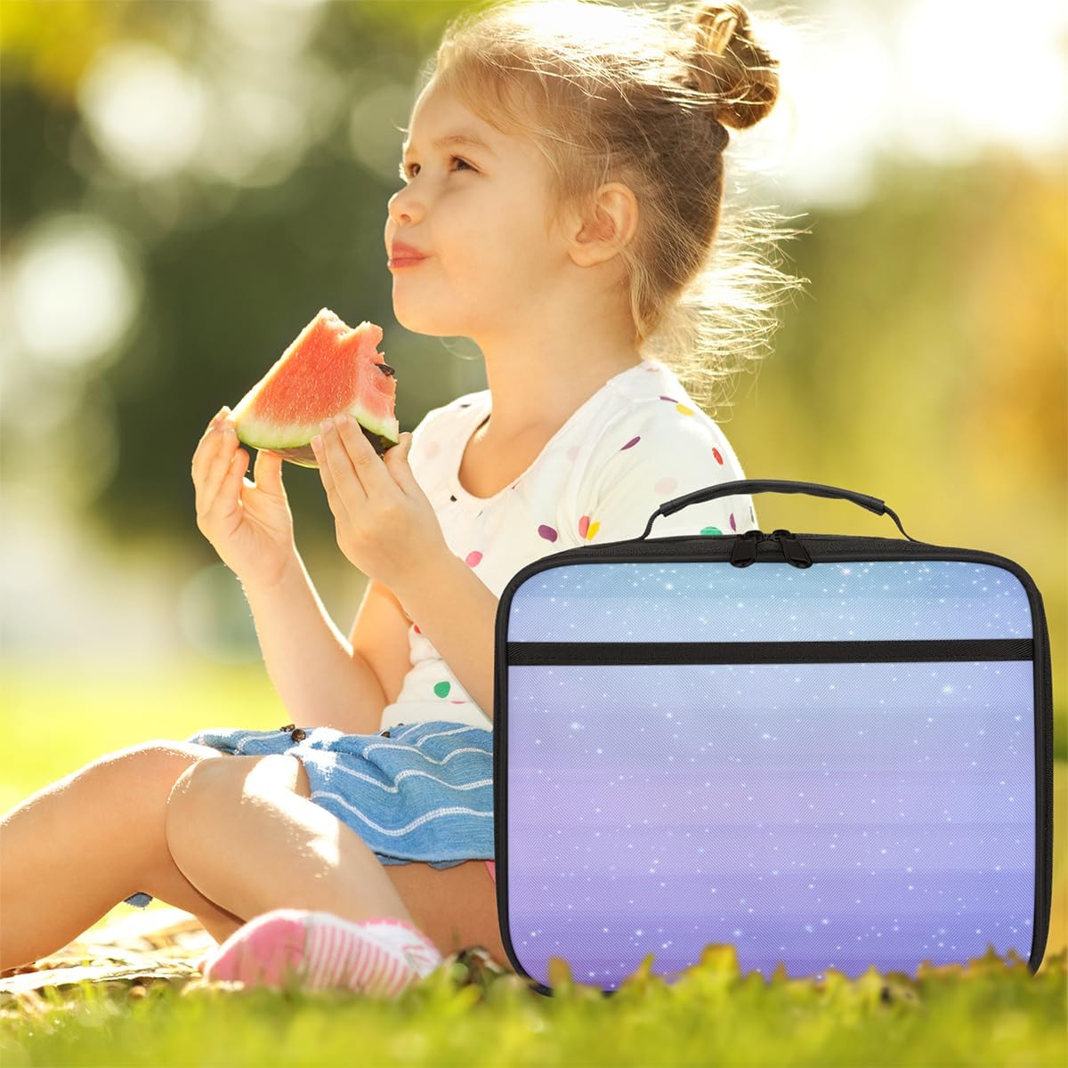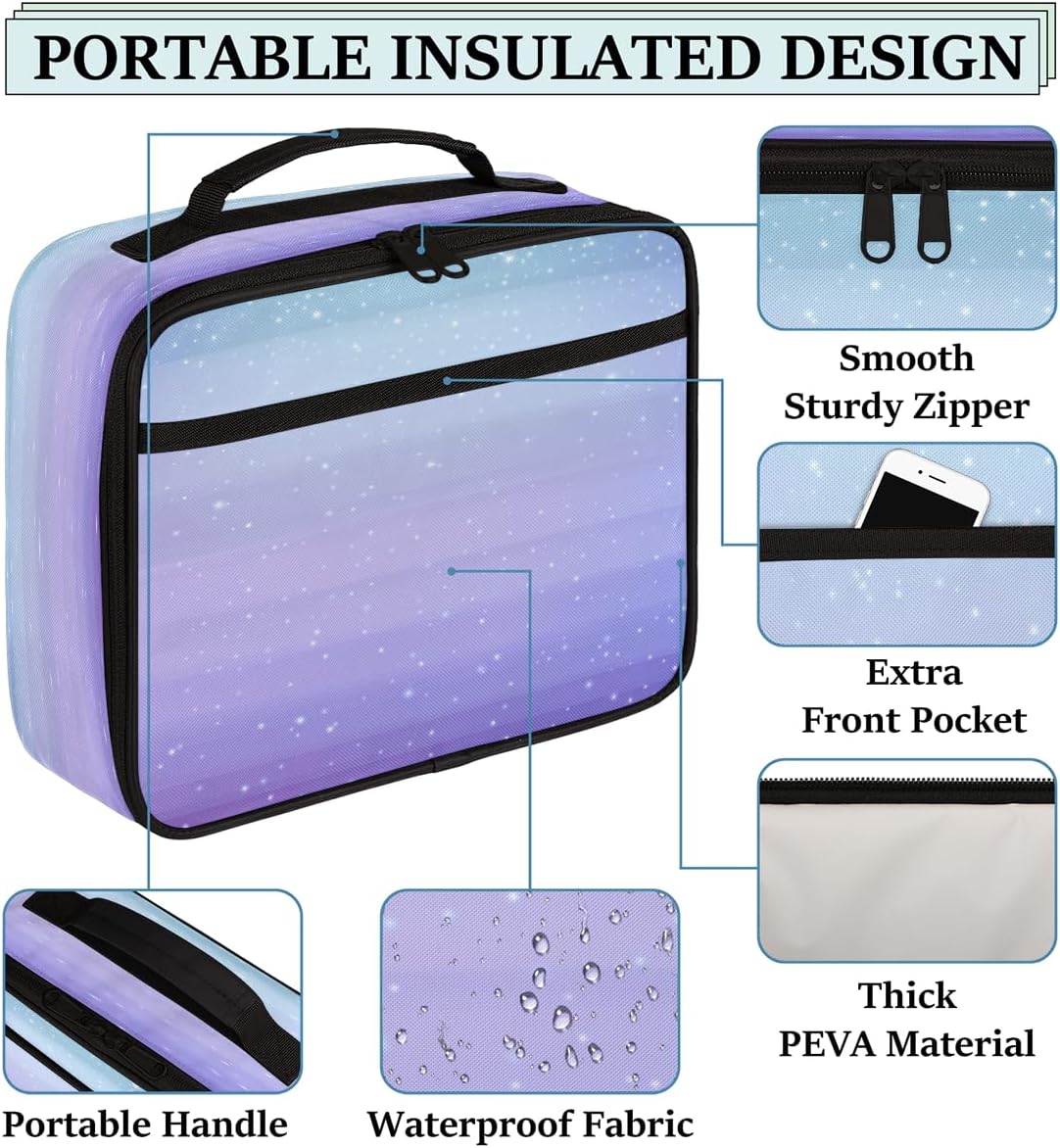Borsa portapranzo per bambini blu e viola, borsa per il pranzo per ragazzi e ragazze, riutilizzabile, isolata, bento, per scuola, picnic, lavoro
