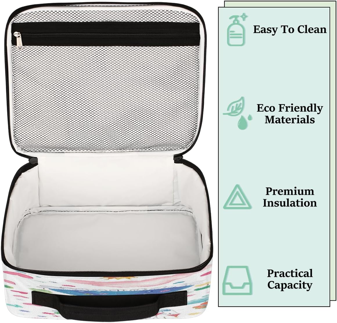 ✿ Dimensioni della borsa portapranzo: 21 x 10 x 26 cm, si adatta perfettamente al tuo portapranzo, frutta, snack e persino bottiglia per frullati proteici ✿ Materiale del contenitore per il pranzo isolato: la borsa per il pranzo riutilizzabile è realizzata in poliestere altamente resistente, facile da pulire, mantiene il cibo o le bevande fresche, calde o fredde per diverse ore, a prova di perdite per l'uso quotidiano Grande capacità: 1 tasca principale con cerniera per riporre facilmente molte cose, come bevande, snack, panini, frutta o verdura; 1 tasca frontale esterna con cerniera per riporre caramelle, chiavi, telefono e altri piccoli oggetti da portare in ufficio, escursioni, viaggi, feste ✿ Piume: la nostra borsa per il pranzo ha 1 tasca principale con cerniera per mantenere cibi e bevande caldi o freschi, 1 grande tasca frontale per chiavi, carte, telefoni e così via. È molto facile da portare ovunque come viaggi, spiaggia e sport; è facile da trasportare, a tracolla, inoltre, la tracolla può essere rimossa e trasformata in una borsa portatile per i pasti ✿ Regalo perfetto: motivi unici, regali unici, ideali per gli amici durante il festival, come compleanno, Natale, giorno della scuola