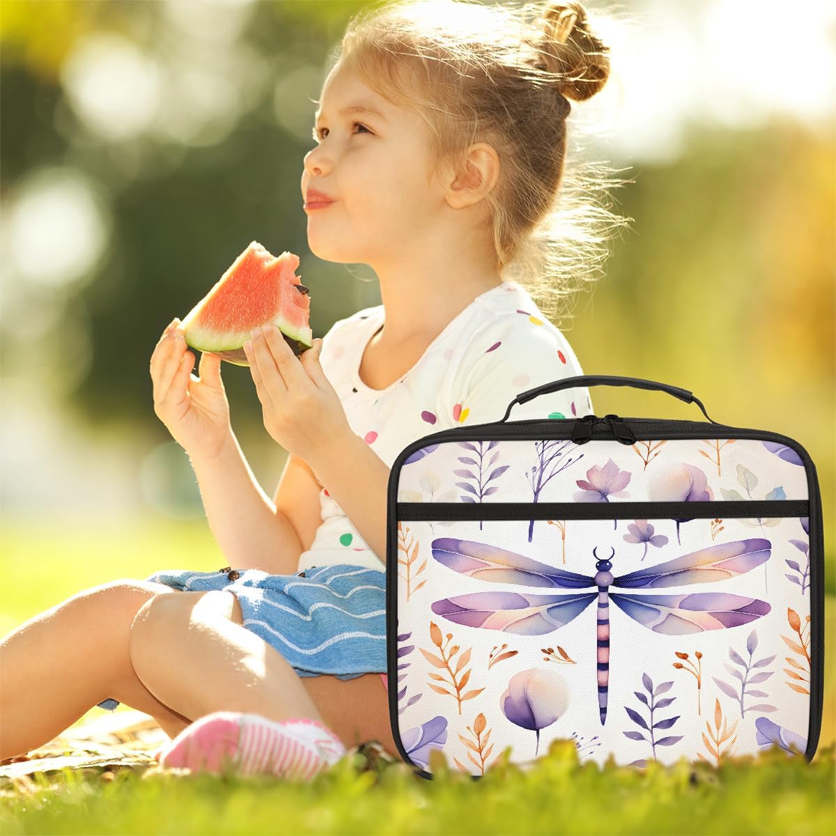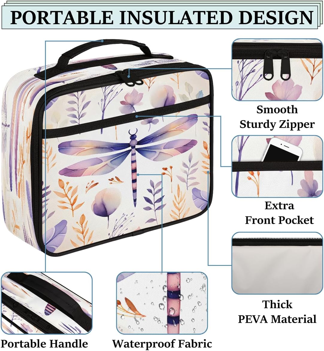 Borsa portapranzo per bambini con libellula, per ragazzi e ragazze, riutilizzabile, isolata, borsa bento, per scuola, picnic, lavoro