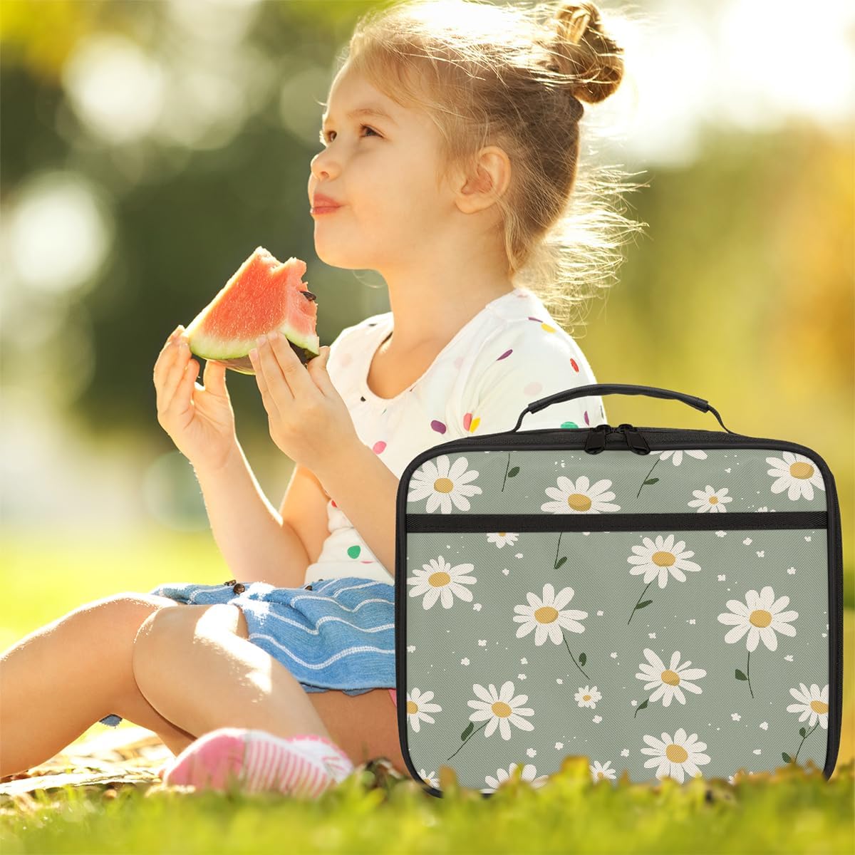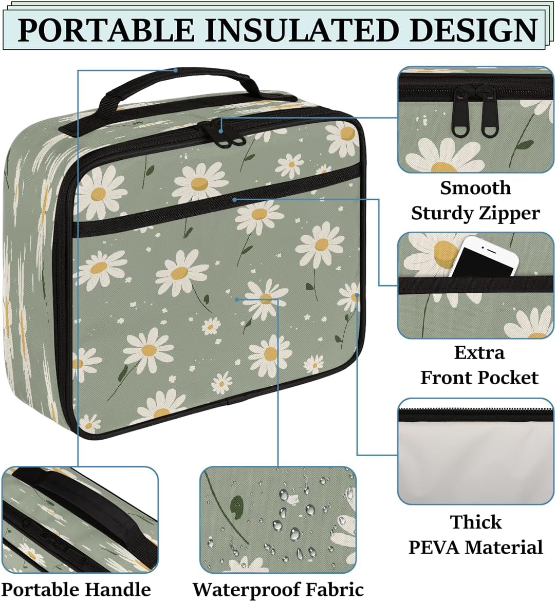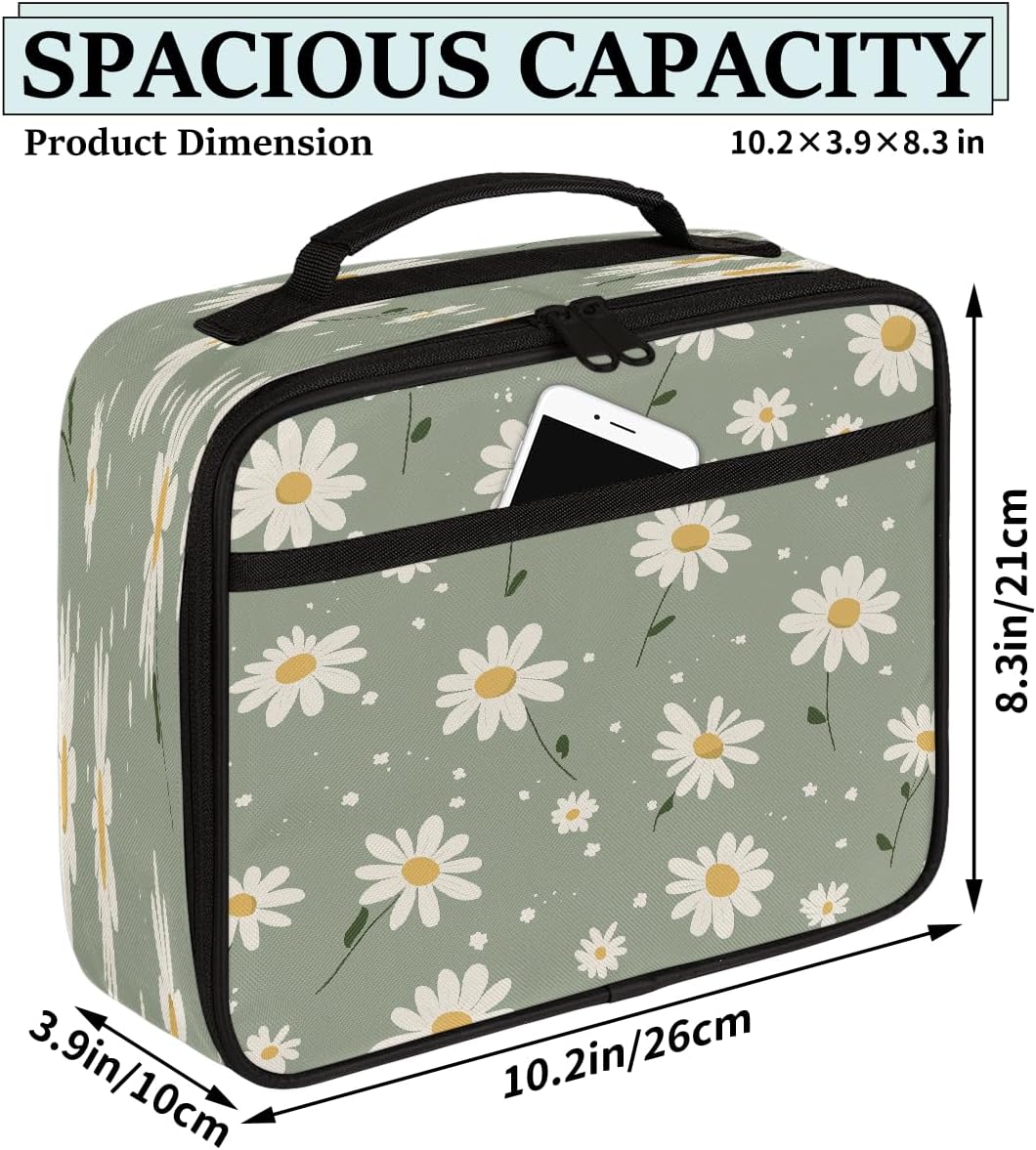 Borsa portapranzo per bambini con margherite primaverili, borsa per il pranzo per ragazzi e ragazze, riutilizzabile, isolata, bento, per scuola, picnic, lavoro
