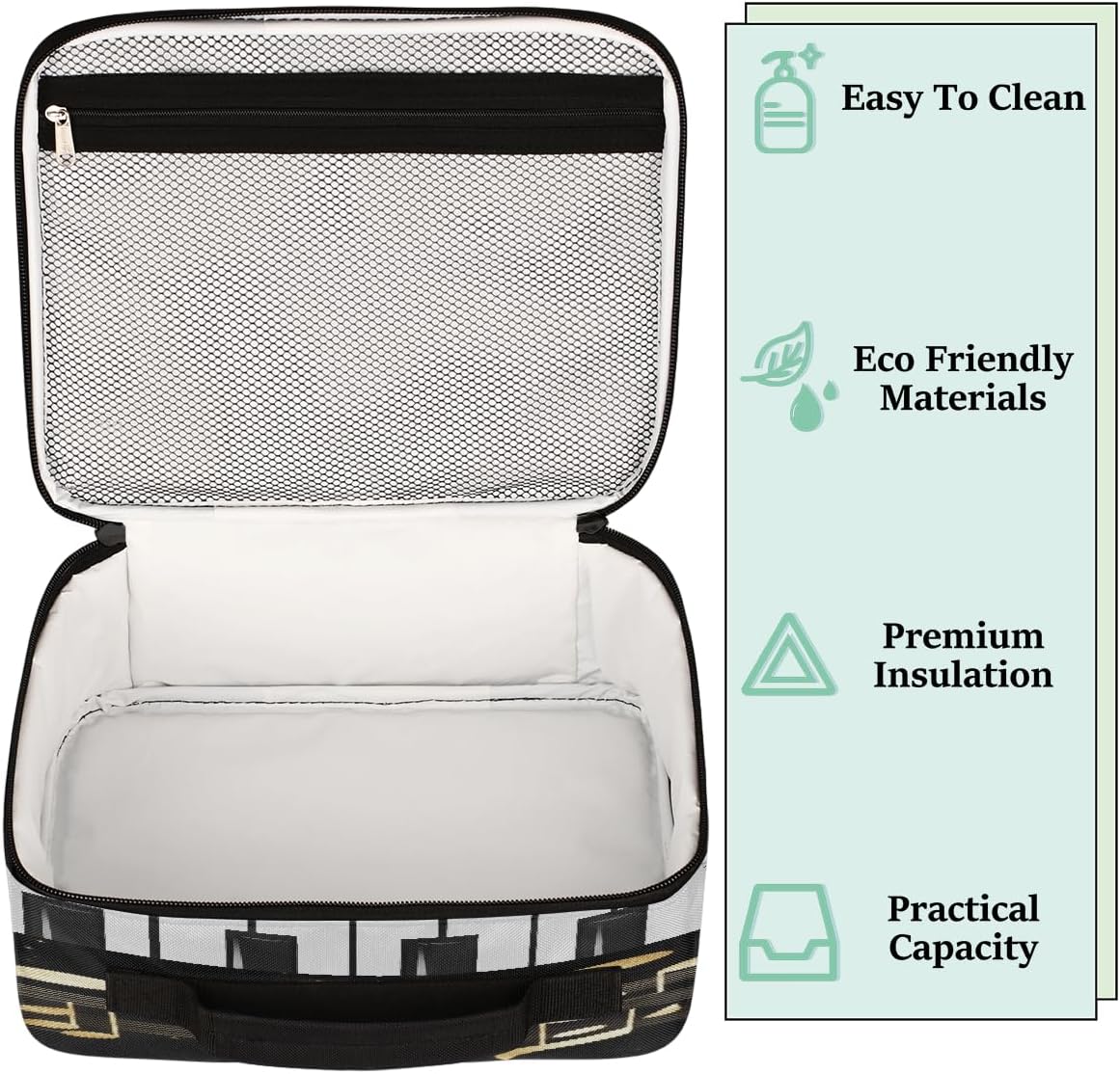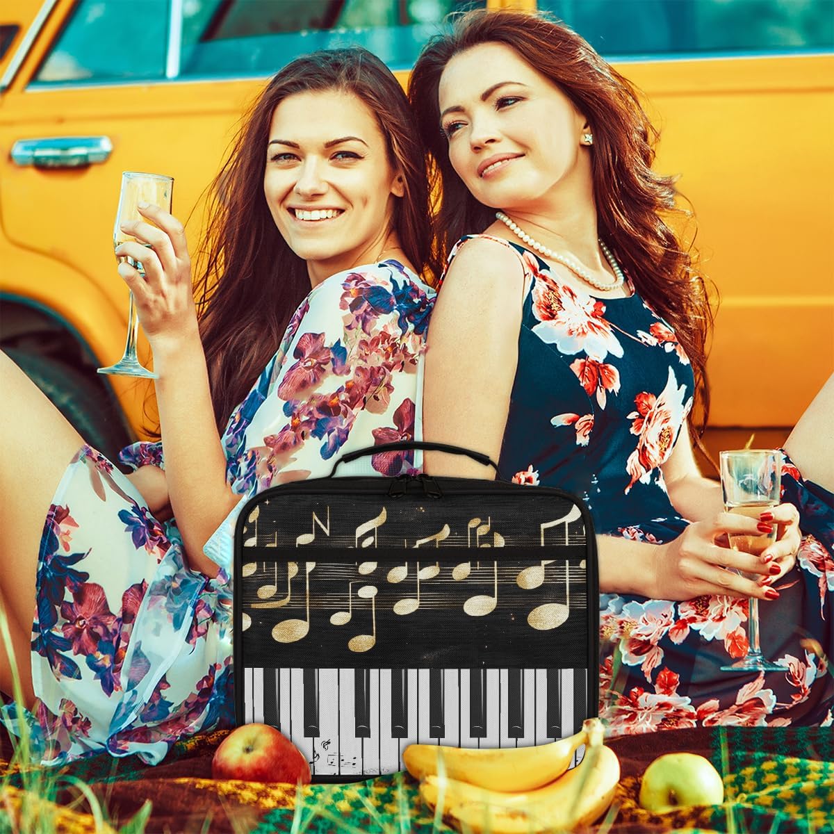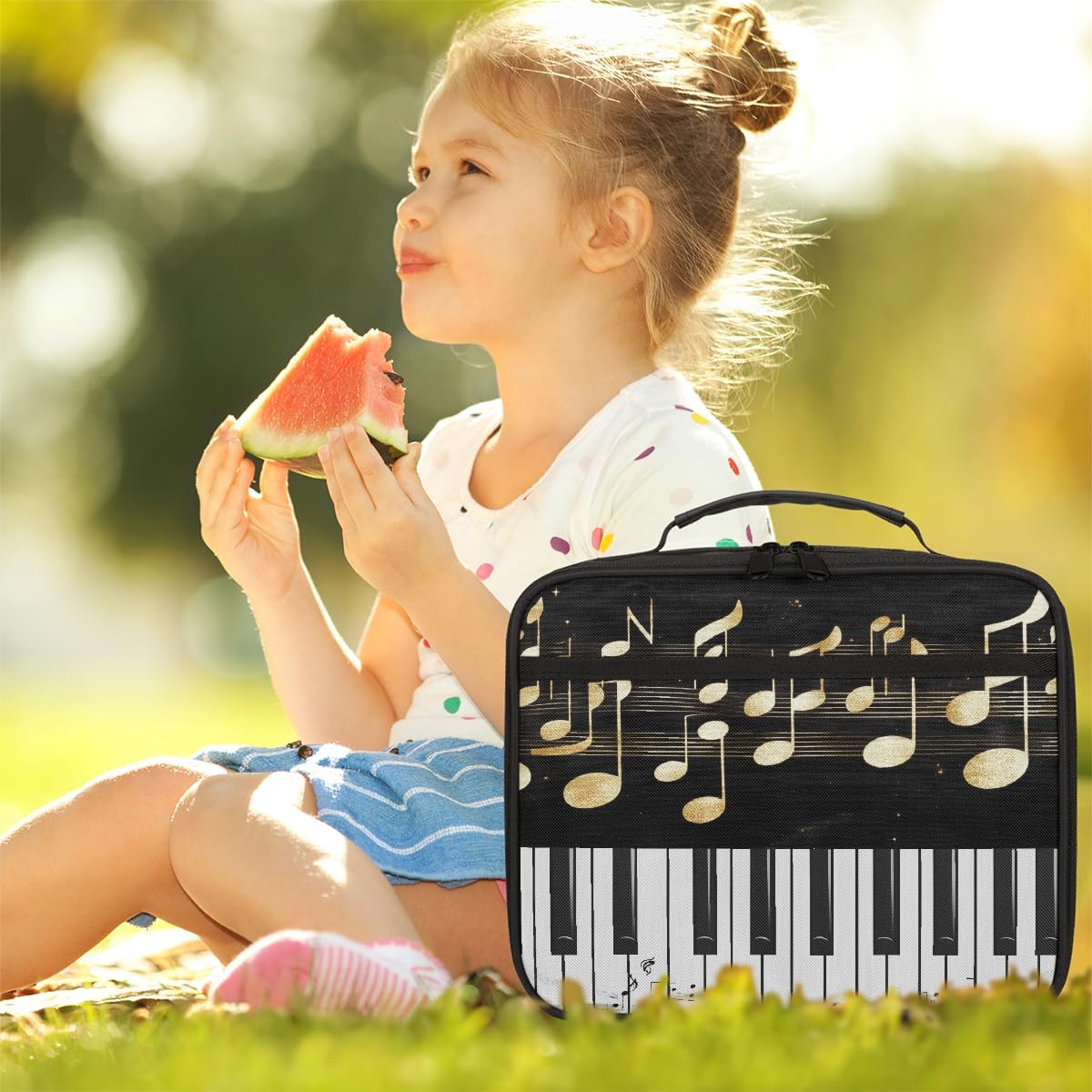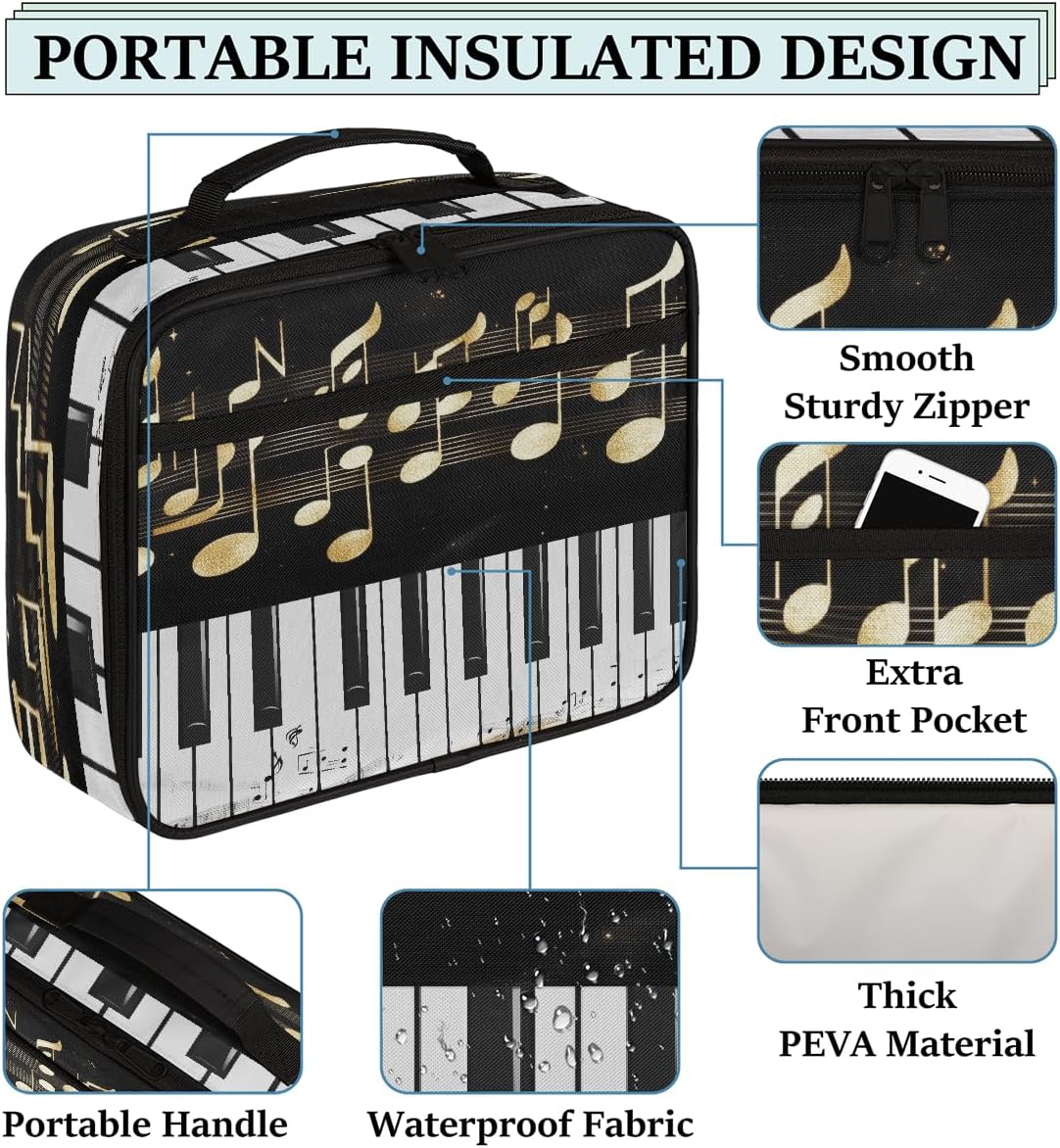 Borsa portapranzo per bambini con note musicali dorate e tastiera di pianoforte, borsa per il pranzo per ragazzi e ragazze, riutilizzabile, isolata, bento, per scuola, picnic, lavoro
