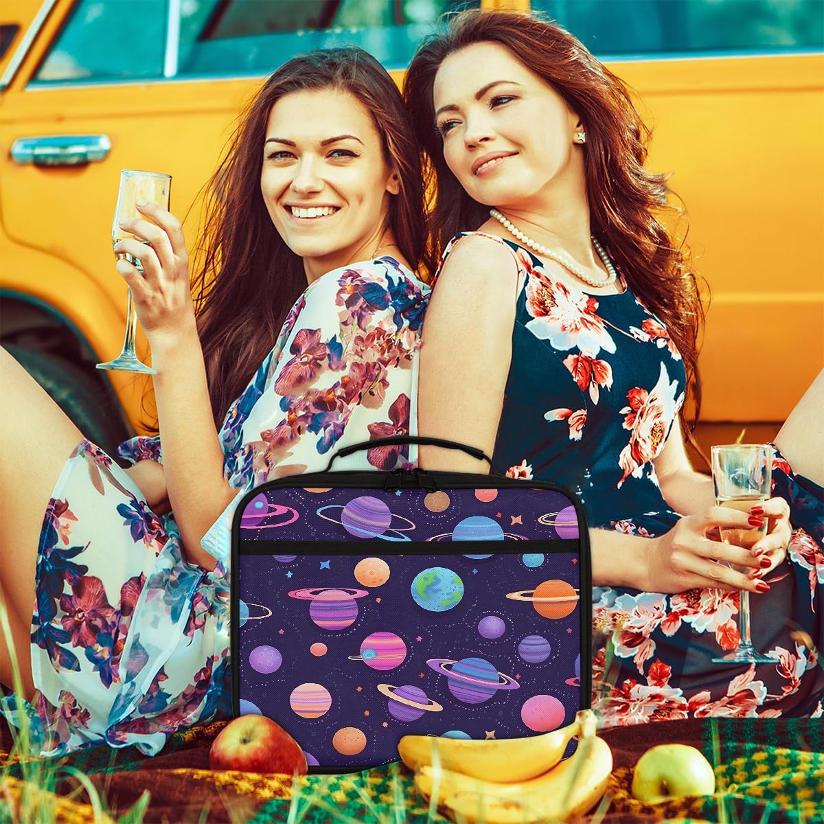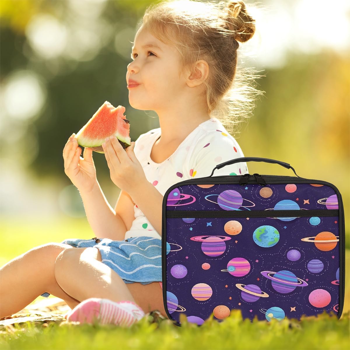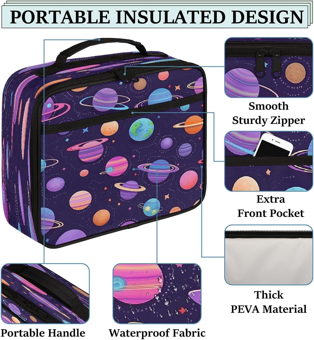Borsa portapranzo per bambini con pianeta dell'universo dei cartoni animati, borsa per il pranzo per ragazzi e ragazze, riutilizzabile, isolata, bento, borsa tote per scuola, picnic, lavoro
