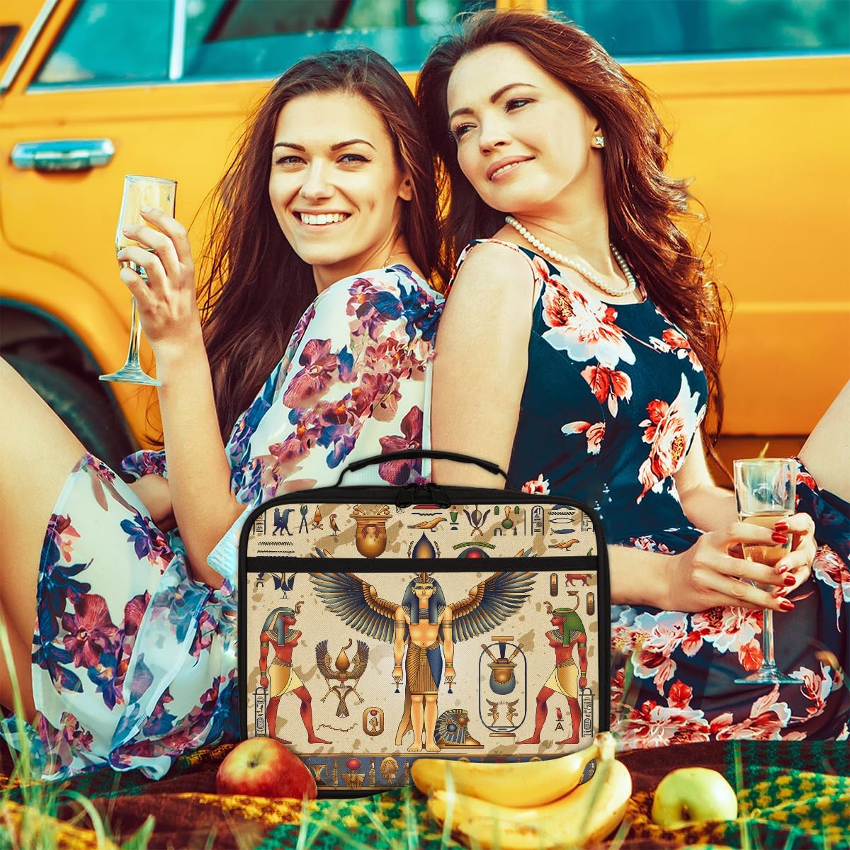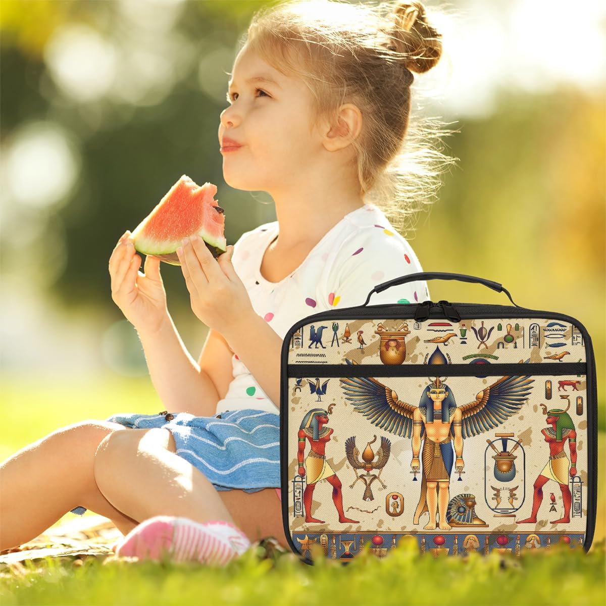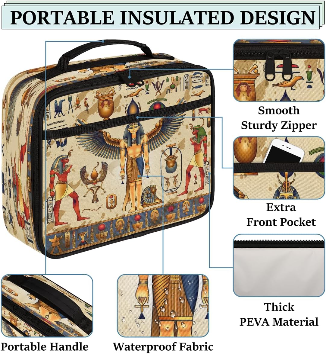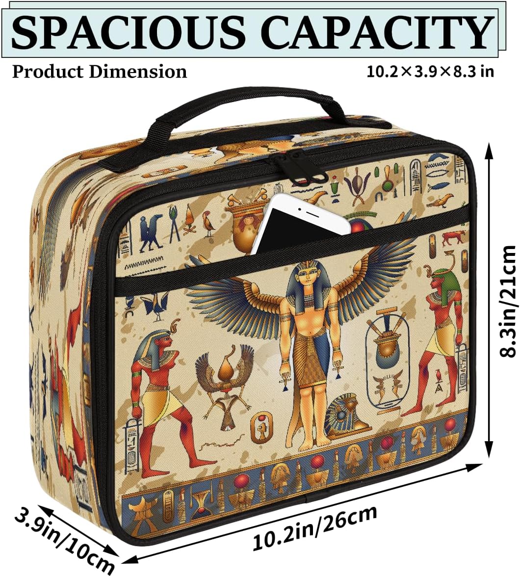 Borsa portapranzo per bambini con simboli egiziani retrò, borsa per il pranzo per ragazzi e ragazze, riutilizzabile, isolata, bento, per scuola, picnic, lavoro
