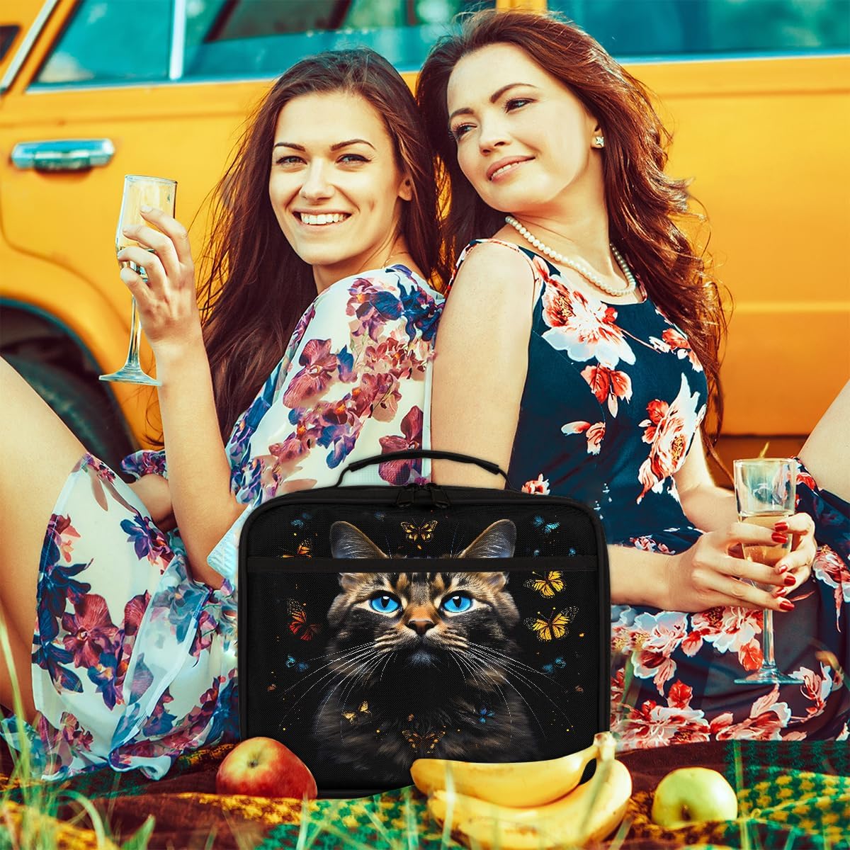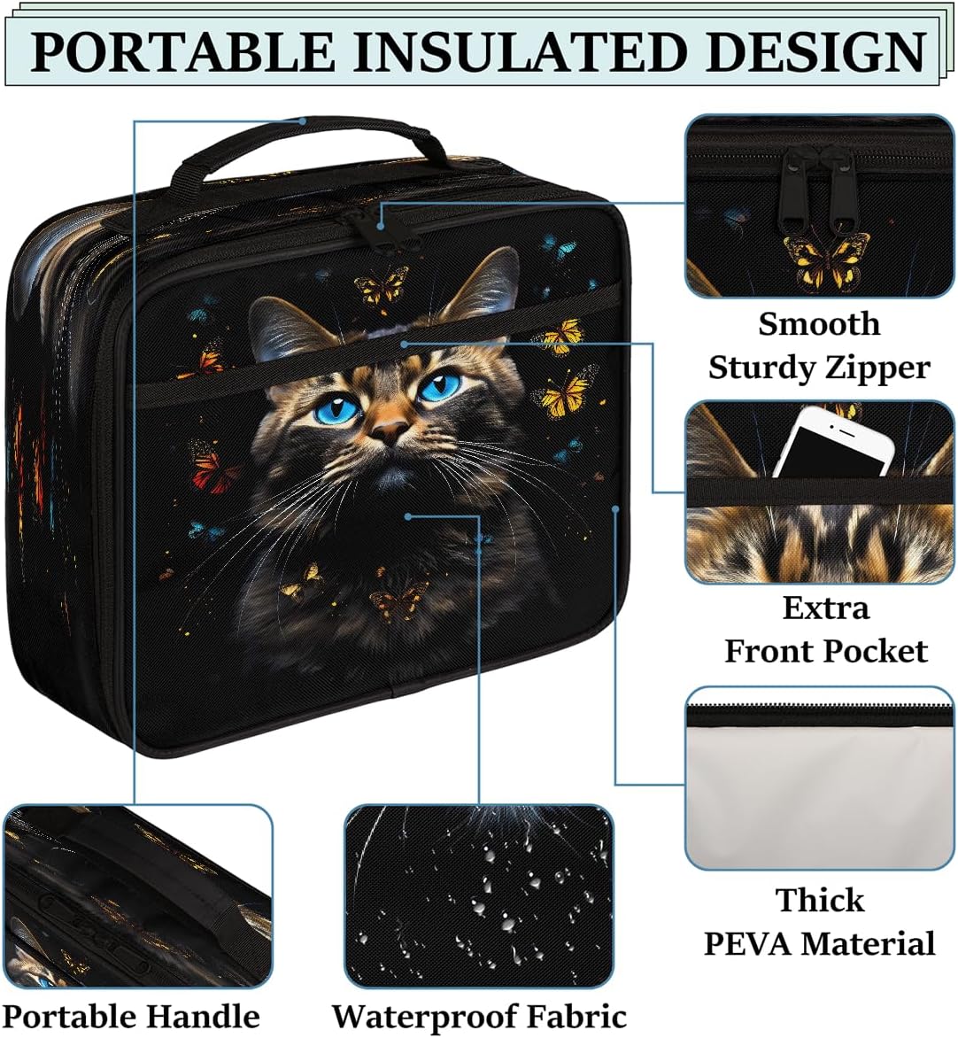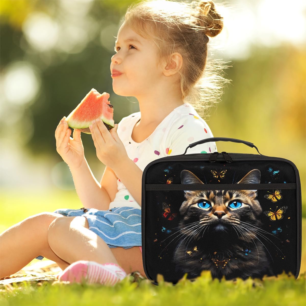 Borsa portapranzo per bambini con simpatico animale gatto farfalla borsa per il pranzo per ragazzi ragazze riutilizzabile isolata bento tote bag per scuola picnic lavoro