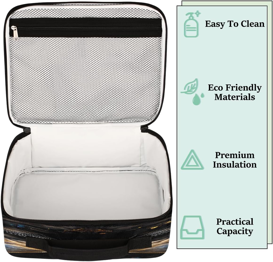 ✿ Dimensioni della borsa portapranzo: 21 x 10 x 26 cm, si adatta perfettamente al tuo portapranzo, frutta, snack e persino bottiglia per frullati proteici ✿ Materiale del contenitore per il pranzo isolato: la borsa per il pranzo riutilizzabile è realizzata in poliestere altamente resistente, facile da pulire, mantiene il cibo o le bevande fresche, calde o fredde per diverse ore, a prova di perdite per l'uso quotidiano Grande capacità: 1 tasca principale con cerniera per riporre facilmente molte cose, come bevande, snack, panini, frutta o verdura; 1 tasca frontale esterna con cerniera per riporre caramelle, chiavi, telefono e altri piccoli oggetti da portare in ufficio, escursioni, viaggi, feste ✿ Piume: la nostra borsa per il pranzo ha 1 tasca principale con cerniera per mantenere cibi e bevande caldi o freschi, 1 grande tasca frontale per chiavi, carte, telefoni e così via. È molto facile da portare ovunque come viaggi, spiaggia e sport; è facile da trasportare, a tracolla, inoltre, la tracolla può essere rimossa e trasformata in una borsa portatile per i pasti ✿ Regalo perfetto: motivi unici, regali unici, ideali per gli amici durante il festival, come compleanno, Natale, giorno della scuola