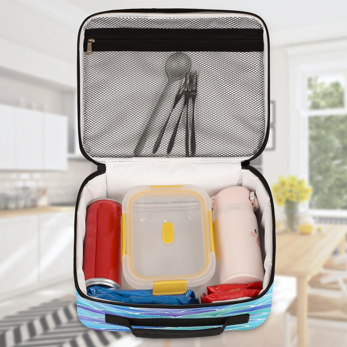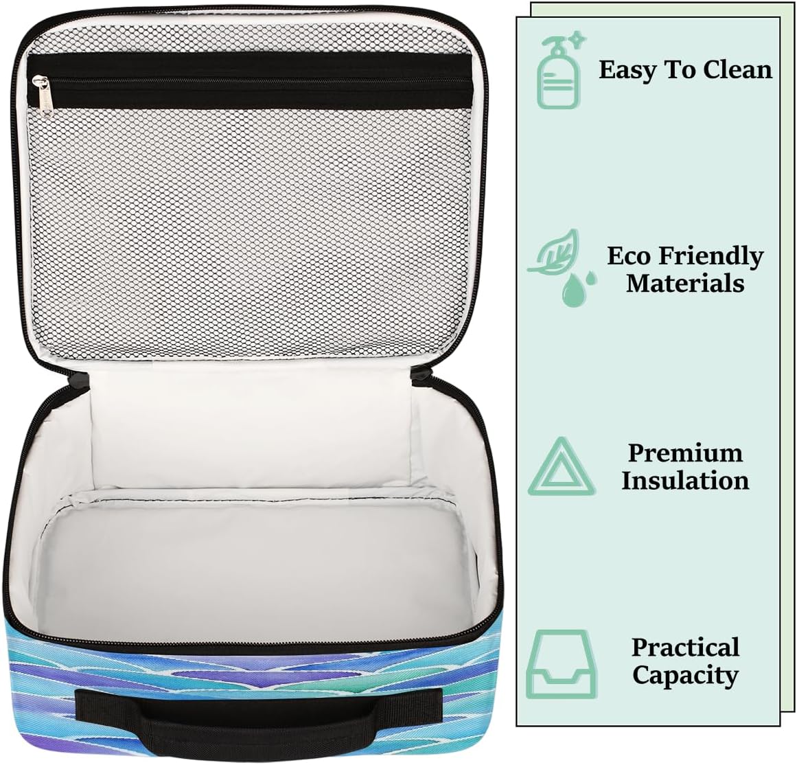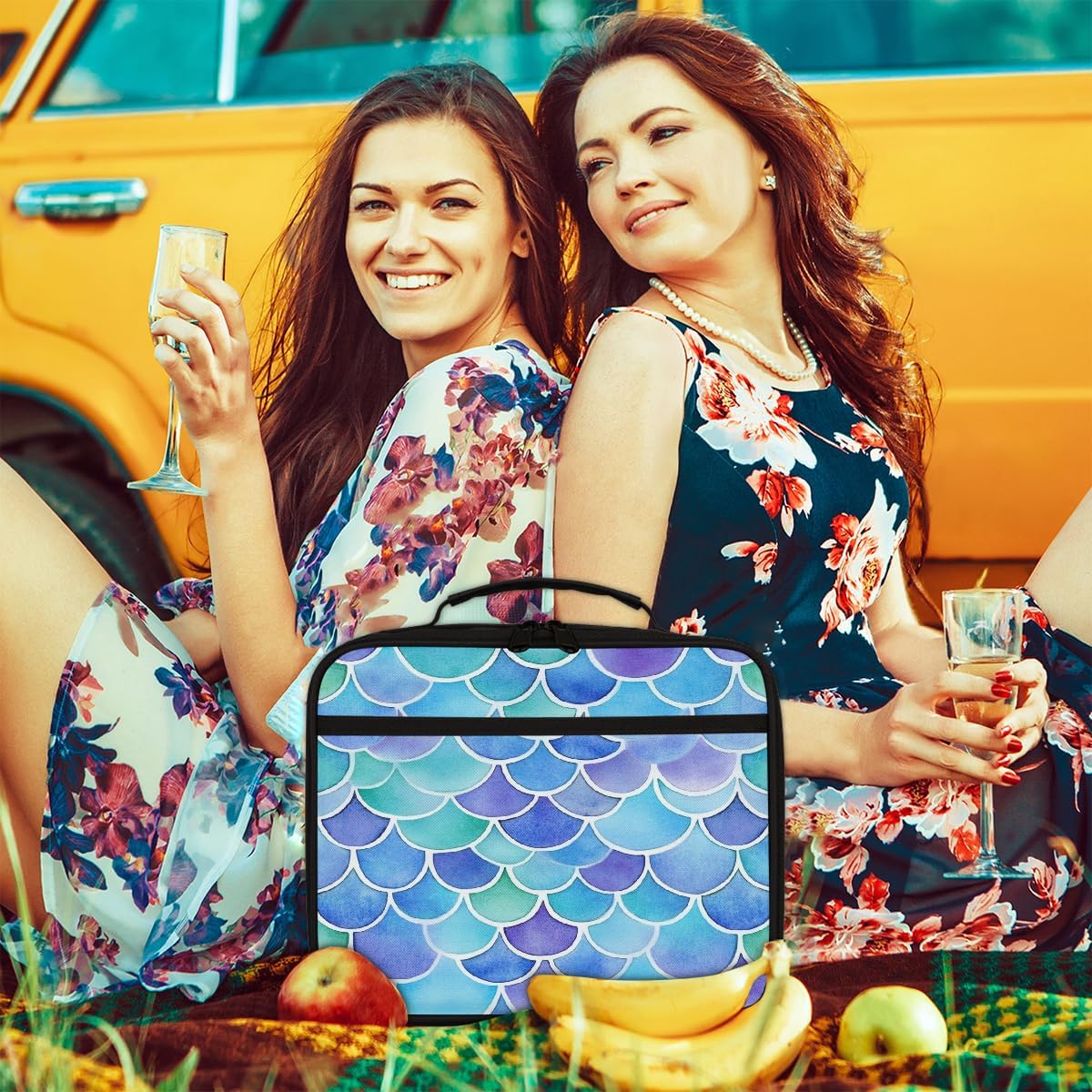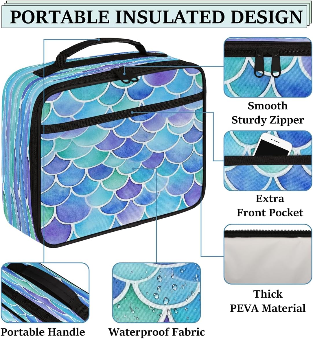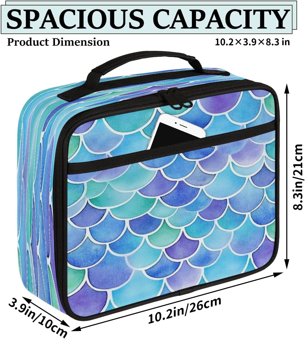 Borsa portapranzo per bambini con squame di sirena acquerello, borsa per il pranzo per ragazzi e ragazze, riutilizzabile, isolata, bento, borsa tote per scuola, picnic, lavoro
