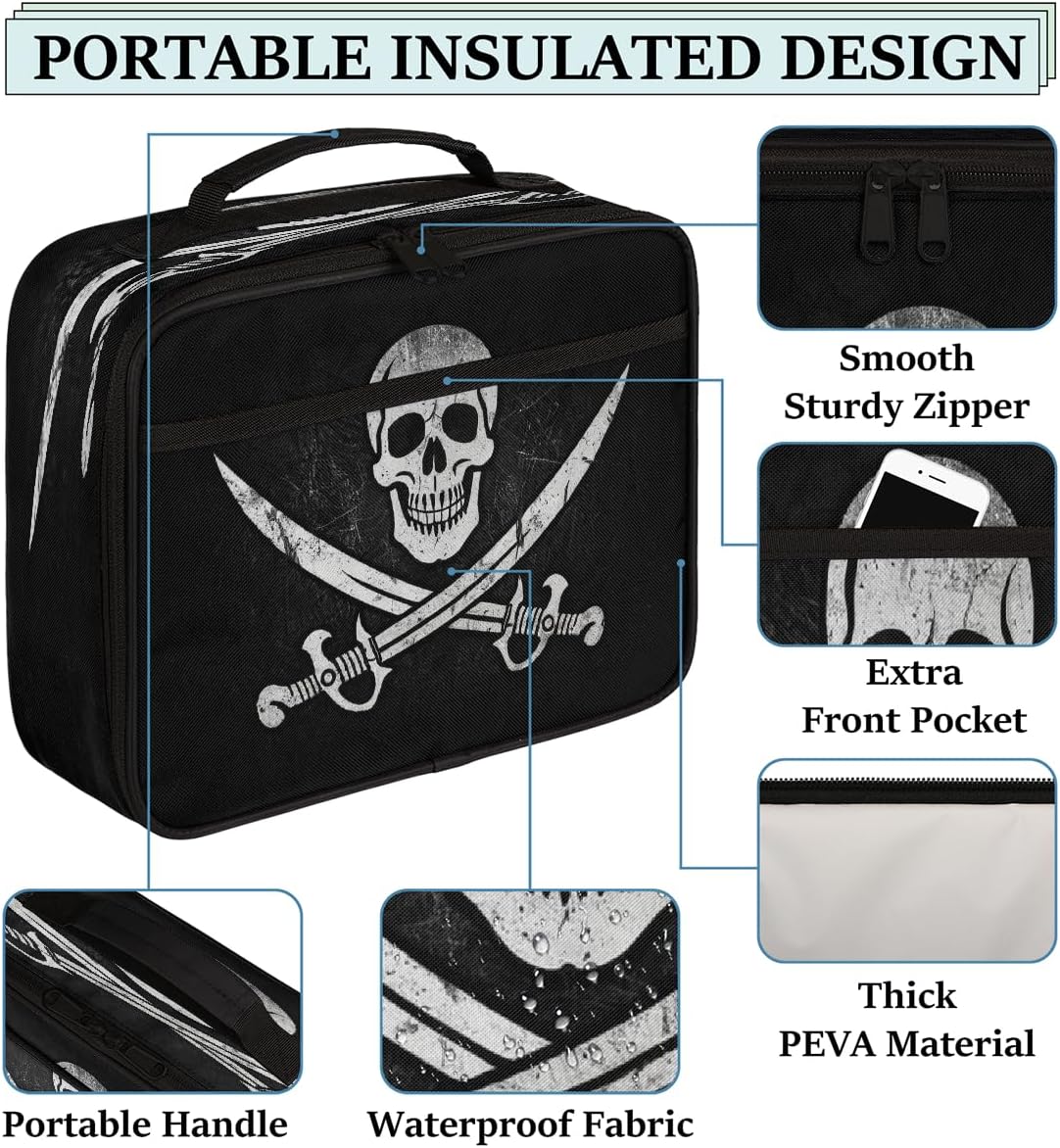 Borsa portapranzo per bambini con teschio gotico e sciabola, borsa per il pranzo per ragazzi e ragazze, riutilizzabile, isolata, bento, per scuola, picnic, lavoro