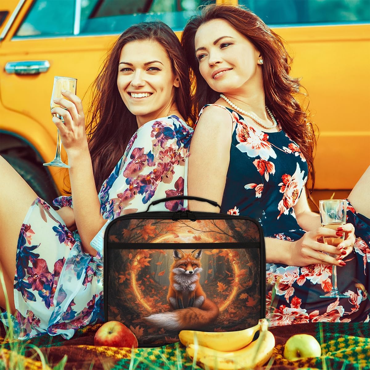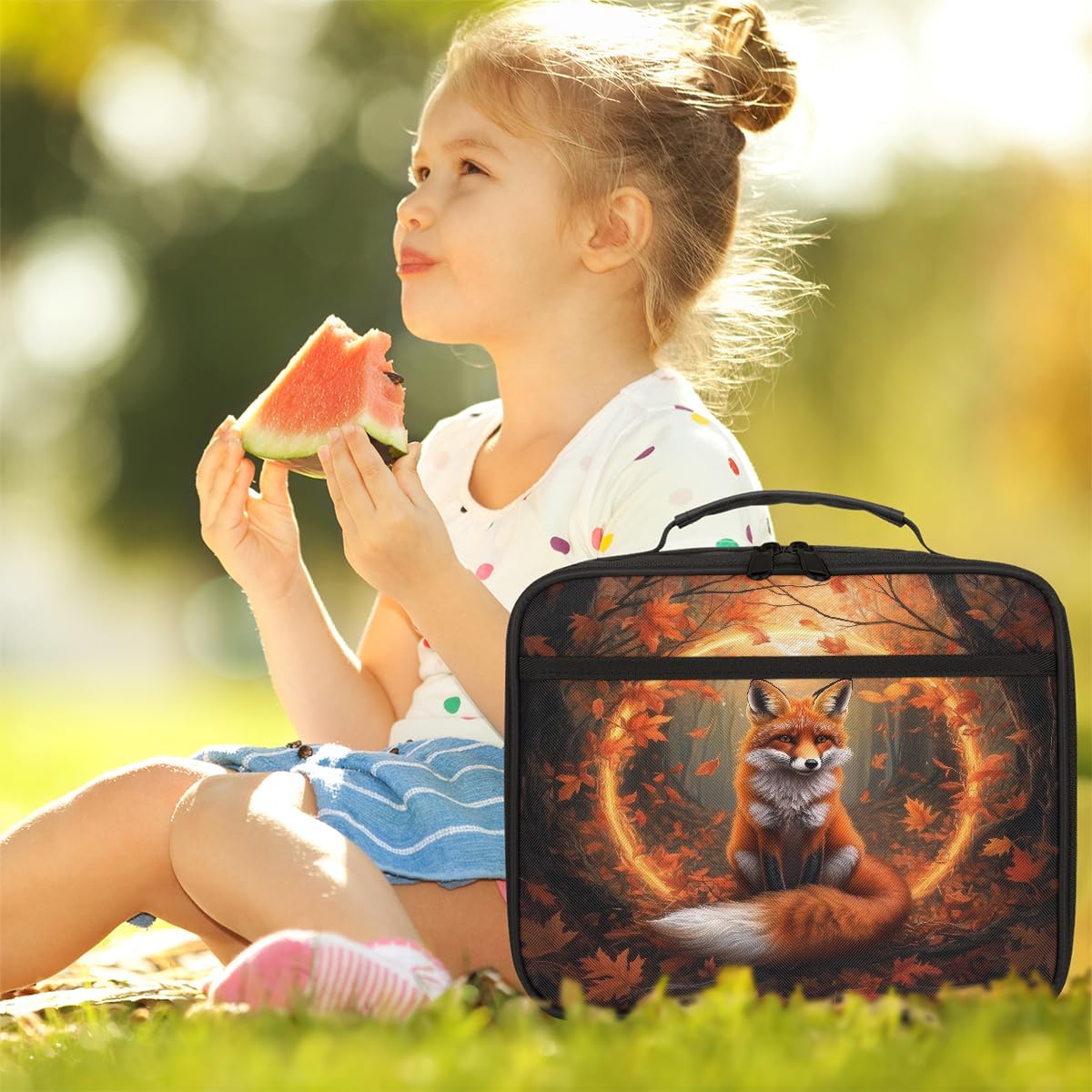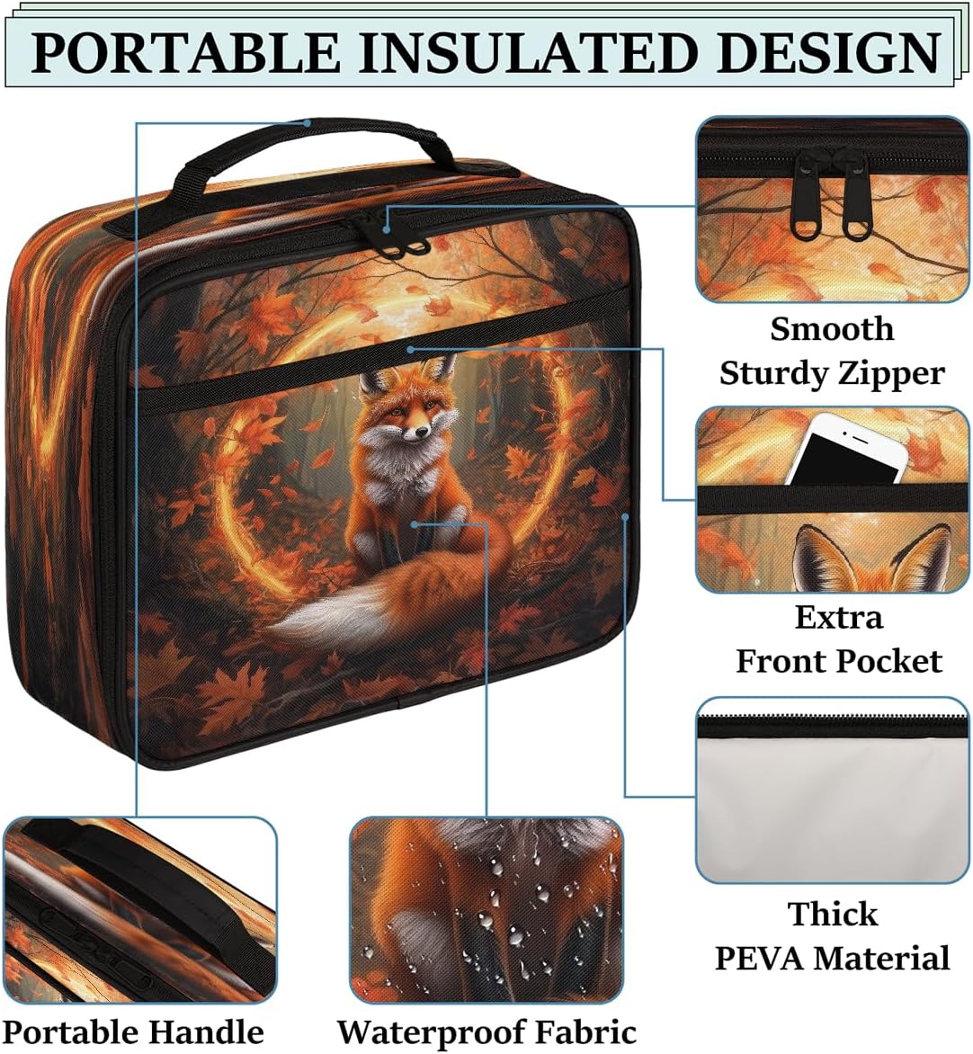 Borsa portapranzo per bambini con volpe della foresta autunnale, borsa per il pranzo per ragazzi e ragazze, riutilizzabile, isolata, bento, per scuola, picnic, lavoro