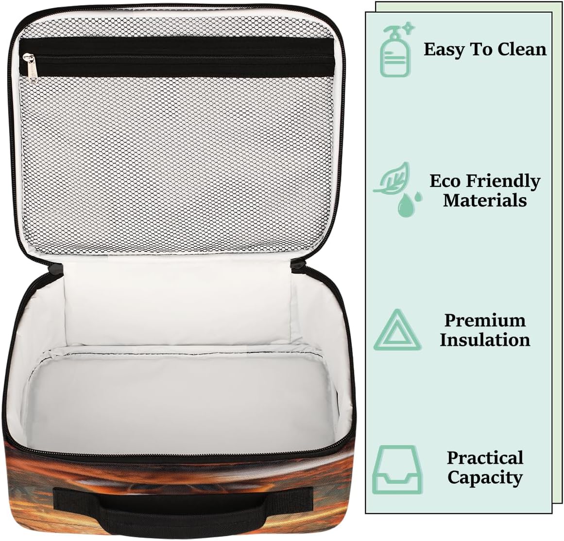 ✿ Dimensioni della borsa portapranzo: 21 x 10 x 26 cm, si adatta perfettamente al tuo portapranzo, frutta, snack e persino bottiglia per frullati proteici ✿ Materiale del contenitore per il pranzo isolato: la borsa per il pranzo riutilizzabile è realizzata in poliestere altamente resistente, facile da pulire, mantiene il cibo o le bevande fresche, calde o fredde per diverse ore, a prova di perdite per l'uso quotidiano Grande capacità: 1 tasca principale con cerniera per riporre facilmente molte cose, come bevande, snack, panini, frutta o verdura; 1 tasca frontale esterna con cerniera per riporre caramelle, chiavi, telefono e altri piccoli oggetti da portare in ufficio, escursioni, viaggi, feste ✿ Piume: la nostra borsa per il pranzo ha 1 tasca principale con cerniera per mantenere cibi e bevande caldi o freschi, 1 grande tasca frontale per chiavi, carte, telefoni e così via. È molto facile da portare ovunque come viaggi, spiaggia e sport; è facile da trasportare, a tracolla, inoltre, la tracolla può essere rimossa e trasformata in una borsa portatile per i pasti ✿ Regalo perfetto: motivi unici, regali unici, ideali per gli amici durante il festival, come compleanno, Natale, giorno della scuola