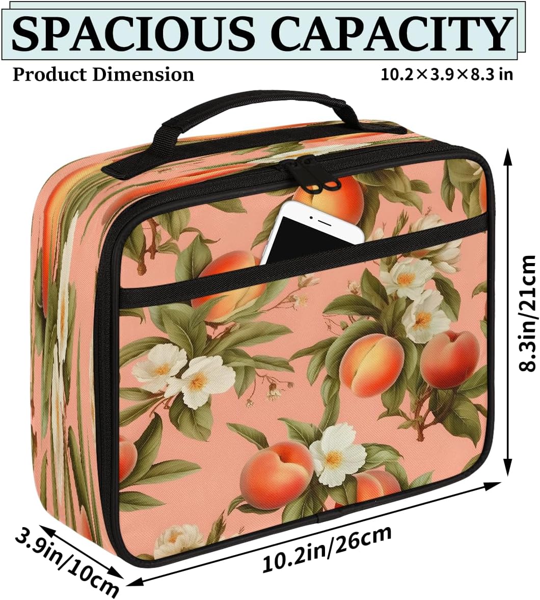 Borsa portapranzo per bambini, motivo floreale di pesco, rosa, per ragazzi e ragazze, riutilizzabile, isolata, bento, per scuola, picnic, lavoro