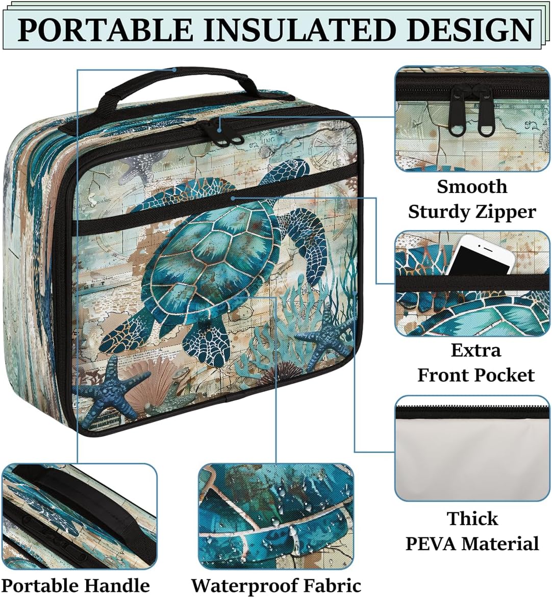 Borsa portapranzo per bambini turchese tartaruga marina stella marina borsa per il pranzo per ragazzi ragazze riutilizzabile isolata bento tote bag per scuola picnic lavoro
