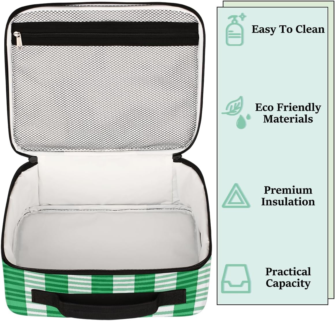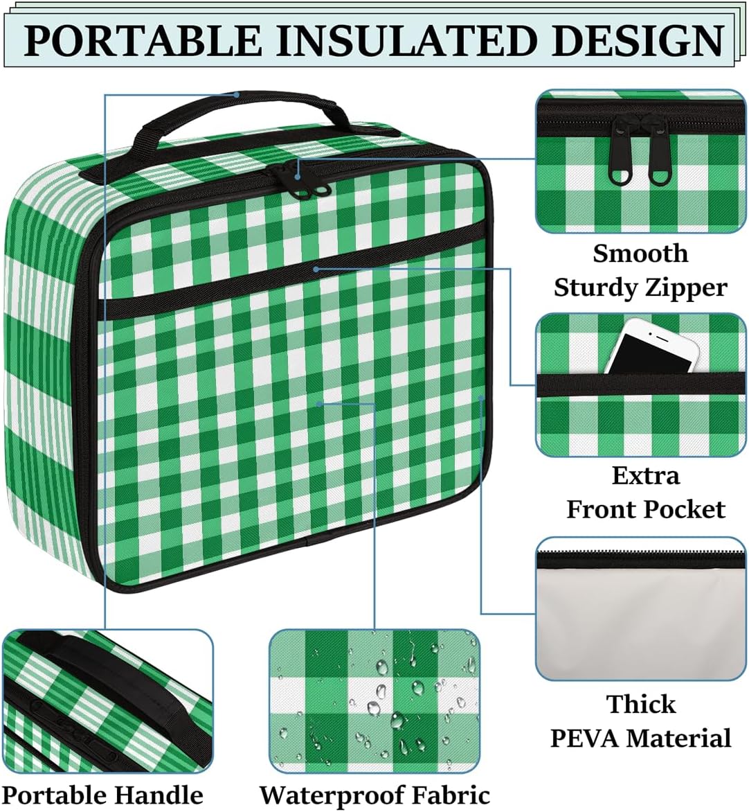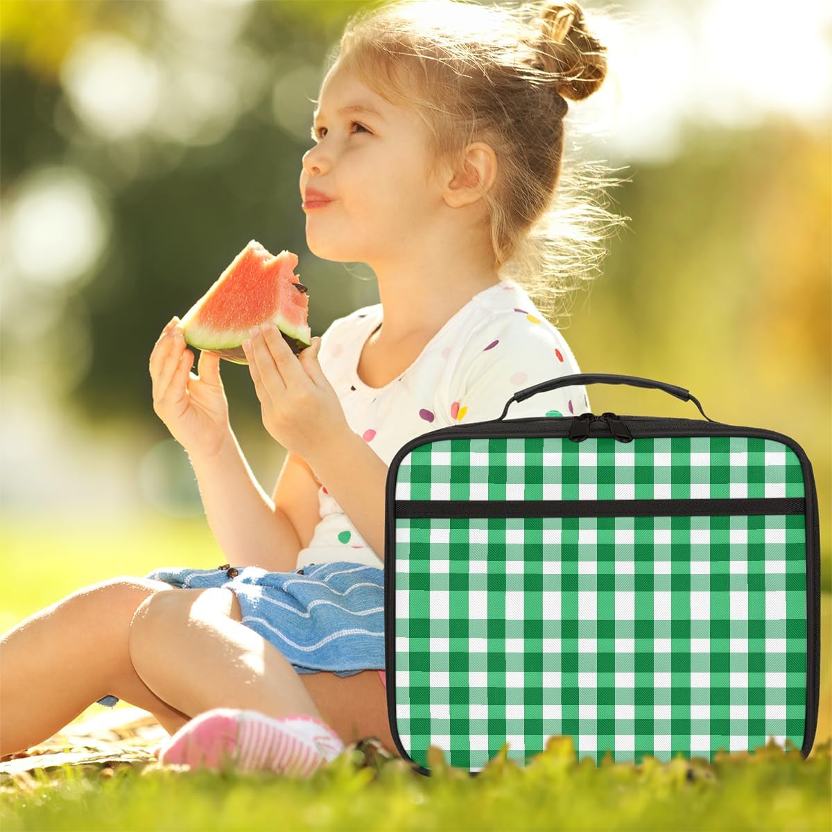 Borsa portapranzo per bambini verde rustica con griglia di bufalo borsa per il pranzo per ragazzi ragazze riutilizzabile isolata bento tote bag per scuola picnic lavoro