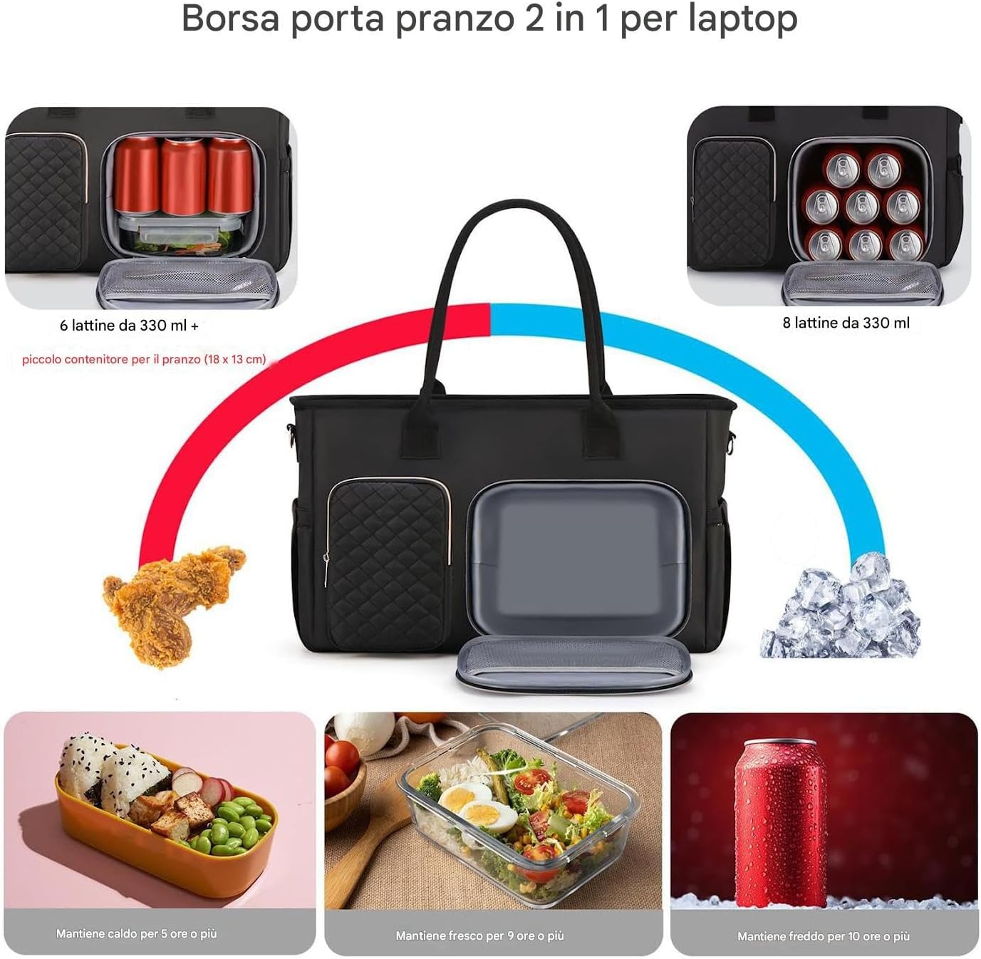 Design Anti-Schizzi: Questa borsa pranzo è realizzata in poliestere resistente all'usura che fornisce una protezione affidabile da schizzi e abrasioni, con un esterno che mantiene la struttura per assicurare una forma eretta autoportante. È ideale per portare i pasti al lavoro o ai picnic, proteggendo i contenuti da fuoriuscite improvvise in modo sicuro e funzionale per l'uso quotidiano e le escursioni. Stile di Trasporto Personalizzabile: Progettata per le donne, questa borsa pranzo features un cinturino regolabile che permette di passare facilmente tra la portata a tracolla e a spalla, fornendo supporto ergonomico e praticità nel trasporto giornaliero. Ideale per pasti, documenti o effetti personali, si adatta alle diverse esigenze con comfort e sicurezza, garantendo un'esperienza d'uso e personalizzata in ogni contesto. Borsa Quotidiana per Donne: Questo modello di borsa pranzo duraturo garantisce che i tuoi effetti personali siano al sicuro da spruzzi e pioggerella, fondendo eleganza e funzionalità in un design adattabile. Adatta a insegnanti, pendolari e professionisti, è ideale per l'uso giornaliero o in contesti accademici, fornendo una soluzione pratica e comoda per trasportare oggetti in modo sicuro e organizzato. Interno Isolato per Pasti: La borsa pranzo include un interno isolato che conserva la freschezza degli alimenti, funzionando sia come borsa daily tote professionale che come portapasti affidabile. Perfetta per i pendolari, integra senza soluzione di continuità le esigenze lavorative e personali, con un design versatile che supporta il trasporto di oggetti e pasti in un'unica soluzione. L'isolamento garantisce che i cibi rimangano protetti durante gli spostamenti, massimando la praticità per il c Compagno Stile Organizzato: La borsa con scomparto pranzo aiuta a mantenere una routine ordinata per le donne impegnate che viaggiano regolarmente, mantenendo gli alimenti separati e sicuri, il che migliora la convenienza al lavoro o durante i viaggi, mentre è anche un regalo di gusto per celebrazioni festive.