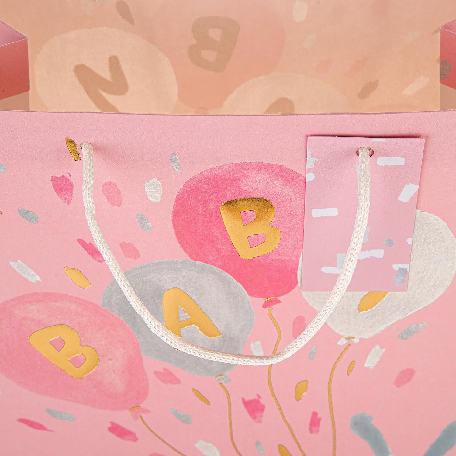 Borsa regalo per neonato: eleva la celebrazione dell'accoglienza di una nuova bambina nel mondo con questa bellissima borsa regalo per neonati di Hallmark. Il modo perfetto per aggiungere un tocco personale a tutti i tuoi regali e sorprese. 【Borsa regalo grande】 Questa borsa presenta un coniglio con design a palloncino, il messaggio "Baby", lati maculati rosa e bianchi, dettagli in lamina d'oro, viene fornita con manici di carta lavorata a maglia bianca ed è perfetta per festeggiare un nuovo bambino. COSTRUZIONE DI ALTA QUALITÀ - Questo prodotto è realizzato con materiali provenienti da foreste ben gestite, certificate FSC e altre fonti controllate. Per riciclare i sacchetti è sufficiente rimuovere i manici e le etichette e riciclarli con materiali cartacei. Smaltire separatamente i materiali non cartacei. Etichetta regalo rettangolare: questa borsa regalo viene fornita completa di un'etichetta regalo rosa rettangolare abbinata. Il ciondolo offre spazio sufficiente per scrivere il tuo messaggio personale e augurare e aggiungere un tocco speciale al tuo regalo. Dimensioni del sacchetto regalo: ogni sacchetto grande misura 33 cm x 26,5 cm x 16 cm (A x L x P) ed è della dimensione perfetta per consegnare regali e sorprese. Da un gin speciale, la sua bottiglia di spumante preferita, una cornice e altro ancora per festeggiare ogni occasione.