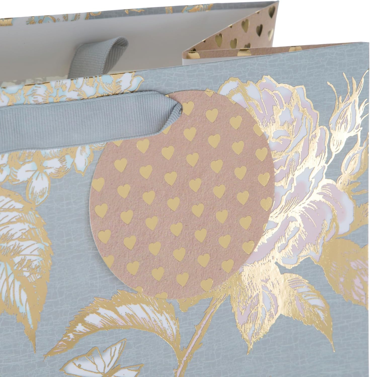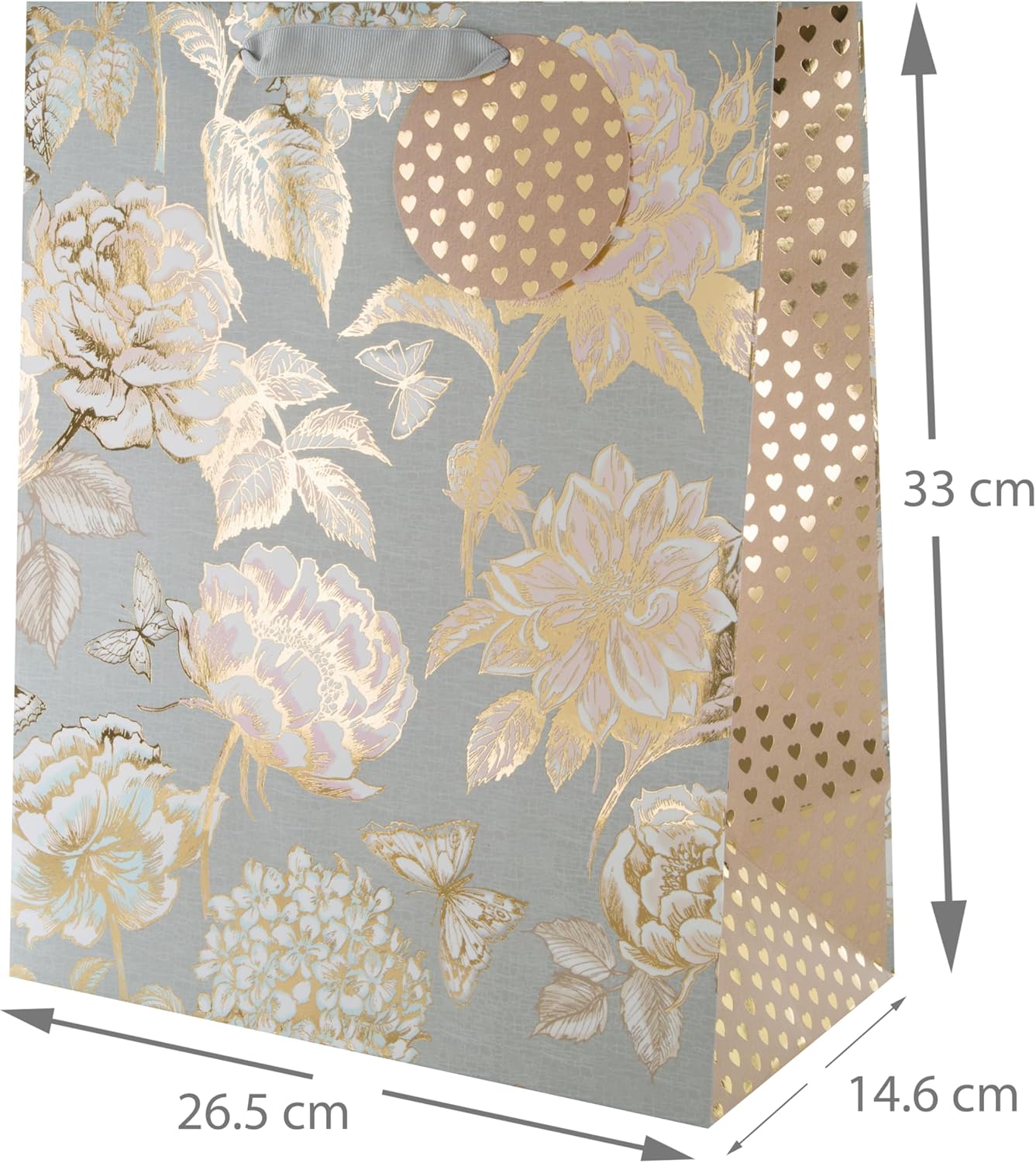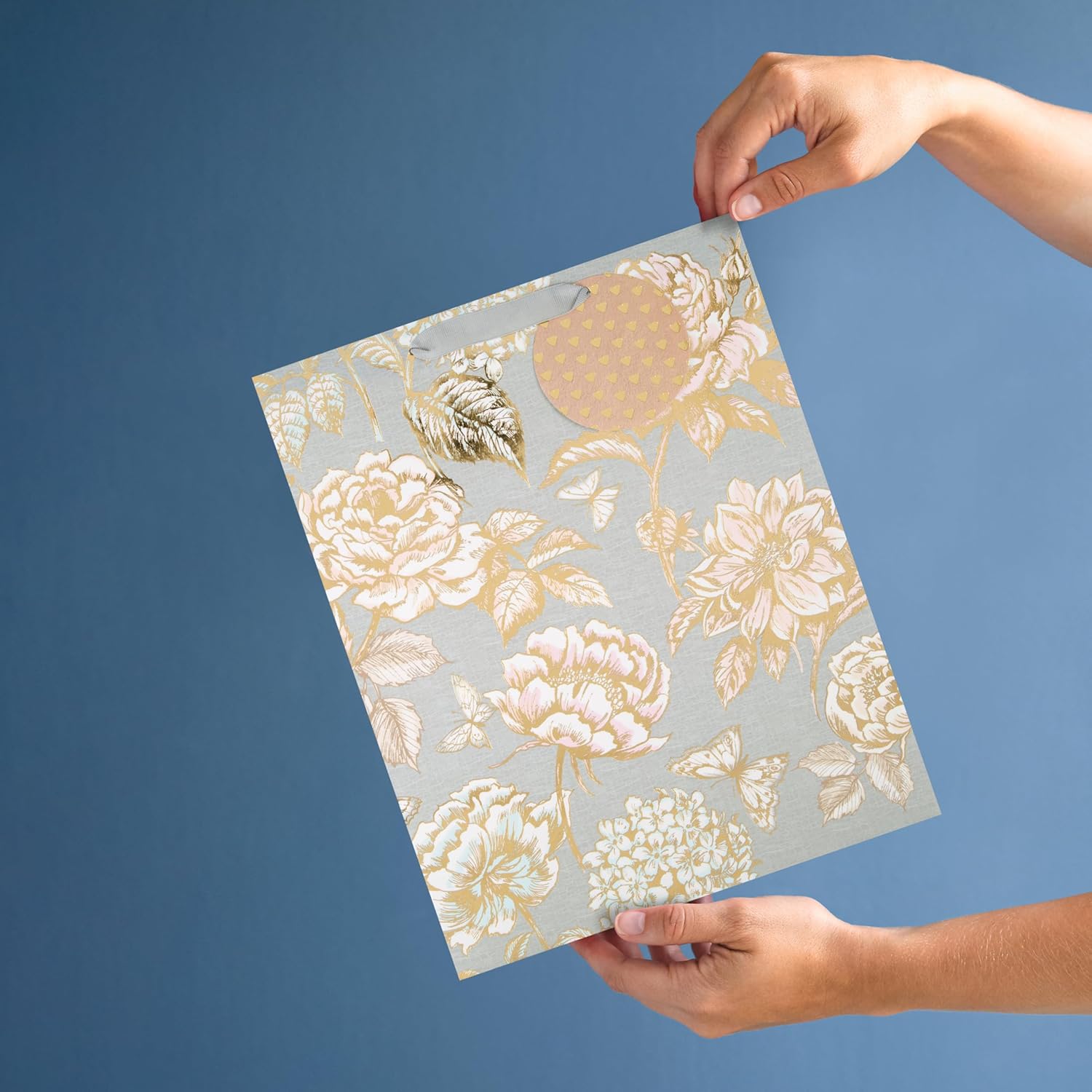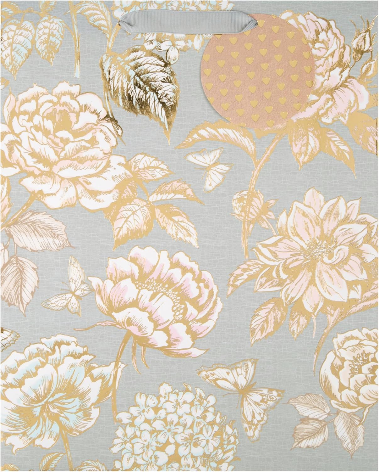 Porta i glitter del compleanno e assicurati che i tuoi regali siano presentati perfettamente con questa accattivante borsa regalo floreale di Hallmark. La struttura di qualità, le grandi dimensioni e il formato verticale gli consentono di ospitare una varietà di regali come giocattoli, pacchetti multi-articolo, abbigliamento e altro ancora. Manici in gros grain grigio. Etichetta regalo stampata abbinata. Dettagli in lamina d'oro. Materiali certificati FSC Dimensioni: 33,0 x 26,5 x 14,6 cm