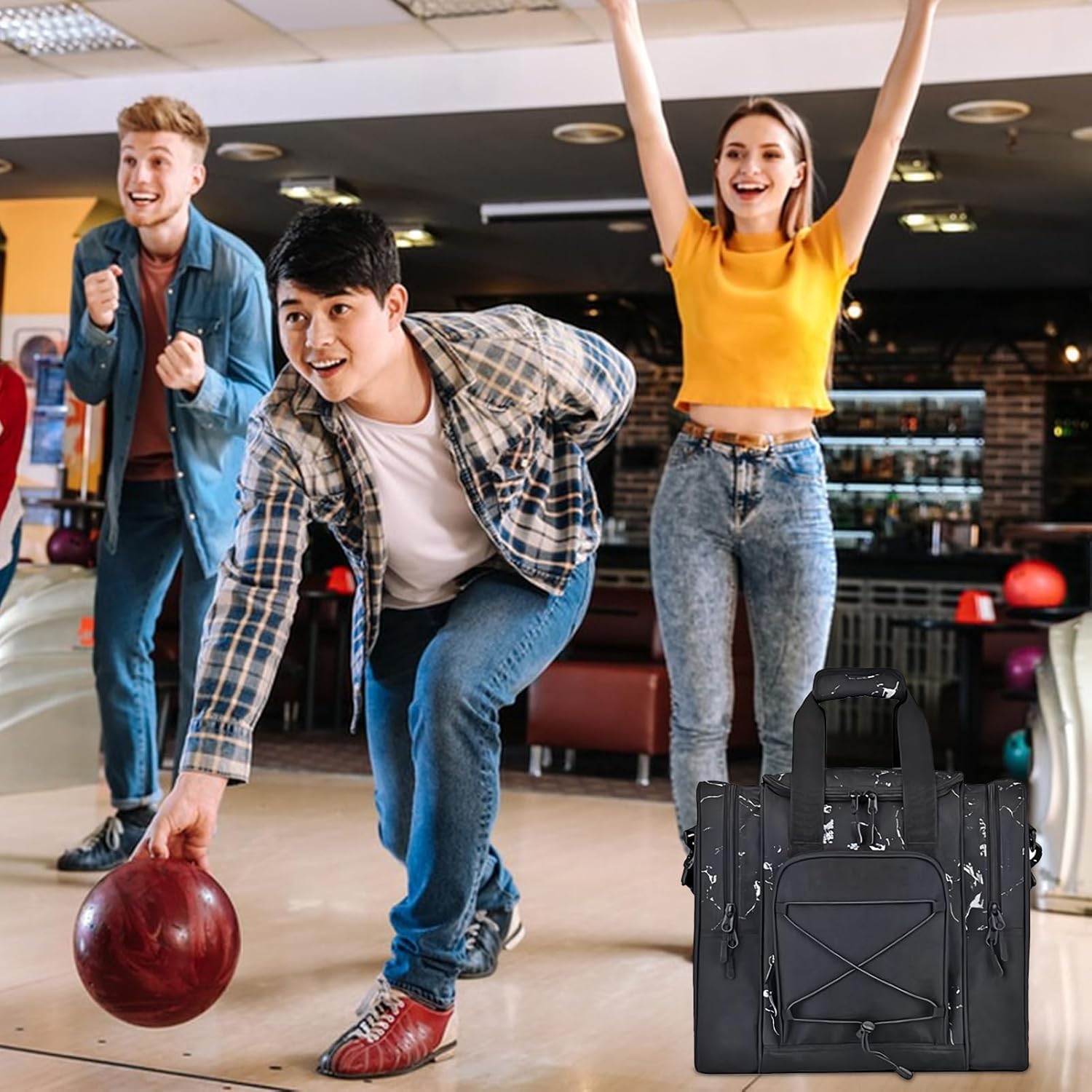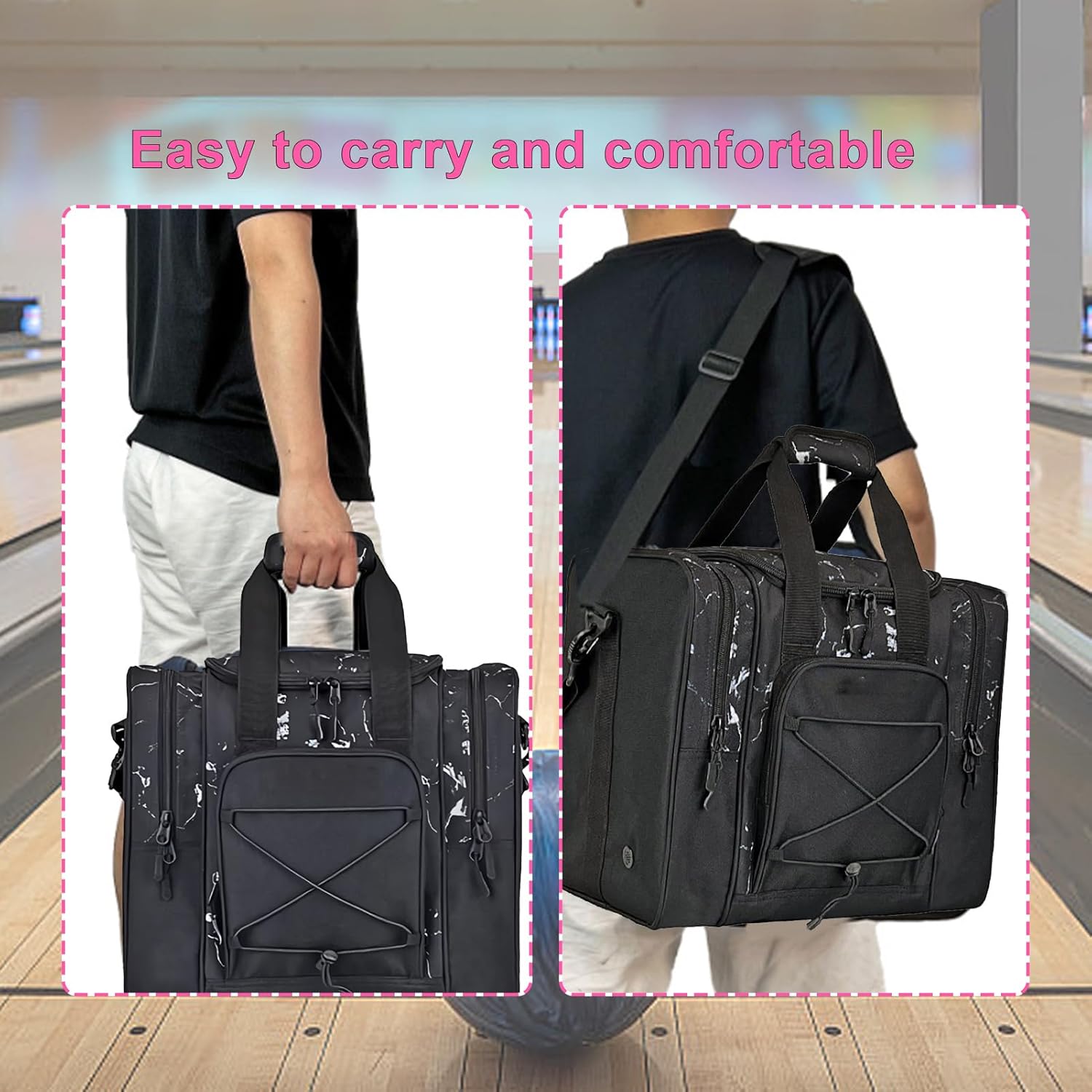 MASSIMA PROTEZIONE: la nostra borsa per palline da bowling è progettata per mantenere la palla al sicuro durante il trasporto. È realizzato in materiale di alta qualità e dispone di due tasche laterali con fori di ventilazione per evitare l'odore delle scarpe. Lo scomparto anteriore è per riporre portafoglio e chiavi. SICUREZZA DELLA PALLA: mantieni la tua palla da bowling sana e salva con la nostra borsa imbottita dotata di scomparto spazioso e di un portapalla imbottito, garantendo che rimanga protetta e in posizione durante il trasporto. Design ergonomico: la nostra borsa per palline da bowling è dotata di cinturino e cintura regolabili per ridurre lo sforzo sulle spalle e garantire una vestibilità comoda durante il gioco. QUALITÀ: Realizzata in poliestere di alta qualità, la nostra borsa per palline da bowling offre resistenza e stile. Dotato di una maniglia robusta e di una cerniera liscia, è per trasportare la palla con stile. Scegli tra una gamma di design e colori accattivanti per abbinare la tua personalità! Offerta regalo: regala ai tuoi questa borsa da bowling robusta e alla , un regalo adatto a tutte le occasioni e a tutti i livelli di abilità. Che si tratti di Pasqua, di un compleanno o semplicemente di un gioco occasionale, sorprendi un giocatore di bocce principiante o professionista con questa fantastica scelta.