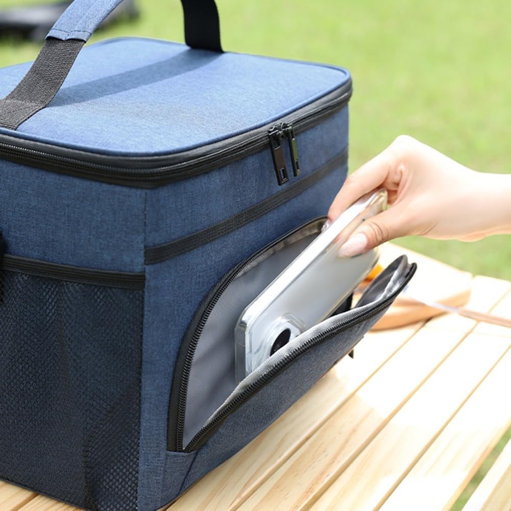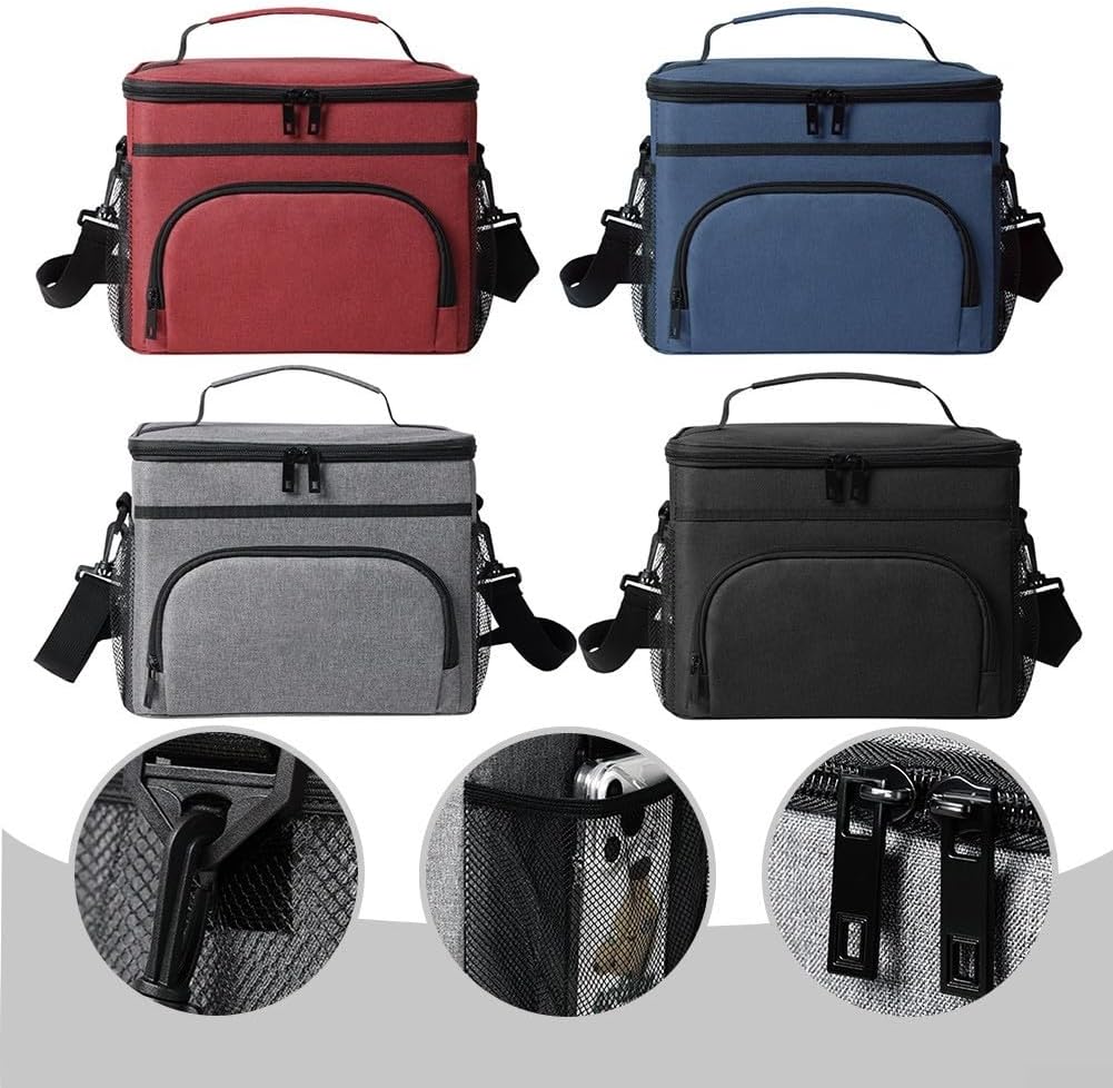 [Eccellente isolamento termico] La borsa termica per il pranzo presenta un design di isolamento termico a tre strati che mantiene efficacemente il cibo caldo o freddo per ore, rendendolo perfetto per pranzi, picnic e viaggi su strada. Struttura a prova di perdite: realizzata con fodera in PEVA ultra spessa e cuciture saldate a caldo, questa borsa assicura che non si verifichino perdite, proteggendo il cibo da fuoriuscite pur essendo facile da pulire con una semplice salvietta. [Spazioso e organizzato] Misura 20,3 x 20,8 x 21,8 cm, offre ampio spazio con uno scomparto principale per cibo e bevande, una tasca frontale per oggetti essenziali come chiavi e caricabatterie, oltre a due tasche in rete per bottiglie. Opzioni di trasporto: progettata con un manico robusto e una tracolla regolabile, questa borsa consente una comoda portabilità a mano o fissandola saldamente a uno zaino o una valigetta. Elegante e funzionale: con il suo design moderno e leggero adatto sia per uomini che per donne, questa borsa per il pranzo riutilizzabile funge da borsa per il pranzo, borsa da picnic o accessorio per la spesa, rendendola essenziale per la vita quotidiana.