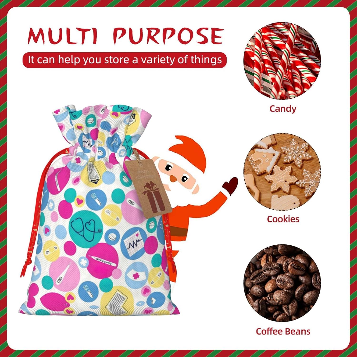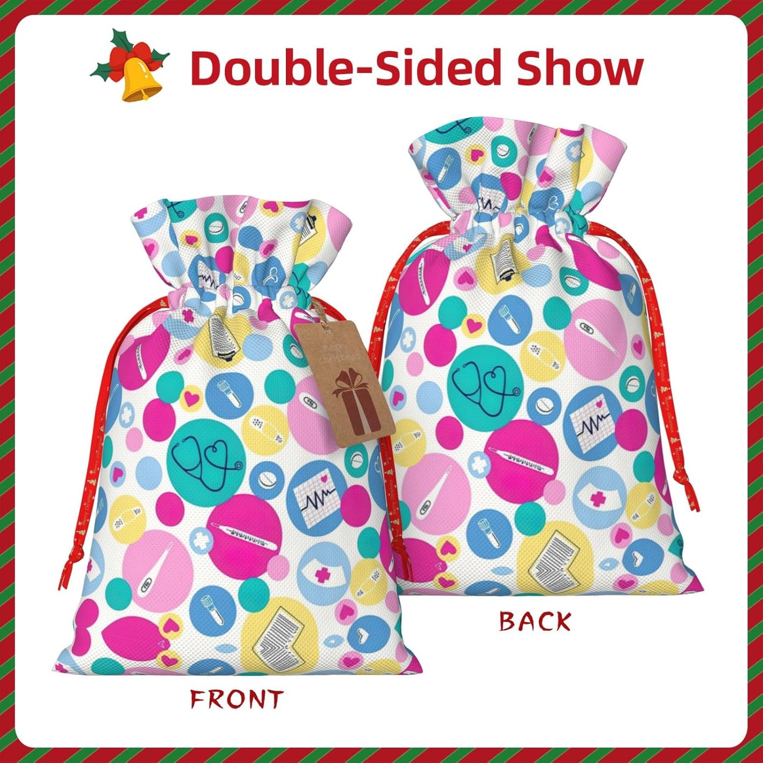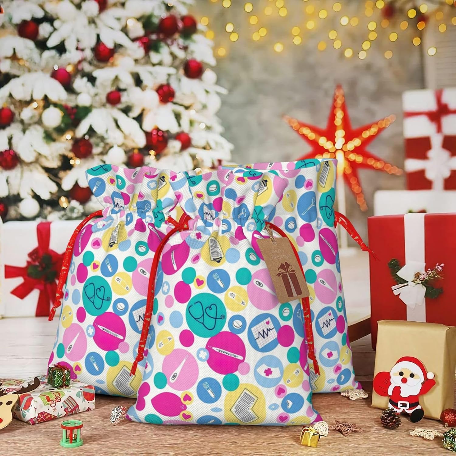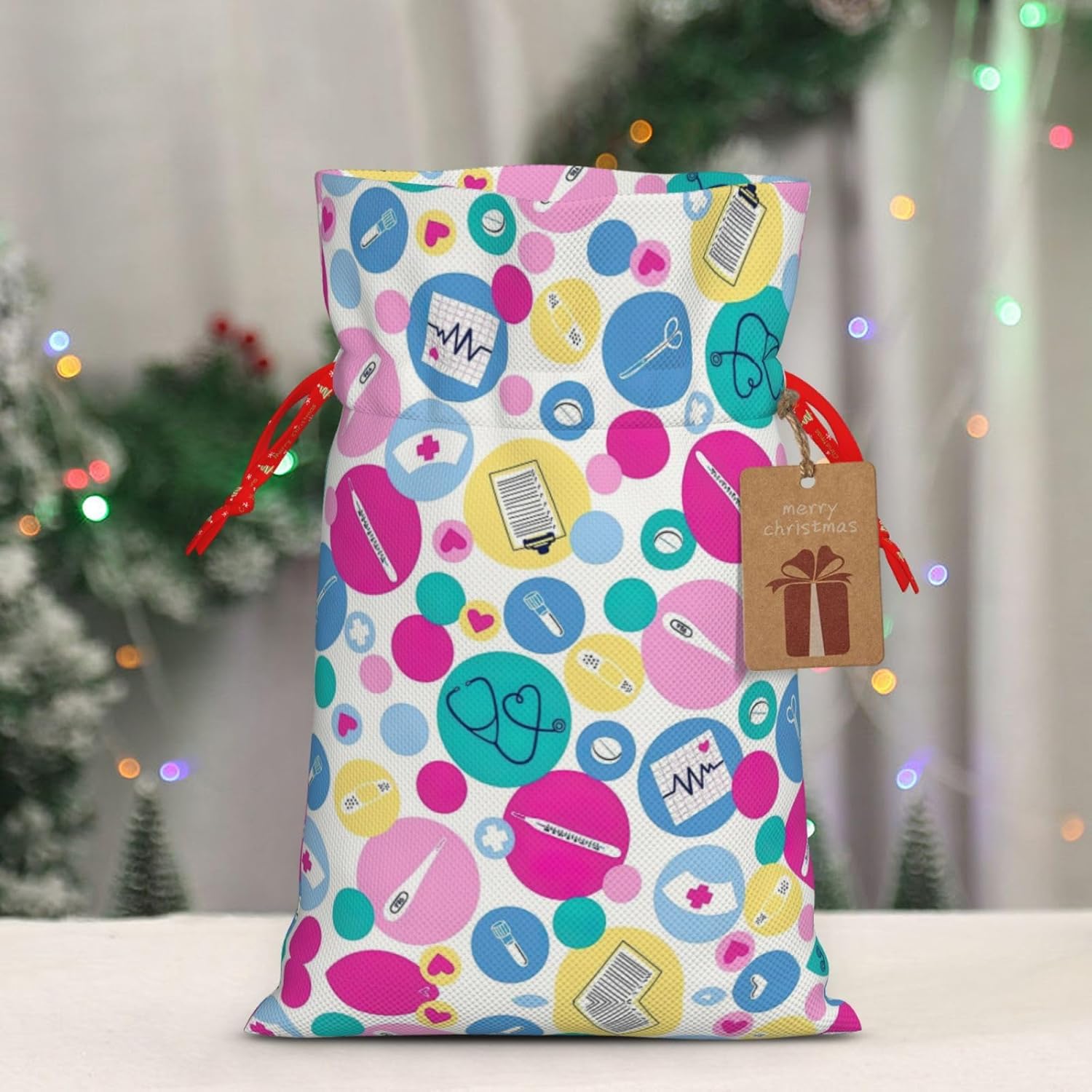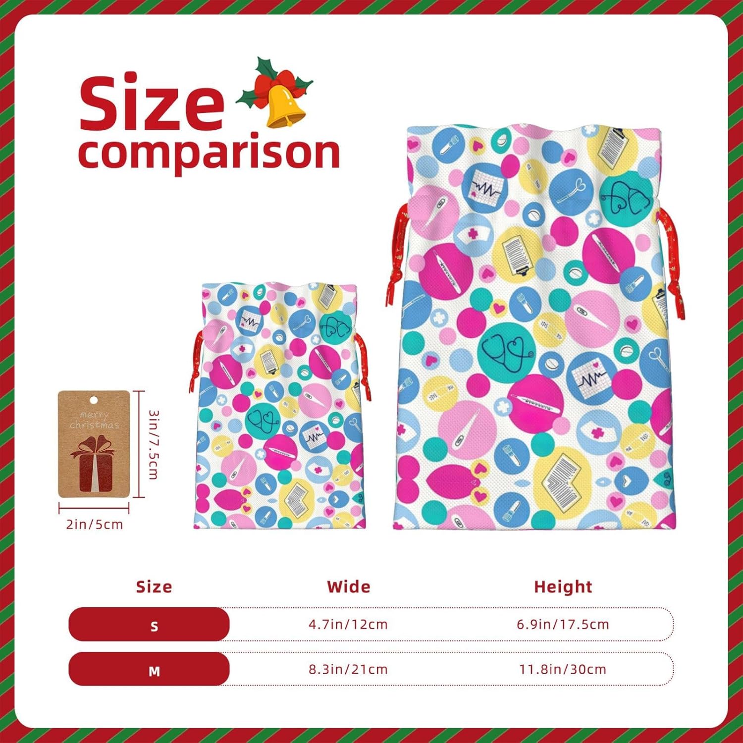 BORSE REGALO DI ALTO VALORE: la graziosa borsa da infermiera è dotata di sacchetti regalo con cordoncini colorati ed etichette. I sacchetti regalo sono aggiornati con un design con chiusura a coulisse, sacchetti regalo realizzati in poliestere, resistenti e riutilizzabili. Non si strappano come la carta, ottimi per incartare i regali. 10 secondi per incartare un regalo: la graziosa borsa da infermiera per confezionare facilmente i regali, è facile da usare, basta inserire il regalo nelle buste, far scorrere l'etichetta regalo attraverso il nastro, tirare il nastro, annodare un fiocco e il gioco è fatto. Puoi evitare il fastidio associato a carta da imballaggio, forbici, nastro adesivo e nastro, risparmiare tempo e molto conveniente. Dimensioni del sacchetto regalo: i sacchetti regalo in 2 dimensioni possono soddisfare le preferenze di diverse persone e sono sufficienti per l'uso quotidiano e la festa di Natale. La S misura 12 x 17,5 cm e la M misura 12 x 30 cm. Sacchetti regalo in formati assortiti sfusi, perfetti per confezionare regali di diverse dimensioni. REGALO IDEALE: questi adorabili sacchetti regalo per infermiere possono essere riutilizzati molte volte. Un set di sacchetti regalo riutilizzabili sarà un'aggiunta meravigliosa a qualsiasi regalo e migliorerà l'esperienza complessiva del regalo. Inoltre, abbiamo rinforzato il fondo per una maggiore stabilità e una struttura robusta con carichi pesanti. Non facile da rompere per un uso durevole e duraturo. Borse regalo multifunzionali: queste adorabili borse da infermiera possono essere utilizzate per conservare regali di Natale, giocattoli, bambole, cappelli di Natale, caramelle e regali durante una festa di Natale. Conservare i regali in questa borsa darà ai bambini più sorprese perché non sanno cosa c'è dentro.