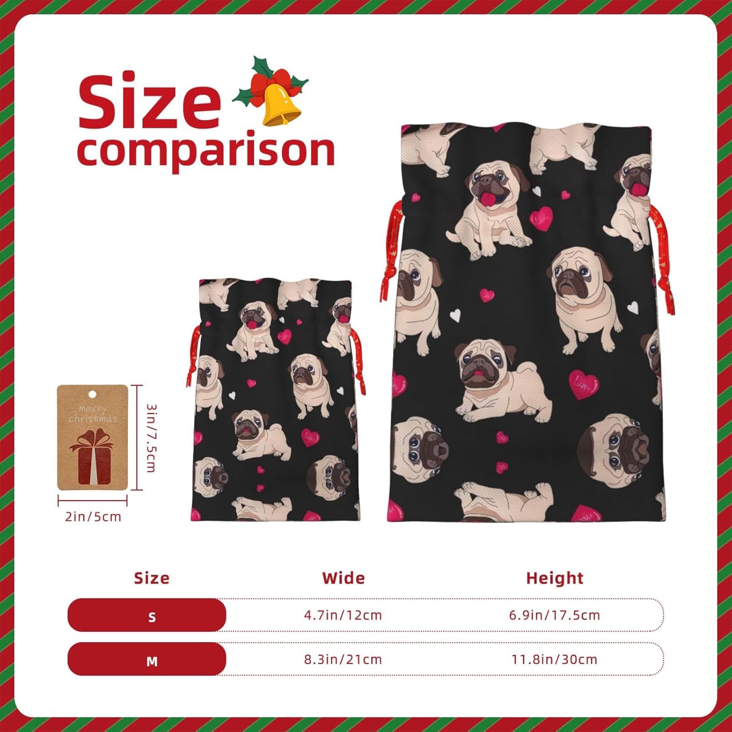 BORSE REGALO DI ALTO VALORE: la graziosa borsa per carlini è dotata di sacchetti regalo con cordoncini colorati ed etichette. I sacchetti regalo sono aggiornati con un design con chiusura a coulisse, sacchetti regalo realizzati in poliestere, resistenti e riutilizzabili. Non si strappano come la carta, ottimi per incartare i regali. 10 secondi per incartare un regalo: il simpatico sacchetto del carlino per confezionare facilmente i regali, è facile da usare, basta inserire il regalo nei sacchetti, far scorrere l'etichetta regalo attraverso il nastro, tirare il nastro, annodare un fiocco e il gioco è fatto. Puoi evitare il fastidio associato a carta da imballaggio, forbici, nastro adesivo e nastro, risparmiare tempo e molto conveniente. Dimensioni del sacchetto regalo: i sacchetti regalo in 2 dimensioni possono soddisfare le preferenze di diverse persone e sono sufficienti per l'uso quotidiano e la festa di Natale. La S misura 12 x 17,5 cm e la M misura 12 x 30 cm. Sacchetti regalo in formati assortiti sfusi, perfetti per confezionare regali di diverse dimensioni. REGALO IDEALE: questi graziosi sacchetti regalo a forma di carlino possono essere riutilizzati molte volte. Un set di sacchetti regalo riutilizzabili sarà un'aggiunta meravigliosa a qualsiasi regalo e migliorerà l'esperienza complessiva del regalo. Inoltre, abbiamo rinforzato il fondo per una maggiore stabilità e una struttura robusta con carichi pesanti. Non facile da rompere per un uso durevole e duraturo. Sacchetti regalo multifunzionali: questi graziosi sacchetti per carlini possono essere utilizzati per conservare regali di Natale, giocattoli, bambole, cappelli di Natale, caramelle e regali durante una festa di Natale. Conservare i regali in questa borsa darà ai bambini più sorprese perché non sanno cosa c'è dentro.