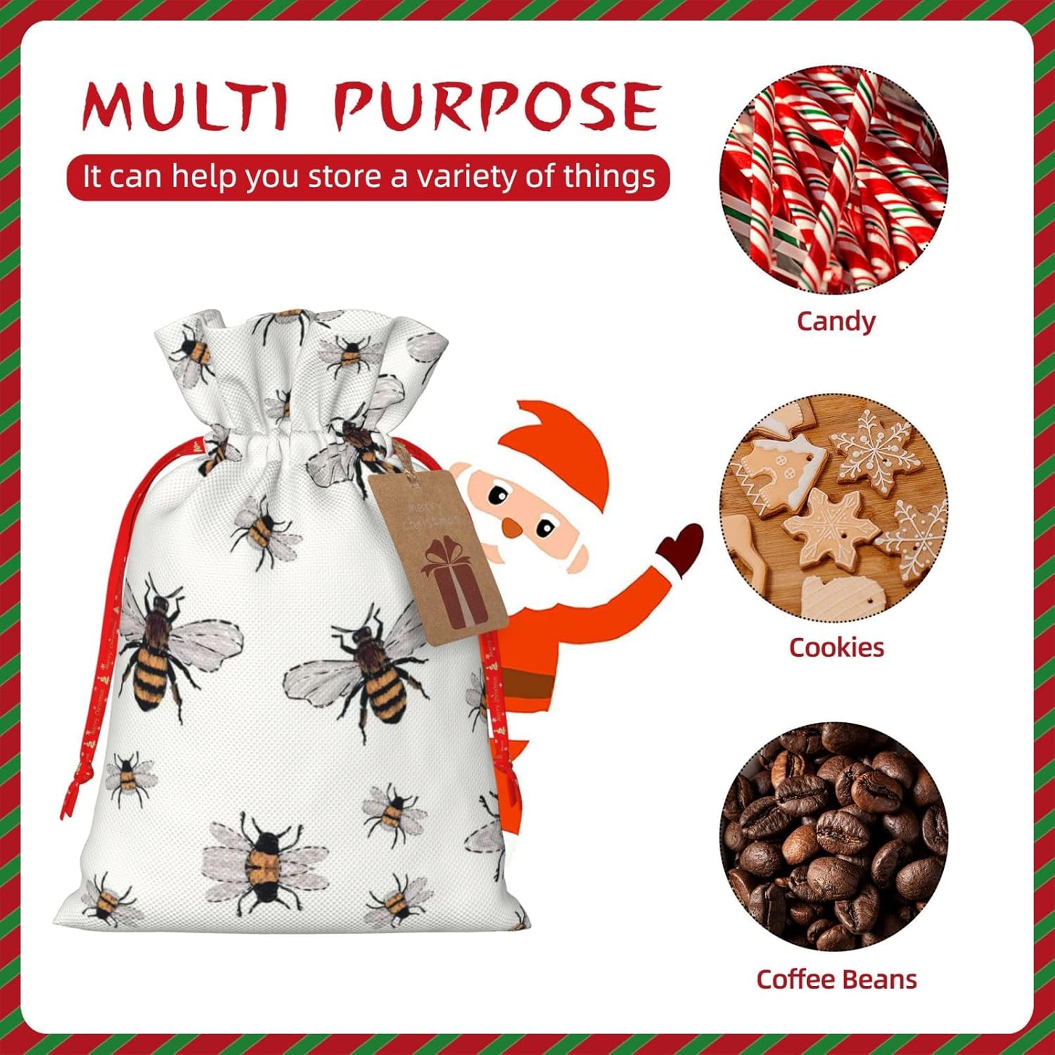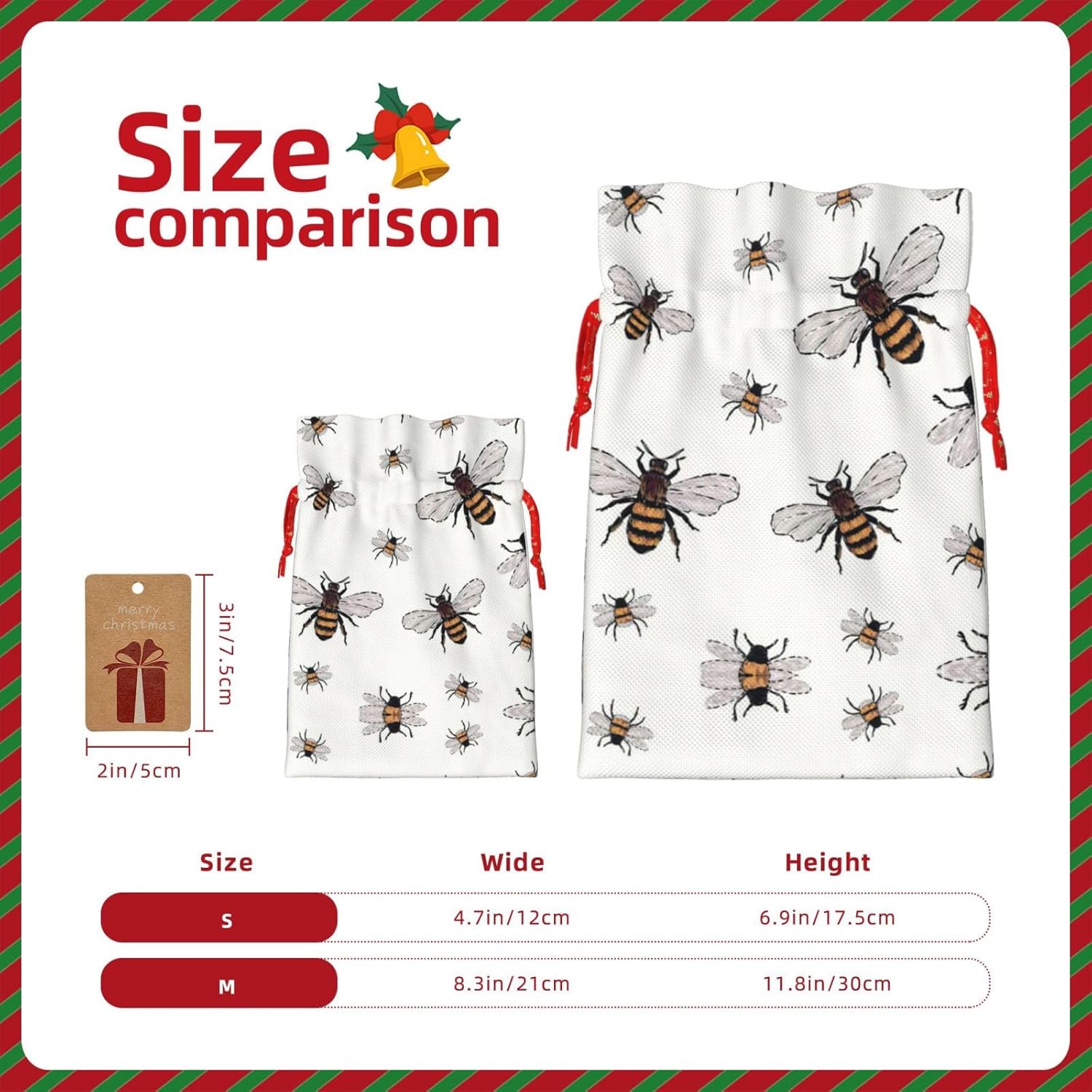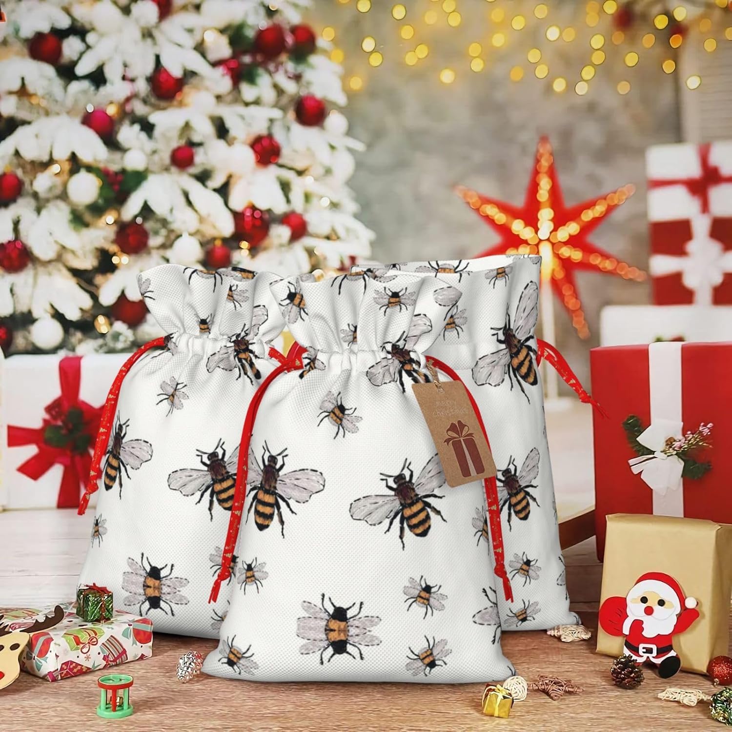 BORSE REGALO DI ALTO VALORE: la divertente borsa delle api è dotata di sacchetti regalo con cordoncini colorati ed etichette. I sacchetti regalo sono aggiornati con un design con chiusura a coulisse, sacchetti regalo realizzati in poliestere, resistenti e riutilizzabili. Non si strappano come la carta, ottimi per incartare i regali. 10 secondi per incartare un regalo: il divertente sacchetto delle api per confezionare facilmente i regali, è facile da usare, basta inserire il regalo nei sacchetti, far scorrere l'etichetta regalo attraverso il nastro, tirare il nastro, annodare un fiocco e il gioco è fatto. Puoi evitare il fastidio associato a carta da imballaggio, forbici, nastro adesivo e nastro, risparmiare tempo e molto conveniente. Dimensioni del sacchetto regalo: i sacchetti regalo in 2 dimensioni possono soddisfare le preferenze di diverse persone e sono sufficienti per l'uso quotidiano e la festa di Natale. La S misura 12 x 17,5 cm e la M misura 12 x 30 cm. Sacchetti regalo in formati assortiti sfusi, perfetti per confezionare regali di diverse dimensioni. Regalo nel regalo: questi divertenti sacchetti regalo con api possono essere riutilizzati molte volte. Un set di sacchetti regalo riutilizzabili sarà un'aggiunta meravigliosa a qualsiasi regalo e migliorerà l'esperienza complessiva del regalo. Inoltre, abbiamo rinforzato il fondo per una maggiore stabilità e una struttura robusta con carichi pesanti. Non facile da rompere per un uso durevole e duraturo. Sacchetti regalo multifunzionali: questi divertenti sacchetti per api possono essere utilizzati per conservare regali di Natale, giocattoli, bambole, cappelli di Natale, caramelle e regali durante una festa di Natale. Conservare i regali in questa borsa darà ai bambini più sorprese perché non sanno cosa c'è dentro.