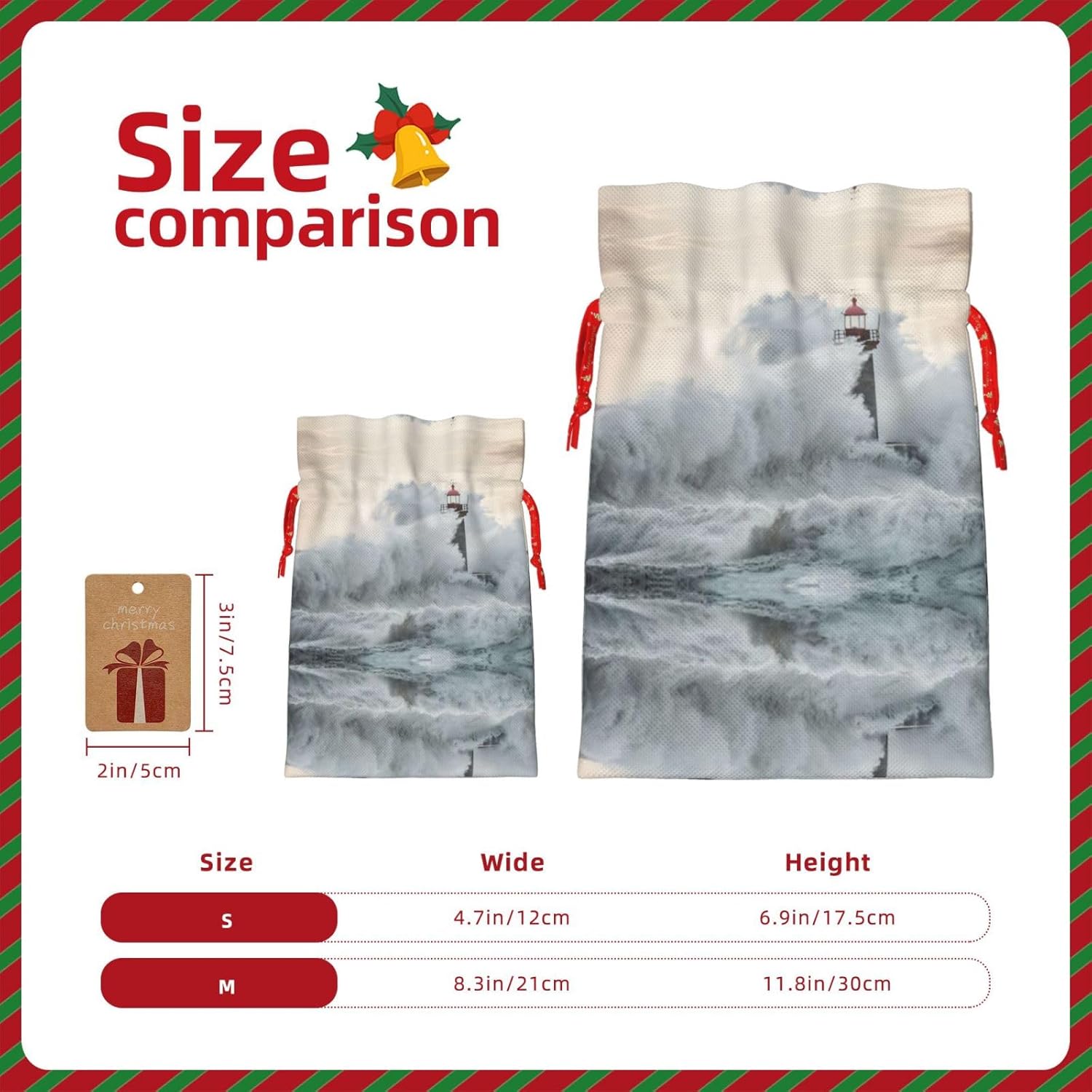 BORSE REGALO DI ALTO VALORE: la borsa Lighthouse In Storm è dotata di sacchetti regalo con cordoncini colorati ed etichette. I sacchetti regalo sono aggiornati con un design con chiusura a coulisse, sacchetti regalo realizzati in poliestere, resistenti e riutilizzabili. Non si strappano come la carta, ottimi per incartare i regali. 10 secondi per incartare un regalo: il faro in un sacchetto antivento per confezionare facilmente i regali, è facile da usare, basta inserire il regalo nei sacchetti, far scorrere l'etichetta regalo attraverso il nastro, tirare il nastro, annodare un fiocco e il gioco è fatto. Puoi evitare il fastidio associato a carta da imballaggio, forbici, nastro adesivo e nastro, risparmiare tempo e molto conveniente. Dimensioni del sacchetto regalo: i sacchetti regalo in 2 dimensioni possono soddisfare le preferenze di diverse persone e sono sufficienti per l'uso quotidiano e la festa di Natale. La S misura 12 x 17,5 cm e la M misura 12 x 30 cm. Sacchetti regalo in formati assortiti sfusi, perfetti per confezionare regali di diverse dimensioni. REGALO NEL REGALO: questi sacchetti regalo Lighthouse In Storm possono essere riutilizzati molte volte. Un set di sacchetti regalo riutilizzabili sarà un'aggiunta meravigliosa a qualsiasi regalo e migliorerà l'esperienza complessiva del regalo. Inoltre, abbiamo rinforzato il fondo per una maggiore stabilità e una struttura robusta con carichi pesanti. Non facile da rompere per un uso durevole e duraturo. Sacchetti regalo multifunzionali: queste luci natalizie in sacchetti antipioggia possono essere utilizzate per conservare regali di Natale, giocattoli, bambole, cappelli di Natale, caramelle e regali durante una festa di Natale. Conservare i regali in questa borsa darà ai bambini più sorprese perché non sanno cosa c'è dentro.