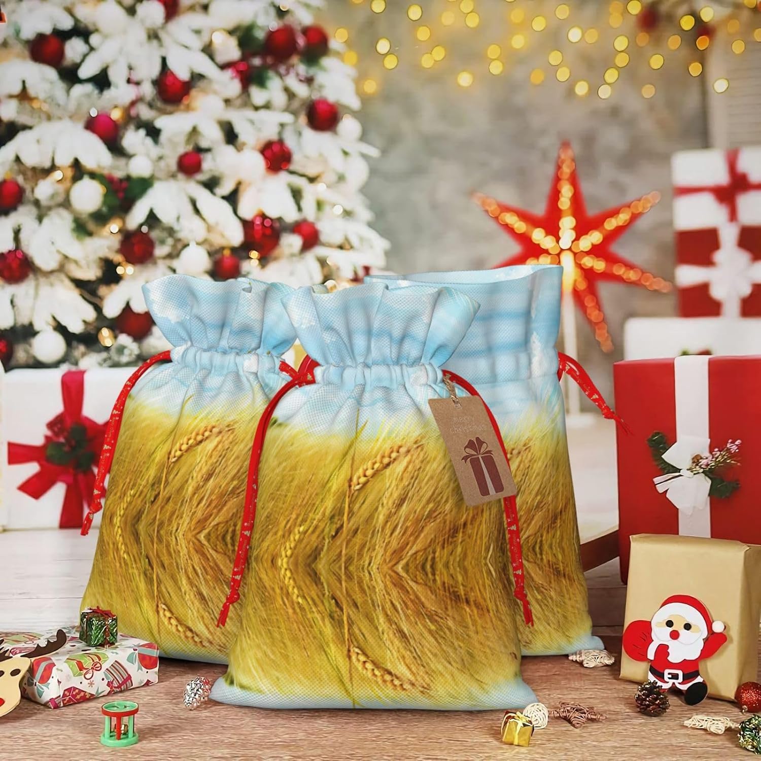 BORSE REGALO DI ALTO VALORE: la borsa Paddy Rice Field è dotata di sacchetti regalo con cordoncini colorati ed etichette. I sacchetti regalo sono aggiornati con un design con chiusura a coulisse, sacchetti regalo realizzati in poliestere, resistenti e riutilizzabili. Non si strappano come la carta, ottimi per incartare i regali. 10 secondi per incartare un regalo: il sacchetto Paddy Rice Field per confezionare facilmente i regali, è facile da usare, basta inserire il regalo nei sacchetti, far scorrere l'etichetta regalo attraverso il nastro, tirare il nastro, annodare un fiocco e il gioco è fatto. Puoi evitare il fastidio associato a carta da imballaggio, forbici, nastro adesivo e nastro, risparmiare tempo e molto conveniente. Dimensioni del sacchetto regalo: i sacchetti regalo in 2 dimensioni possono soddisfare le preferenze di diverse persone e sono sufficienti per l'uso quotidiano e la festa di Natale. La S misura 12 x 17,5 cm e la M misura 12 x 30 cm. Sacchetti regalo in formati assortiti sfusi, perfetti per confezionare regali di diverse dimensioni. REGALO NEL REGALO: questi sacchetti regalo Paddy Rice Field possono essere riutilizzati molte volte. Un set di sacchetti regalo riutilizzabili sarà un'aggiunta meravigliosa a qualsiasi regalo e migliorerà l'esperienza complessiva del regalo. Inoltre, abbiamo rinforzato il fondo per una maggiore stabilità e una struttura robusta con carichi pesanti. Non facile da rompere per un uso durevole e duraturo. Sacchetti regalo multifunzionali: questi sacchetti di riso Paddy possono essere utilizzati per conservare regali di Natale, giocattoli, bambole, cappelli di Natale, caramelle e regali durante la festa di Natale. Conservare i regali in questa borsa darà ai bambini più sorprese perché non sanno cosa c'è dentro.