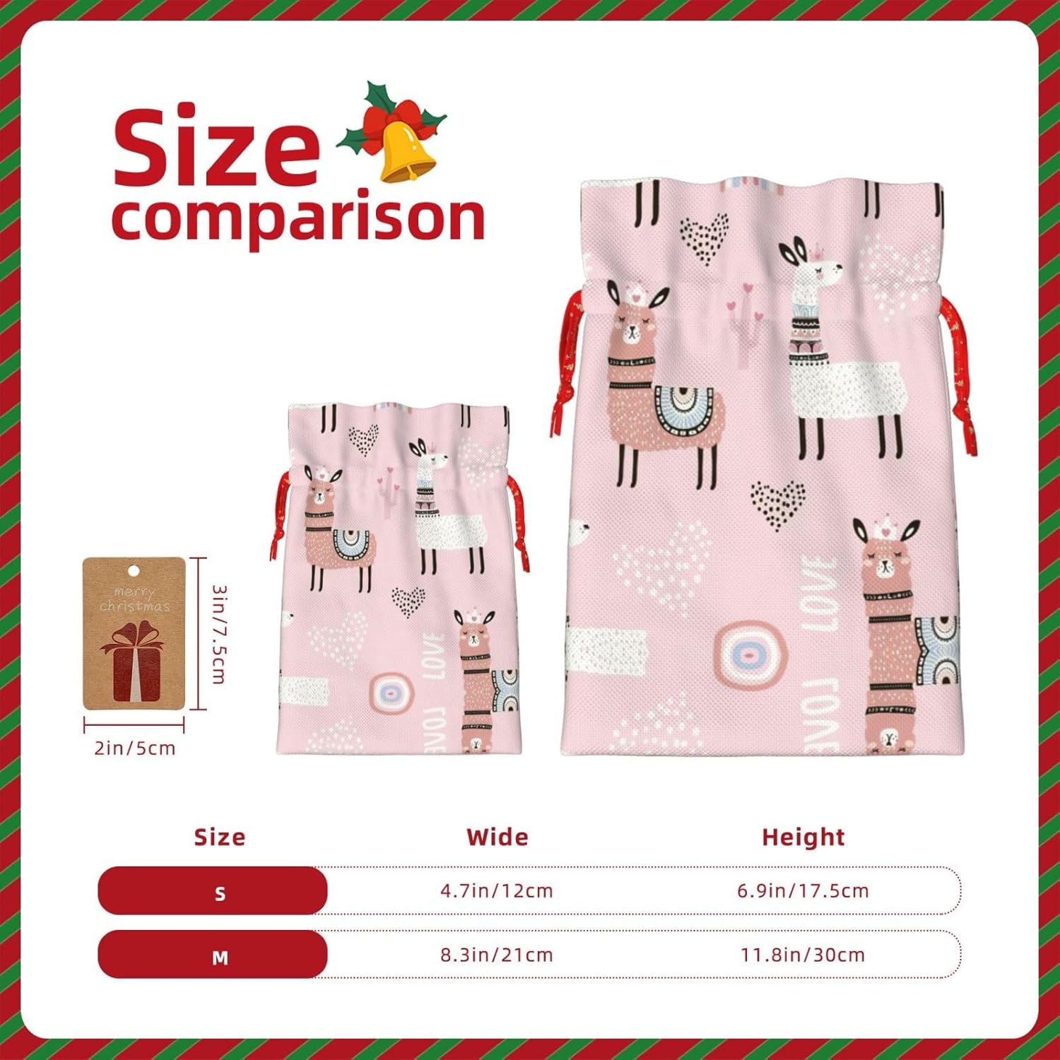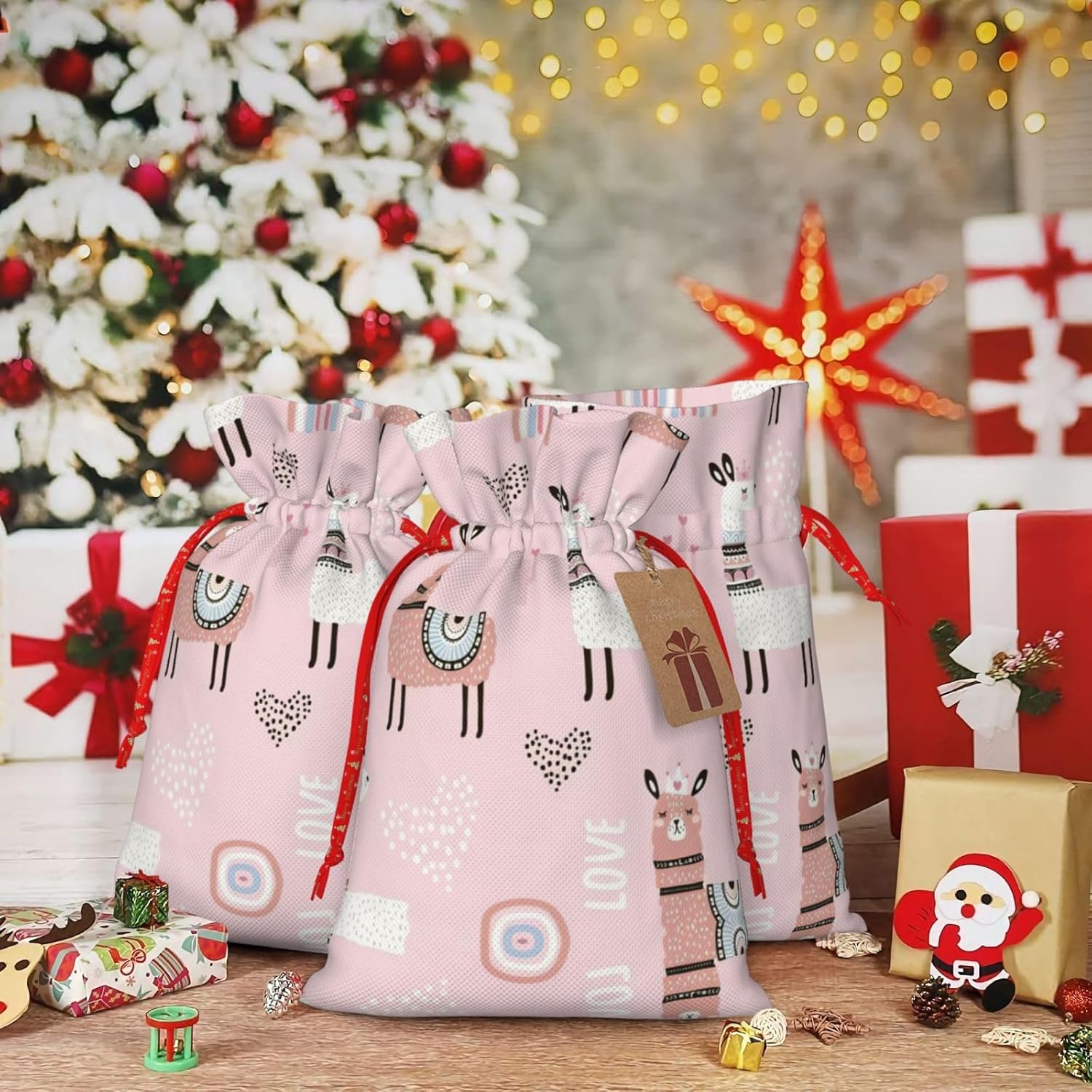 BORSE REGALO DI ALTO VALORE: la borsa rosa lama cactus è dotata di sacchetti regalo con cordoncini colorati ed etichette. I sacchetti regalo sono aggiornati con un design con chiusura a coulisse, sacchetti regalo realizzati in poliestere, resistenti e riutilizzabili. Non si strappano come la carta, ottimi per incartare i regali. 10 secondi per incartare un regalo: il sacchetto rosa lama cactus per confezionare facilmente i regali, è facile da usare, basta inserire il regalo nei sacchetti, far scorrere l'etichetta regalo attraverso il nastro, tirare il nastro, annodare un fiocco e il gioco è fatto. Puoi evitare il fastidio associato a carta da imballaggio, forbici, nastro adesivo e nastro, risparmiare tempo e molto conveniente. Dimensioni del sacchetto regalo: i sacchetti regalo in 2 dimensioni possono soddisfare le preferenze di diverse persone e sono sufficienti per l'uso quotidiano e la festa di Natale. La S misura 12 x 17,5 cm e la M misura 12 x 30 cm. Sacchetti regalo in formati assortiti sfusi, perfetti per confezionare regali di diverse dimensioni. REGALO NEL REGALO: questi sacchetti regalo rosa con lama e cactus possono essere riutilizzati molte volte. Un set di sacchetti regalo riutilizzabili sarà un'aggiunta meravigliosa a qualsiasi regalo e migliorerà l'esperienza complessiva del regalo. Inoltre, abbiamo rinforzato il fondo per una maggiore stabilità e una struttura robusta con carichi pesanti. Non facile da rompere per un uso durevole e duraturo. Sacchetti regalo multifunzionali: questi sacchetti natalizi di cactus di lama rosa possono essere utilizzati per conservare regali di Natale, giocattoli, bambole, cappelli natalizi, caramelle e regali durante la festa di Natale. Conservare i regali in questa borsa darà ai bambini più sorprese perché non sanno cosa c'è dentro.