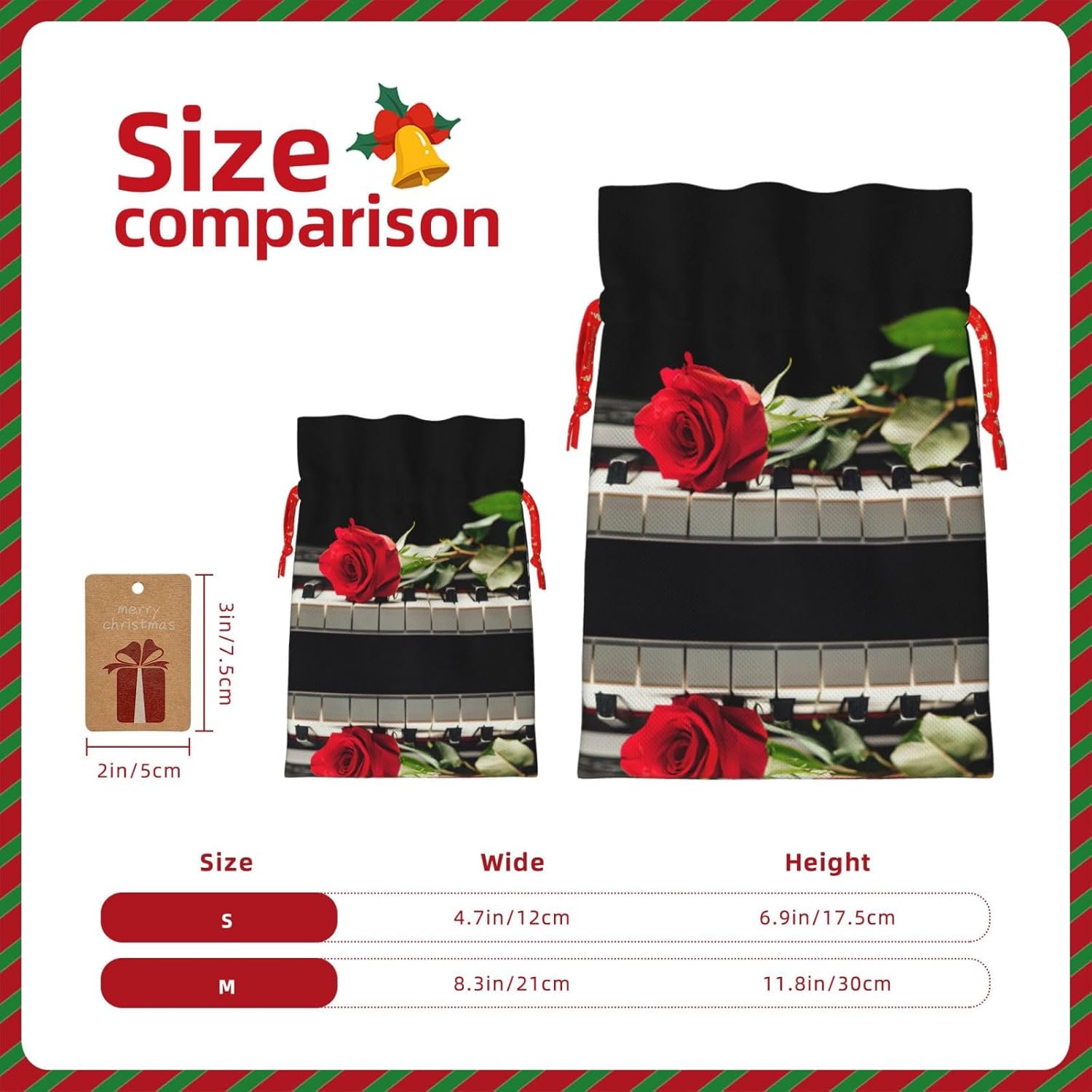 BORSE REGALO DI ALTO VALORE: La rosa rossa sulla borsa del pianoforte presenta sacchetti regalo con cordoncini colorati ed etichette. I sacchetti regalo sono aggiornati con un design con chiusura a coulisse, sacchetti regalo realizzati in poliestere, resistenti e riutilizzabili. Non si strappano come la carta, ottimi per incartare i regali. 10 secondi per incartare un regalo: la rosa rossa sulla borsa del pianoforte per confezionare facilmente i regali, è facile da usare, basta inserire il regalo nelle buste, far scorrere l'etichetta regalo attraverso il nastro, tirare il nastro, annodare un fiocco e il gioco è fatto. Puoi evitare il fastidio associato a carta da imballaggio, forbici, nastro adesivo e nastro, risparmiare tempo e molto conveniente. Dimensioni del sacchetto regalo: i sacchetti regalo in 2 dimensioni possono soddisfare le preferenze di diverse persone e sono sufficienti per l'uso quotidiano e la festa di Natale. La S misura 12 x 17,5 cm e la M misura 12 x 30 cm. Sacchetti regalo in formati assortiti sfusi, perfetti per confezionare regali di diverse dimensioni. REGALO NEL REGALO: questi sacchetti regalo per pianoforte con rose rosse possono essere riutilizzati molte volte. Un set di sacchetti regalo riutilizzabili sarà un'aggiunta meravigliosa a qualsiasi regalo e migliorerà l'esperienza complessiva del regalo. Inoltre, abbiamo rinforzato il fondo per una maggiore stabilità e una struttura robusta con carichi pesanti. Non facile da rompere per un uso durevole e duraturo. Sacchetti regalo multifunzionali: questi sacchetti natalizi con rose rosse per pianoforte possono essere utilizzati per conservare regali di Natale, giocattoli, bambole, cappelli natalizi, caramelle e regali durante la festa di Natale. Conservare i regali in questa borsa darà ai bambini più sorprese perché non sanno cosa c'è dentro.