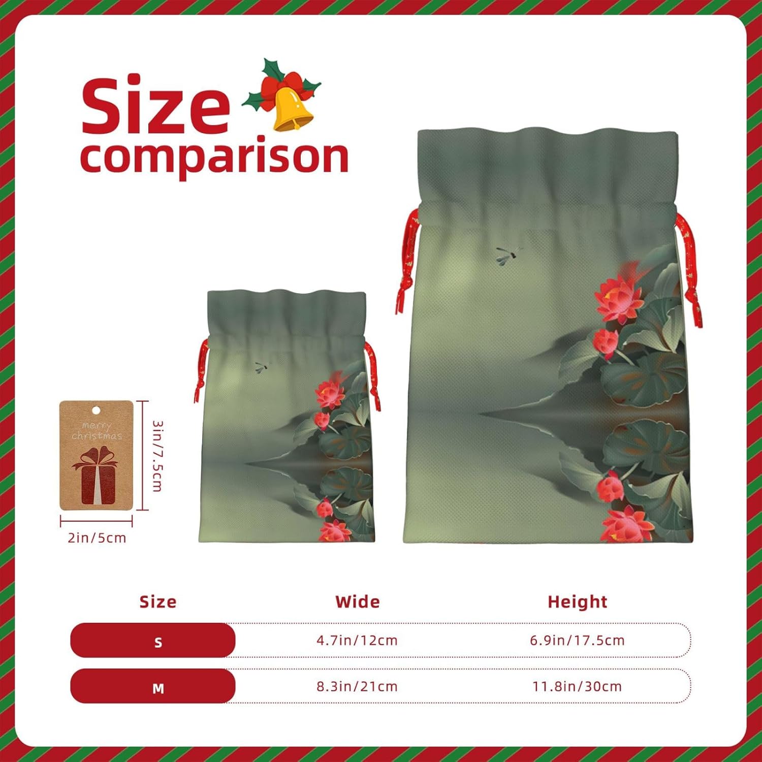 BORSE REGALO DI ALTO VALORE: la borsa con libellula fiore di loto è dotata di sacchetti regalo con cordoncini colorati ed etichette. I sacchetti regalo sono aggiornati con un design con chiusura a coulisse, sacchetti regalo realizzati in poliestere, resistenti e riutilizzabili. Non si strappano come la carta, ottimi per incartare i regali. 10 secondi per incartare un regalo: il sacchetto con fiori di loto e libellula per confezionare facilmente i regali, è facile da usare, basta inserire il regalo nei sacchetti, far scorrere l'etichetta regalo attraverso il nastro, tirare il nastro, annodare un fiocco e il gioco è fatto. Puoi evitare il fastidio associato a carta da imballaggio, forbici, nastro adesivo e nastro, risparmiare tempo e molto conveniente. Dimensioni del sacchetto regalo: i sacchetti regalo in 2 dimensioni possono soddisfare le preferenze di diverse persone e sono sufficienti per l'uso quotidiano e la festa di Natale. La S misura 12 x 17,5 cm e la M misura 12 x 30 cm. Sacchetti regalo in formati assortiti sfusi, perfetti per confezionare regali di diverse dimensioni. Regalo nel regalo: questi sacchetti regalo con fiori di loto e libellula possono essere riutilizzati molte volte. Un set di sacchetti regalo riutilizzabili sarà un'aggiunta meravigliosa a qualsiasi regalo e migliorerà l'esperienza complessiva del regalo. Inoltre, abbiamo rinforzato il fondo per una maggiore stabilità e una struttura robusta con carichi pesanti. Non facile da rompere per un uso durevole e duraturo. Sacchetti regalo multifunzionali: questi sacchetti regalo natalizi con fiori di loto e libellula possono essere utilizzati per conservare regali di Natale, giocattoli, bambole, cappelli natalizi, caramelle e regali durante la festa di Natale. Conservare i regali in questa borsa darà ai bambini più sorprese perché non sanno cosa c'è dentro.
