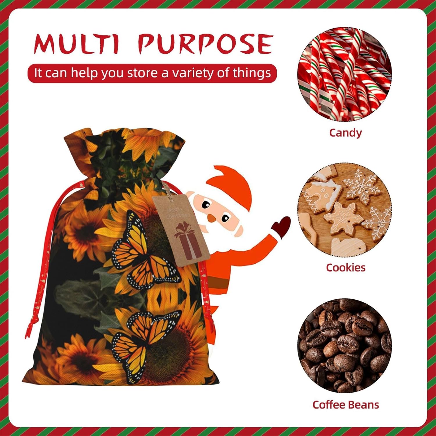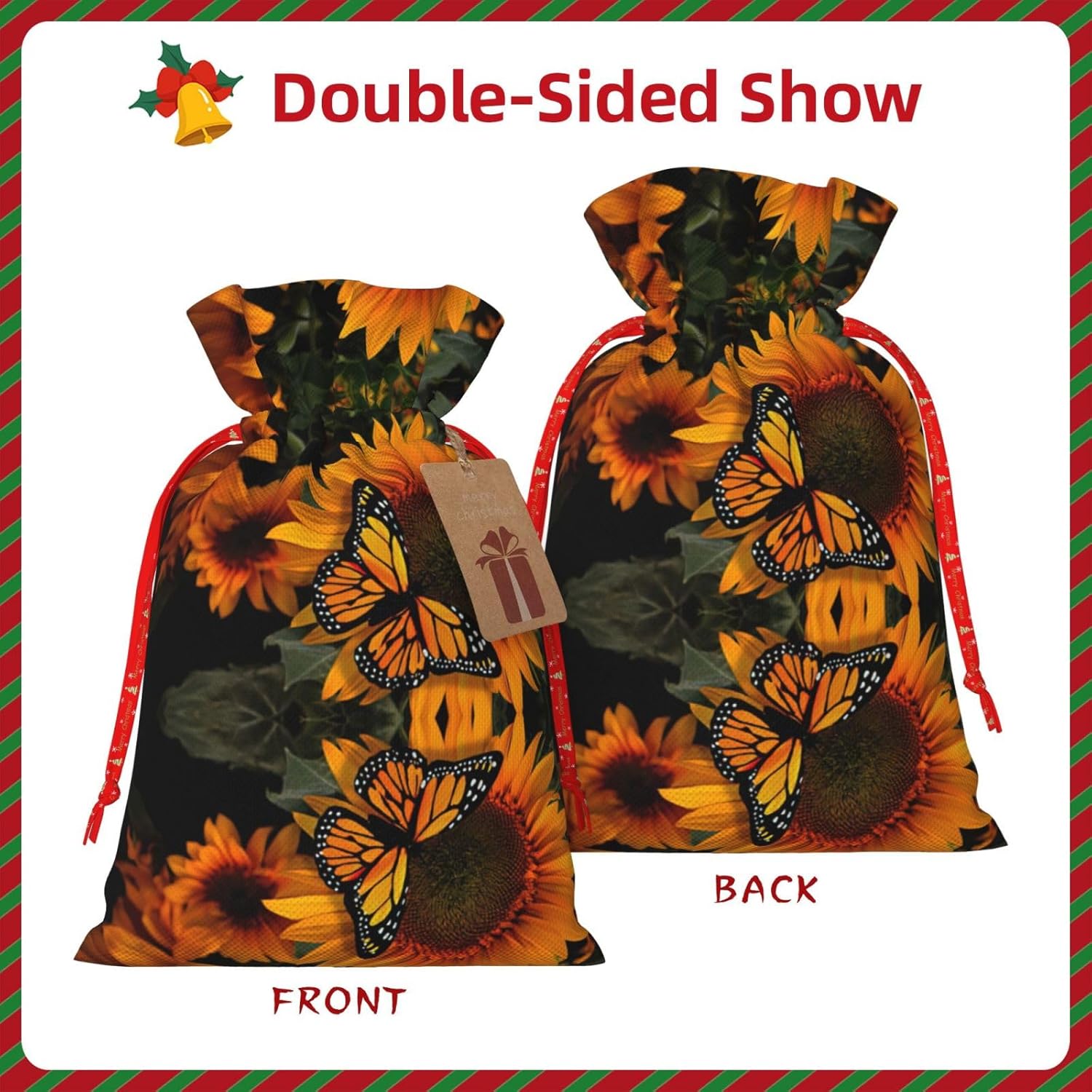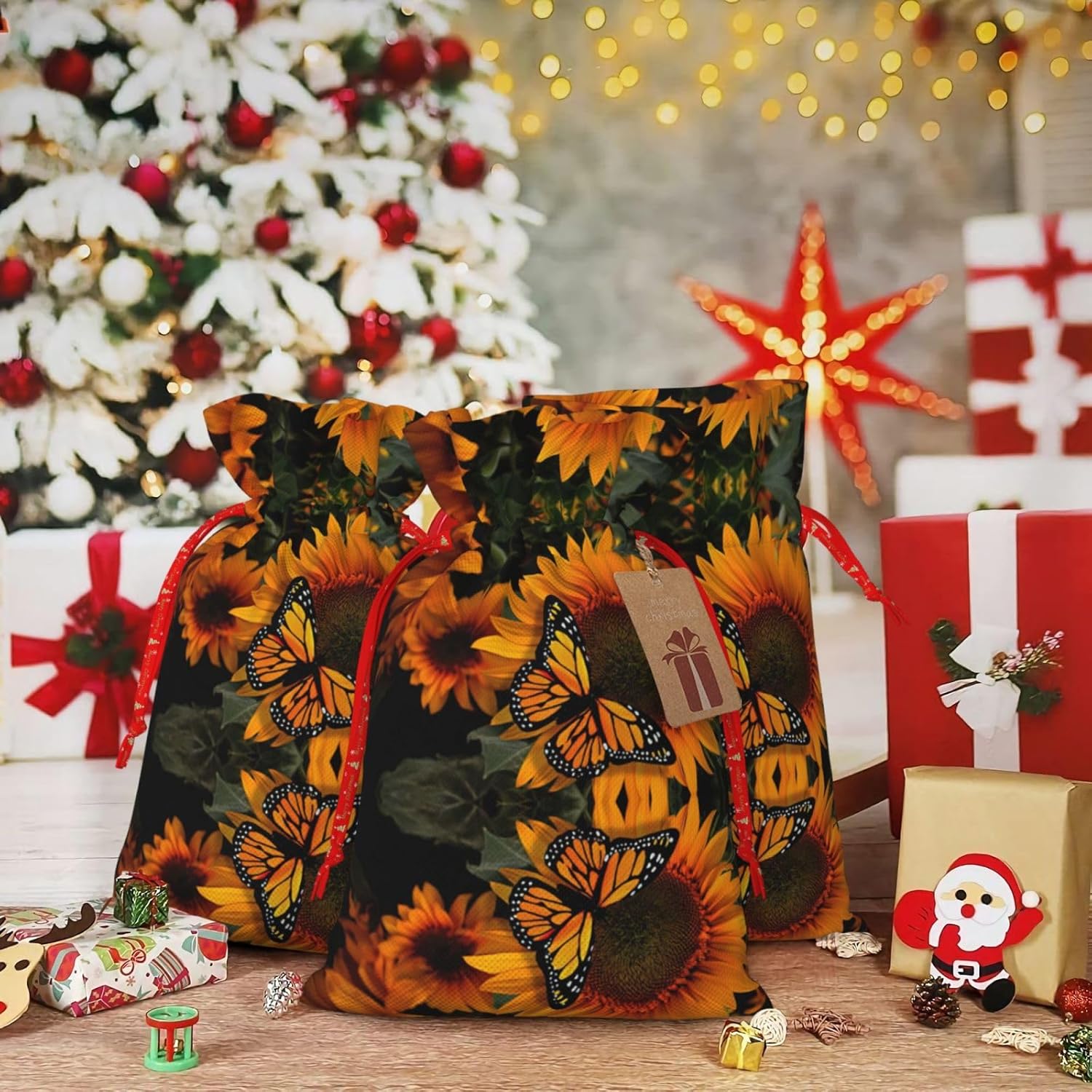 BORSE REGALO DI ALTO VALORE: la borsa Girasole con Farfalla è dotata di sacchetti regalo con cordoncini colorati ed etichette. I sacchetti regalo sono aggiornati con un design con chiusura a coulisse, sacchetti regalo realizzati in poliestere, resistenti e riutilizzabili. Non si strappano come la carta, ottimi per incartare i regali. 10 secondi per incartare un regalo: il sacchetto girasole con farfalla per confezionare facilmente i regali, è facile da usare, basta inserire il regalo nei sacchetti, far scorrere l'etichetta regalo attraverso il nastro, tirare il nastro, annodare un fiocco e il gioco è fatto. Puoi evitare il fastidio associato a carta da imballaggio, forbici, nastro adesivo e nastro, risparmiare tempo e molto conveniente. Dimensioni del sacchetto regalo: i sacchetti regalo in 2 dimensioni possono soddisfare le preferenze di diverse persone e sono sufficienti per l'uso quotidiano e la festa di Natale. La S misura 12 x 17,5 cm e la M misura 12 x 30 cm. Sacchetti regalo in formati assortiti sfusi, perfetti per confezionare regali di diverse dimensioni. REGALO NEL REGALO: questi sacchetti regalo con girasole e farfalla possono essere riutilizzati molte volte. Un set di sacchetti regalo riutilizzabili sarà un'aggiunta meravigliosa a qualsiasi regalo e migliorerà l'esperienza complessiva del regalo. Inoltre, abbiamo rinforzato il fondo per una maggiore stabilità e una struttura robusta con carichi pesanti. Non facile da rompere per un uso durevole e duraturo. Sacchetti regalo multifunzionali: questi girasoli natalizi con sacchetti a farfalla possono essere utilizzati per conservare regali di Natale, giocattoli, bambole, cappelli natalizi, caramelle e regali durante una festa di Natale. Conservare i regali in questa borsa darà ai bambini più sorprese perché non sanno cosa c'è dentro.
