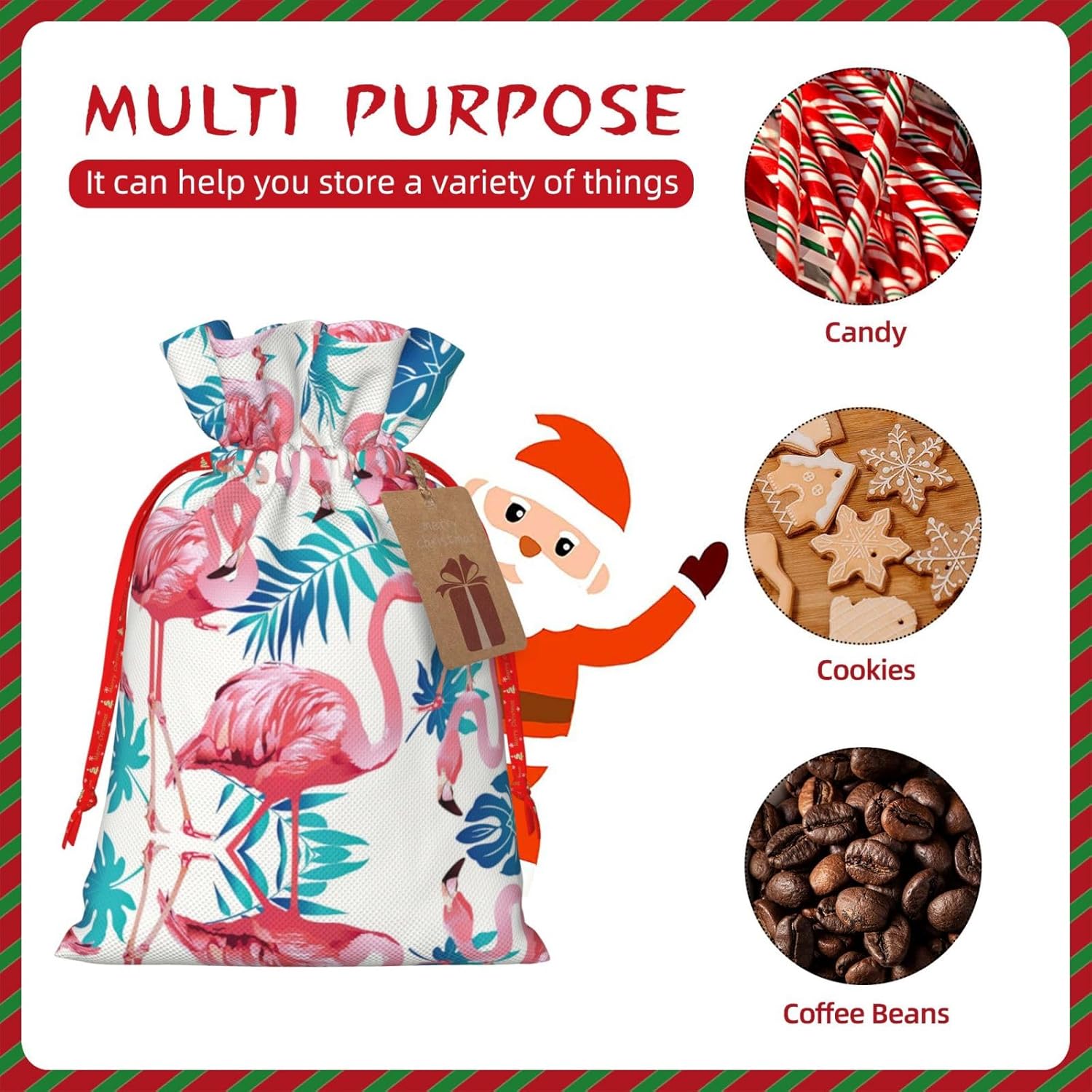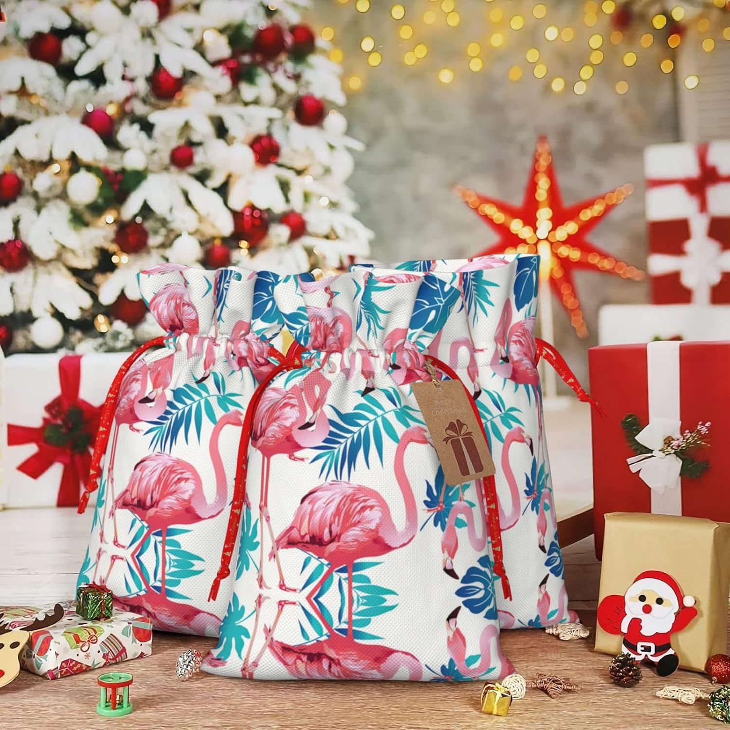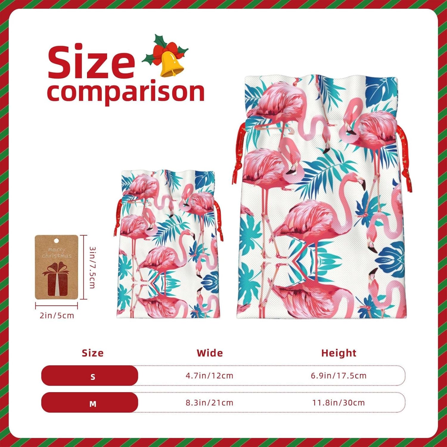 BORSE REGALO DI ALTO VALORE: la borsa Flamingo Green Leaf è dotata di sacchetti regalo con cordoncini colorati ed etichette. I sacchetti regalo sono aggiornati con un design con chiusura a coulisse, sacchetti regalo realizzati in poliestere, resistenti e riutilizzabili. Non si strappano come la carta, ottimi per incartare i regali. 10 secondi per incartare un regalo: il sacchetto con foglie verde fenicottero per confezionare facilmente i regali, è facile da usare, basta inserire il regalo nei sacchetti, far scorrere l'etichetta regalo attraverso il nastro, tirare il nastro, annodare un fiocco e il gioco è fatto. Puoi evitare il fastidio associato a carta da imballaggio, forbici, nastro adesivo e nastro, risparmiare tempo e molto conveniente. Dimensioni del sacchetto regalo: i sacchetti regalo in 2 dimensioni possono soddisfare le preferenze di diverse persone e sono sufficienti per l'uso quotidiano e la festa di Natale. La S misura 12 x 17,5 cm e la M misura 12 x 30 cm. Sacchetti regalo in formati assortiti sfusi, perfetti per confezionare regali di diverse dimensioni. REGALO NEL REGALO: questi sacchetti regalo con fenicotteri e foglie verdi possono essere riutilizzati molte volte. Un set di sacchetti regalo riutilizzabili sarà un'aggiunta meravigliosa a qualsiasi regalo e migliorerà l'esperienza complessiva del regalo. Inoltre, abbiamo rinforzato il fondo per una maggiore stabilità e una struttura robusta con carichi pesanti. Non facile da rompere per un uso durevole e duraturo. Sacchetti regalo multifunzionali: questi sacchetti natalizi con fenicotteri e foglie verdi possono essere utilizzati per conservare regali di Natale, giocattoli, bambole, cappelli natalizi, caramelle e regali durante la festa di Natale. Conservare i regali in questa borsa darà ai bambini più sorprese perché non sanno cosa c'è dentro.