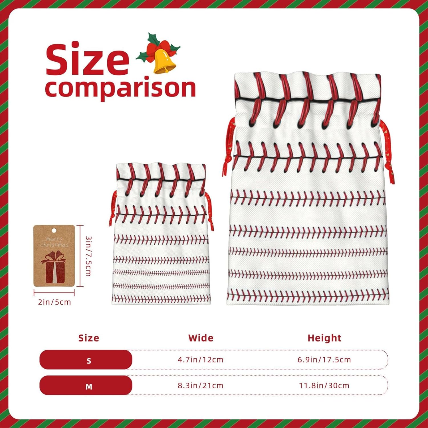 BORSE REGALO DI ALTO VALORE: la borsa rossa con lacci da baseball e softball è dotata di sacchetti regalo con cordoncini colorati ed etichette. I sacchetti regalo sono aggiornati con un design con chiusura a coulisse, sacchetti regalo realizzati in poliestere, resistenti e riutilizzabili. Non si strappano come la carta, ottimi per incartare i regali. 10 secondi per incartare un regalo: il sacchetto in pizzo rosso per confezionare facilmente i regali, è facile da usare, basta inserire il regalo nei sacchetti, far scorrere l'etichetta regalo attraverso il nastro, tirare il nastro, annodare un fiocco e il gioco è fatto. Puoi evitare il fastidio associato a carta da imballaggio, forbici, nastro adesivo e nastro, risparmiare tempo e molto conveniente. Dimensioni del sacchetto regalo: i sacchetti regalo in 2 dimensioni possono soddisfare le preferenze di diverse persone e sono sufficienti per l'uso quotidiano e la festa di Natale. La S misura 12 x 17,5 cm e la M misura 12 x 30 cm. Sacchetti regalo in formati assortiti sfusi, perfetti per confezionare regali di diverse dimensioni. REGALO IDEALE: questi sacchetti regalo da baseball e softball in pizzo rosso possono essere riutilizzati molte volte. Un set di sacchetti regalo riutilizzabili sarà un'aggiunta meravigliosa a qualsiasi regalo e migliorerà l'esperienza complessiva del regalo. Inoltre, abbiamo rinforzato il fondo per una maggiore stabilità e una struttura robusta con carichi pesanti. Non facile da rompere per un uso durevole e duraturo. Sacchetti regalo multifunzionali: questi sacchetti regalo natalizi con lacci rossi possono essere utilizzati per conservare regali di Natale, giocattoli, bambole, cappelli natalizi, caramelle e regali durante una festa di Natale. Conservare i regali in questa borsa darà ai bambini più sorprese perché non sanno cosa c'è dentro.