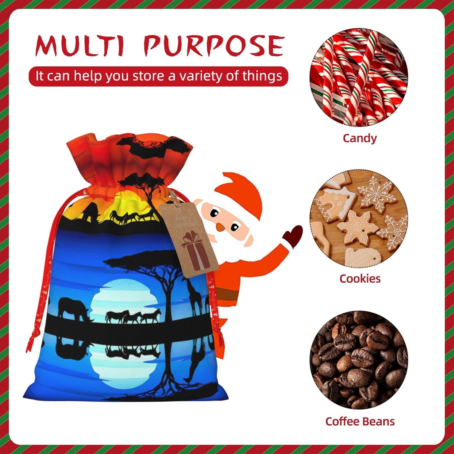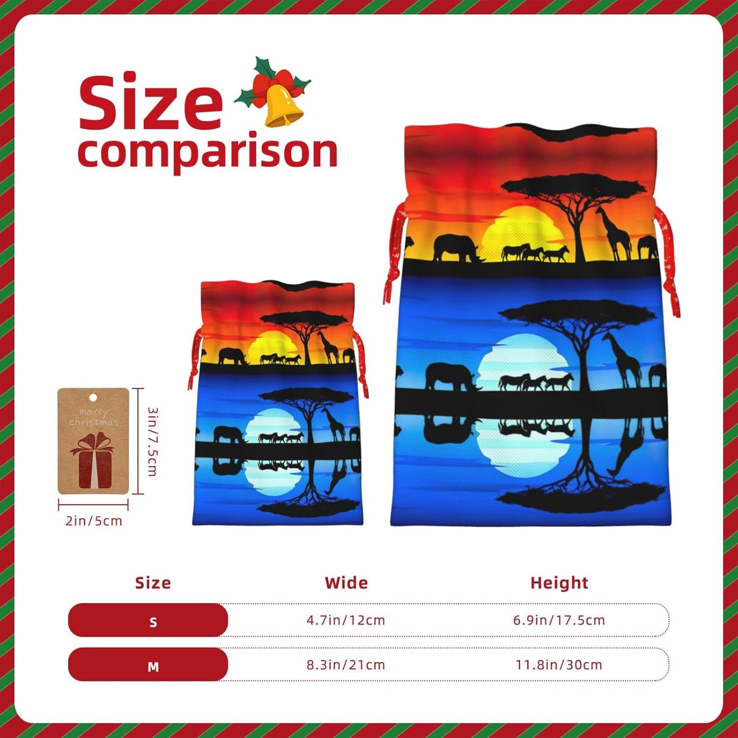 BORSE REGALO DI ALTO VALORE: la borsa Sunset Animals è dotata di sacchetti regalo con cordoncini colorati ed etichette. I sacchetti regalo sono aggiornati con un design con chiusura a coulisse, sacchetti regalo realizzati in poliestere, resistenti e riutilizzabili. Non si strappano come la carta, ottimi per incartare i regali. 10 secondi per incartare un regalo: il sacchetto degli animali del tramonto per confezionare facilmente i regali, è facile da usare, basta inserire il regalo nei sacchetti, far scorrere l'etichetta regalo attraverso il nastro, tirare il nastro, annodare un fiocco e il gioco è fatto. Puoi evitare il fastidio associato a carta da imballaggio, forbici, nastro adesivo e nastro, risparmiare tempo e molto conveniente. Dimensioni del sacchetto regalo: i sacchetti regalo in 2 dimensioni possono soddisfare le preferenze di diverse persone e sono sufficienti per l'uso quotidiano e la festa di Natale. La S misura 12 x 17,5 cm e la M misura 12 x 30 cm. Sacchetti regalo in formati assortiti sfusi, perfetti per confezionare regali di diverse dimensioni. REGALO NEL REGALO: questi sacchetti regalo con animali al tramonto possono essere riutilizzati molte volte. Un set di sacchetti regalo riutilizzabili sarà un'aggiunta meravigliosa a qualsiasi regalo e migliorerà l'esperienza complessiva del regalo. Inoltre, abbiamo rinforzato il fondo per una maggiore stabilità e una struttura robusta con carichi pesanti. Non facile da rompere per un uso durevole e duraturo. Sacchetti regalo multifunzionali: questi sacchetti regalo natalizi con animali al tramonto possono essere utilizzati per conservare regali di Natale, giocattoli, bambole, cappelli natalizi, caramelle e regali durante una festa di Natale. Conservare i regali in questa borsa darà ai bambini più sorprese perché non sanno cosa c'è dentro.