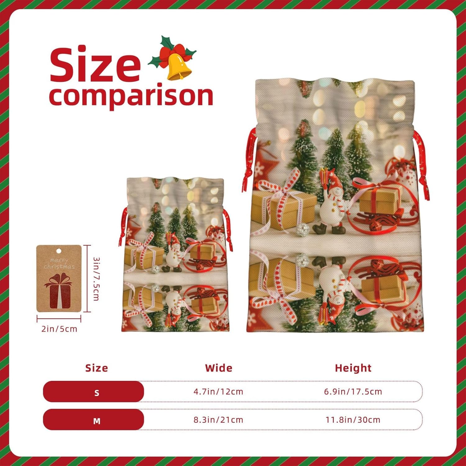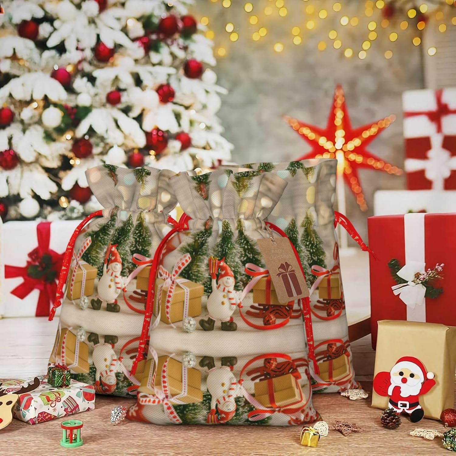 BORSE REGALO DI ALTO VALORE: la borsa con stelle di palline di Natale è dotata di sacchetti regalo con cordoncini colorati ed etichette. I sacchetti regalo sono aggiornati con un design con chiusura a coulisse, sacchetti regalo realizzati in poliestere, resistenti e riutilizzabili. Non si strappano come la carta, ottimi per incartare i regali. 10 secondi per incartare un regalo: il sacchetto con stella a sfera dell'albero di Natale per confezionare facilmente i regali, è facile da usare, basta inserire il regalo nei sacchetti, far scorrere l'etichetta regalo attraverso il nastro, tirare il nastro, annodare un fiocco e il gioco è fatto. Puoi evitare il fastidio associato a carta da imballaggio, forbici, nastro adesivo e nastro, risparmiare tempo e molto conveniente. Dimensioni del sacchetto regalo: i sacchetti regalo in 2 dimensioni possono soddisfare le preferenze di diverse persone e sono sufficienti per l'uso quotidiano e la festa di Natale. La S misura 12 x 17,5 cm e la M misura 12 x 30 cm. Sacchetti regalo in formati assortiti sfusi, perfetti per confezionare regali di diverse dimensioni. REGALO IDEALE: questi sacchetti regalo con palline di Natale possono essere riutilizzati molte volte. Un set di sacchetti regalo riutilizzabili sarà un'aggiunta meravigliosa a qualsiasi regalo e migliorerà l'esperienza complessiva del regalo. Inoltre, abbiamo rinforzato il fondo per una maggiore stabilità e una struttura robusta con carichi pesanti. Non facile da rompere per un uso durevole e duraturo. Sacchetti regalo multifunzionali: questi sacchetti con stella per albero di Natale possono essere utilizzati per conservare regali di Natale, giocattoli, bambole, cappelli di Natale, caramelle e regali durante una festa di Natale. Conservare i regali in questa borsa darà ai bambini più sorprese perché non sanno cosa c'è dentro.