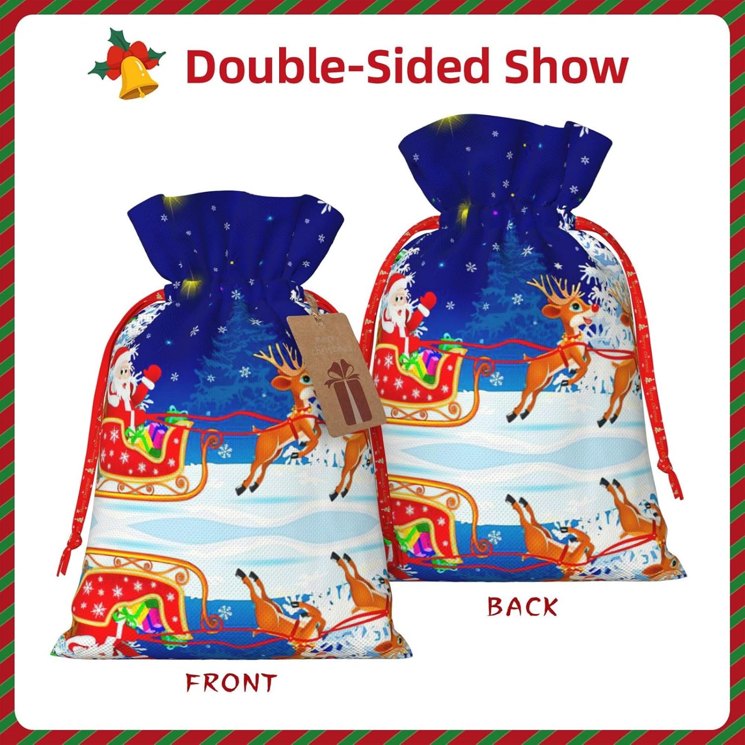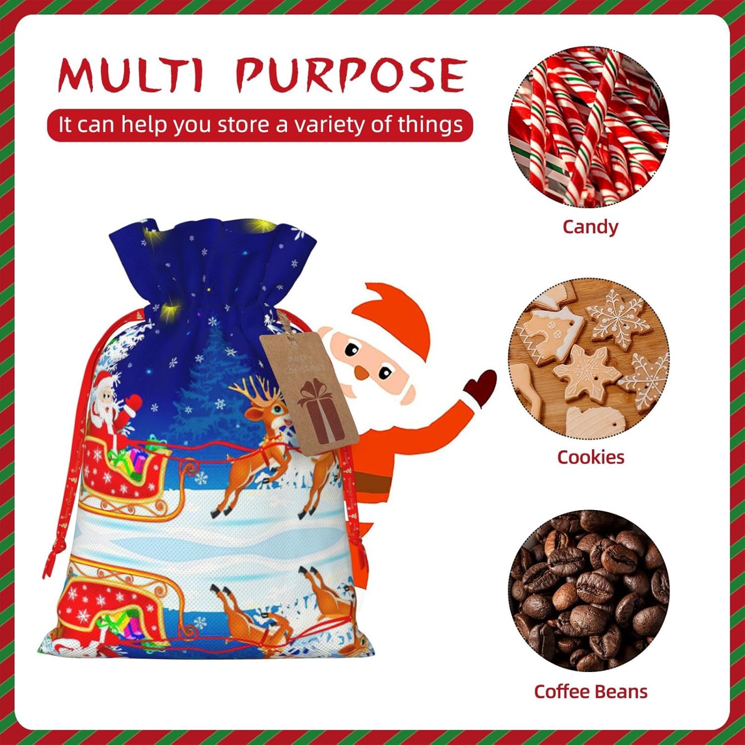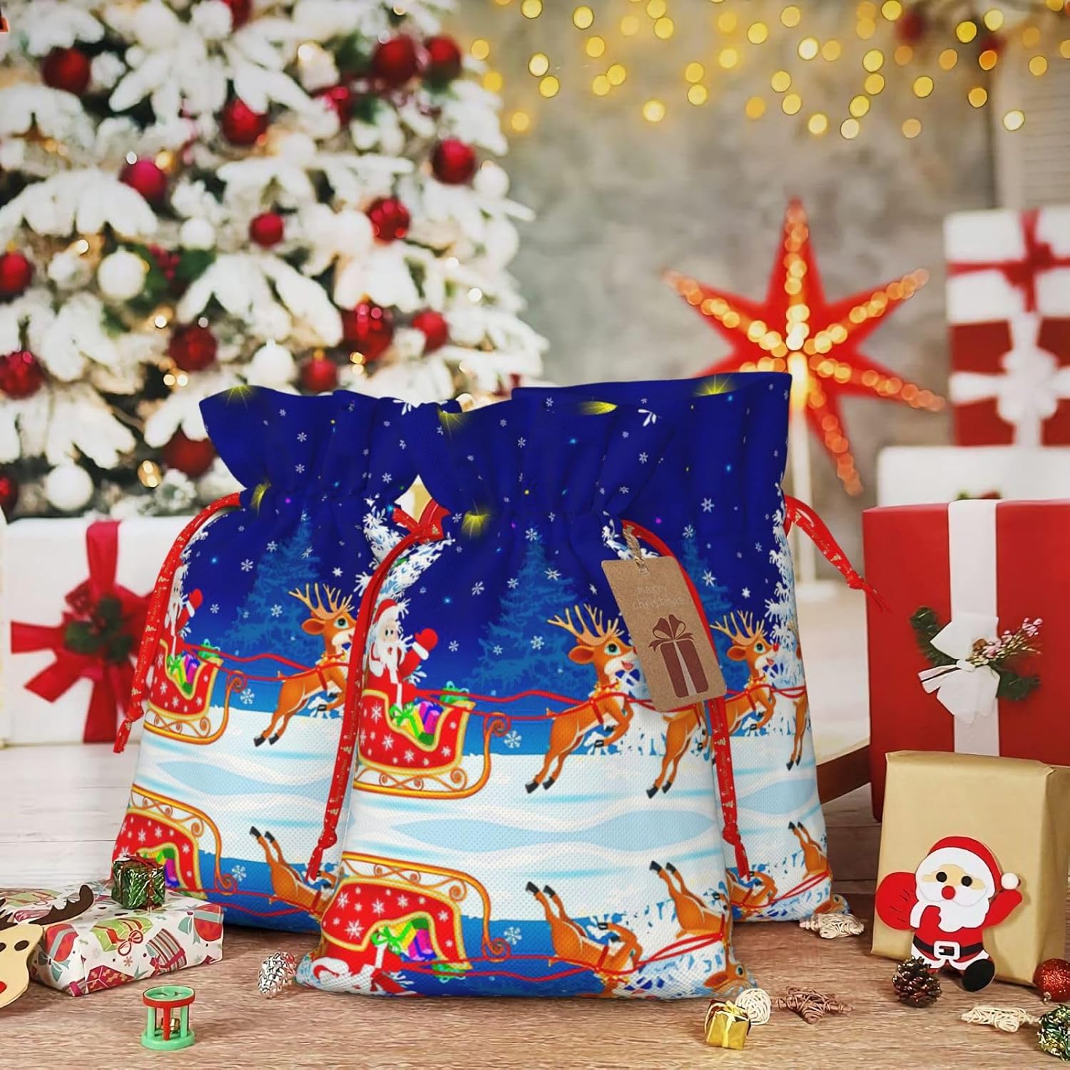 SACCHETTI REGALO DI ALTO VALORE: il sacco Babbo Natale sulla slitta è dotato di sacchetti regalo con cordoncini colorati ed etichette. I sacchetti regalo sono aggiornati con un design con chiusura a coulisse, sacchetti regalo realizzati in poliestere, resistenti e riutilizzabili. Non si strappano come la carta, ottimi per incartare i regali. 10 secondi per incartare un regalo: Babbo Natale sulla slitta per impacchettare facilmente i regali, è facile da usare, basta inserire il regalo nei sacchetti, far scorrere l'etichetta regalo attraverso il nastro, tirare il nastro, annodare un fiocco e il gioco è fatto. Puoi evitare il fastidio associato a carta da imballaggio, forbici, nastro adesivo e nastro, risparmiare tempo e molto conveniente. Dimensioni del sacchetto regalo: i sacchetti regalo in 2 dimensioni possono soddisfare le preferenze di diverse persone e sono sufficienti per l'uso quotidiano e la festa di Natale. La S misura 12 x 17,5 cm e la M misura 12 x 30 cm. Sacchetti regalo in formati assortiti sfusi, perfetti per confezionare regali di diverse dimensioni. REGALO NEL REGALO: questi sacchetti regalo di Babbo Natale sulla slitta possono essere riutilizzati molte volte. Un set di sacchetti regalo riutilizzabili sarà un'aggiunta meravigliosa a qualsiasi regalo e migliorerà l'esperienza complessiva del regalo. Inoltre, abbiamo rinforzato il fondo per una maggiore stabilità e una struttura robusta con carichi pesanti. Non facile da rompere per un uso durevole e duraturo. Sacchetti regalo multifunzionali: questi sacchetti regalo di Babbo Natale su slitta possono essere utilizzati per conservare regali di Natale, giocattoli, bambole, cappelli di Natale, caramelle e regali durante una festa di Natale. Conservare i regali in questa borsa darà ai bambini più sorprese perché non sanno cosa c'è dentro.