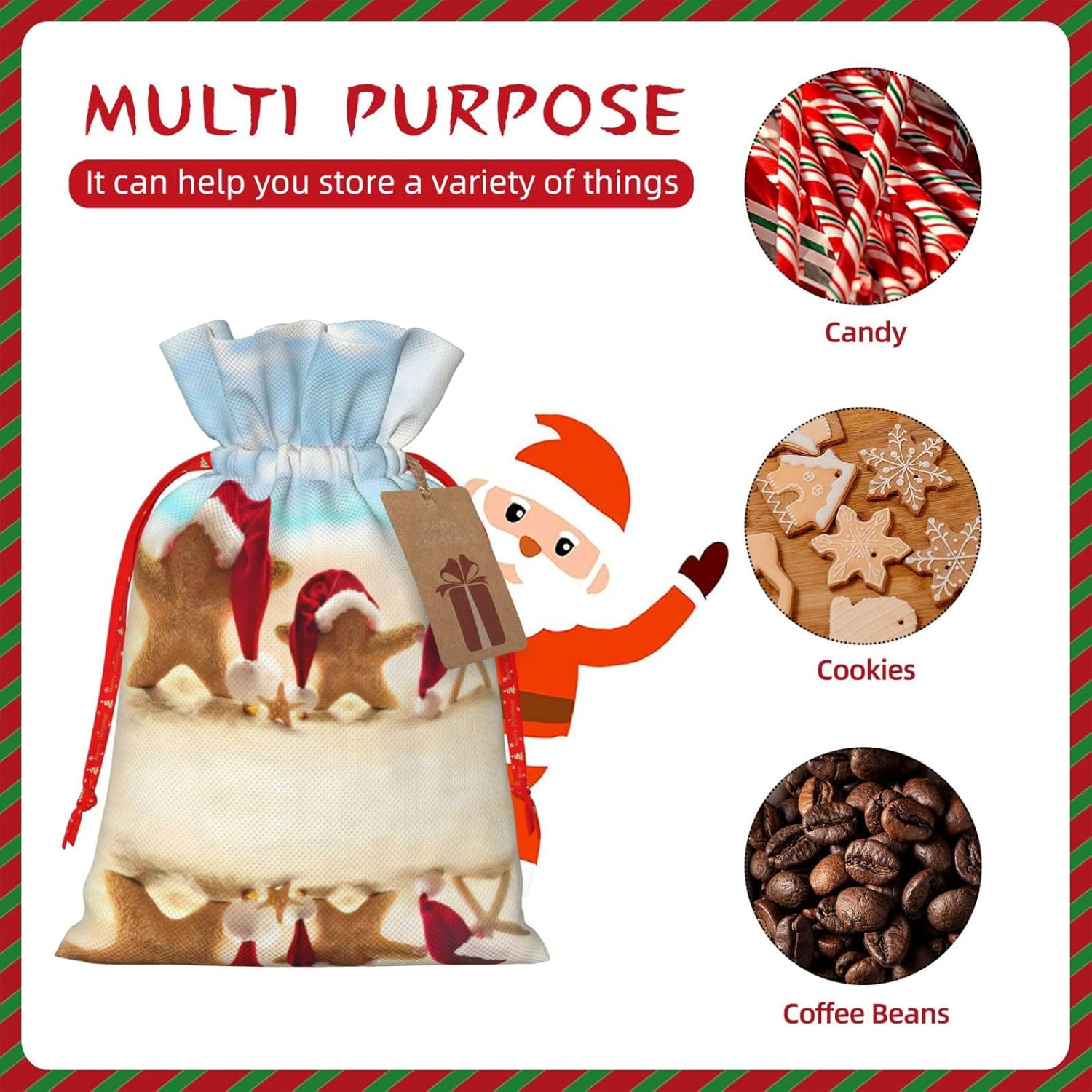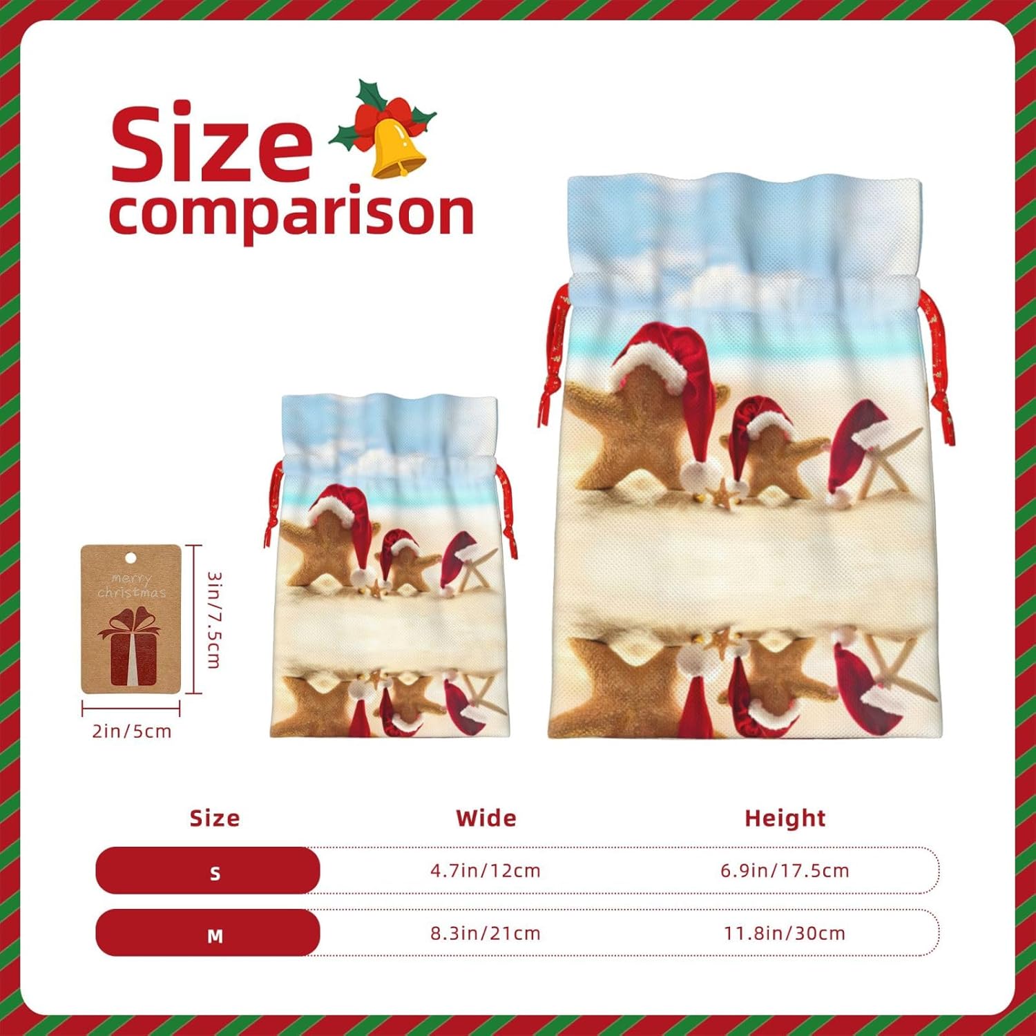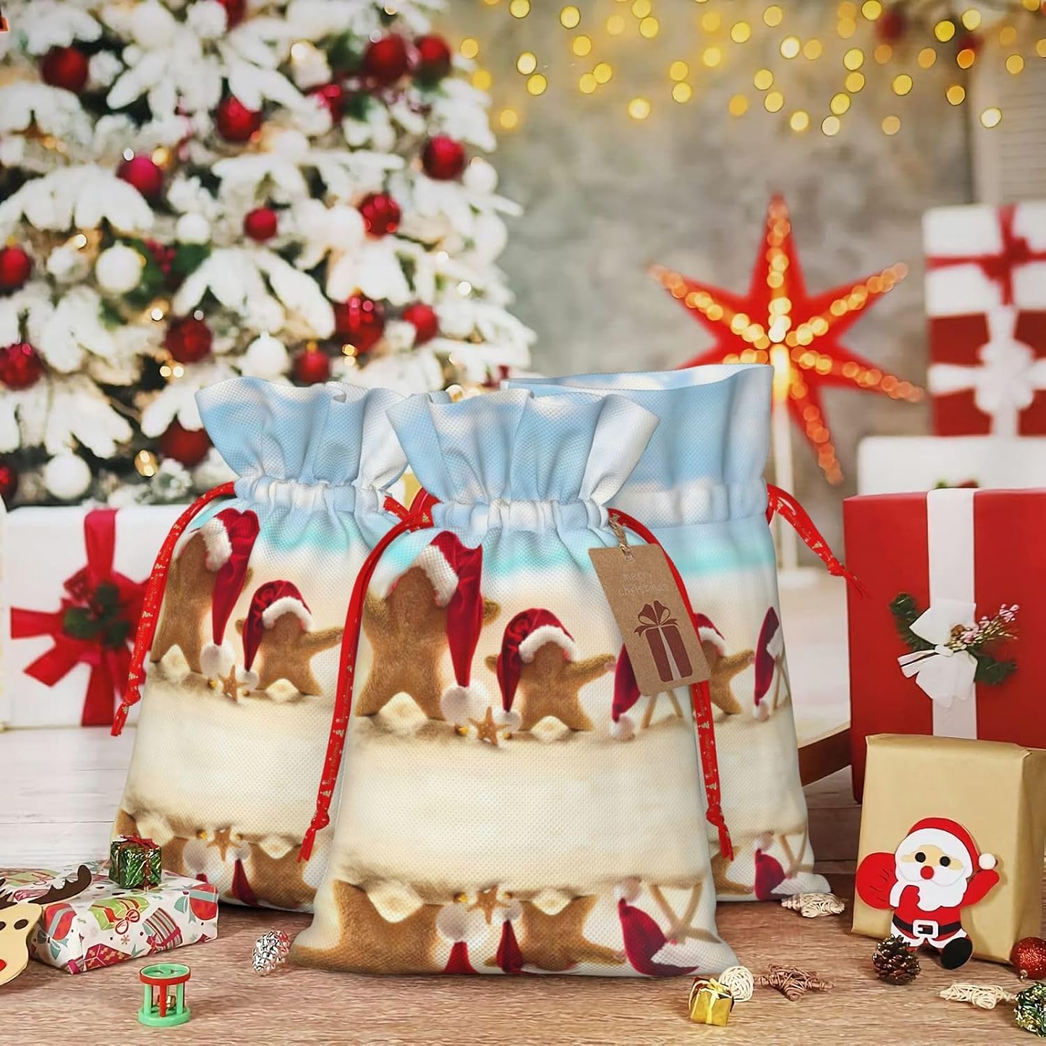 BORSE REGALO DI ALTO VALORE: la borsa da spiaggia Merry Christmas è dotata di sacchetti regalo con cordoncini colorati ed etichette. I sacchetti regalo sono aggiornati con un design con chiusura a coulisse, sacchetti regalo realizzati in poliestere, resistenti e riutilizzabili. Non si strappano come la carta, ottimi per incartare i regali. 10 secondi per incartare un regalo: borsa da spiaggia Merry Christmas per confezionare facilmente i regali, è facile da usare, basta inserire il regalo nei sacchetti, far scorrere l'etichetta regalo attraverso il nastro, tirare il nastro, annodare un fiocco e il gioco è fatto. Puoi evitare il fastidio associato a carta da imballaggio, forbici, nastro adesivo e nastro, risparmiare tempo e molto conveniente. Dimensioni del sacchetto regalo: i sacchetti regalo in 2 dimensioni possono soddisfare le preferenze di diverse persone e sono sufficienti per l'uso quotidiano e la festa di Natale. La S misura 12 x 17,5 cm e la M misura 12 x 30 cm. Sacchetti regalo in formati assortiti sfusi, perfetti per confezionare regali di diverse dimensioni. REGALO NEL REGALO: questi sacchetti regalo da spiaggia di Buon Natale possono essere riutilizzati molte volte. Un set di sacchetti regalo riutilizzabili sarà un'aggiunta meravigliosa a qualsiasi regalo e migliorerà l'esperienza complessiva del regalo. Inoltre, abbiamo rinforzato il fondo per una maggiore stabilità e una struttura robusta con carichi pesanti. Non facile da rompere per un uso durevole e duraturo. Sacchetti regalo multifunzionali: queste borse da spiaggia Merry Christmas possono essere utilizzate per conservare regali di Natale, giocattoli, bambole, cappelli di Natale, caramelle e regali durante una festa di Natale. Conservare i regali in questa borsa darà ai bambini più sorprese perché non sanno cosa c'è dentro.