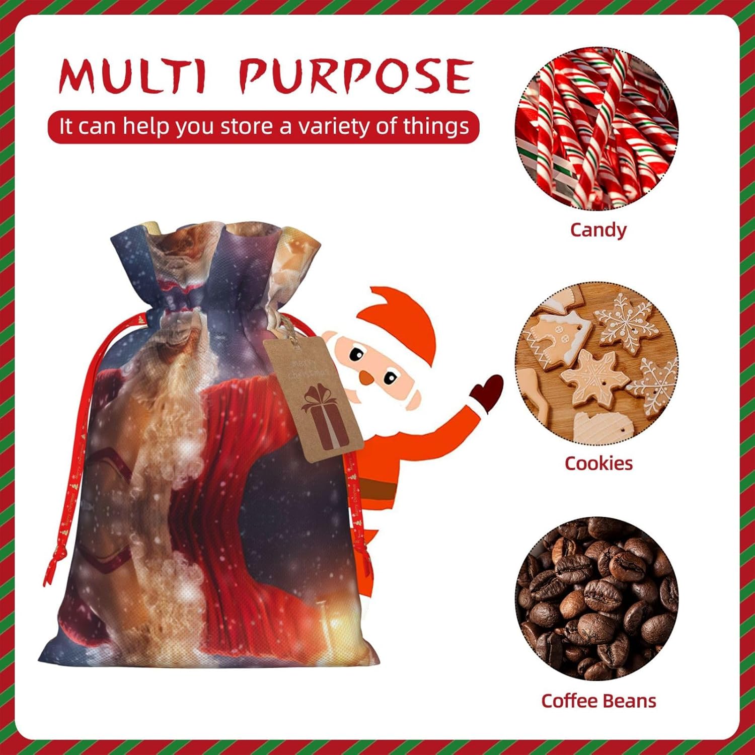 SACCHETTI REGALO DI ALTO VALORE: il sacco di Babbo Natale è dotato di sacchetti regalo con cordoncini colorati ed etichette. I sacchetti regalo sono aggiornati con un design con chiusura a coulisse, sacchetti regalo realizzati in poliestere, resistenti e riutilizzabili. Non si strappano come la carta, ottimi per incartare i regali. 10 secondi per incartare un regalo: sacchetto di Babbo Natale per confezionare facilmente i regali, è facile da usare, basta inserire il regalo nei sacchetti, far scorrere l'etichetta regalo attraverso il nastro, tirare il nastro, annodare un fiocco e il gioco è fatto. Puoi evitare il fastidio associato a carta da imballaggio, forbici, nastro adesivo e nastro, risparmiare tempo e molto conveniente. Dimensioni del sacchetto regalo: i sacchetti regalo in 2 dimensioni possono soddisfare le preferenze di diverse persone e sono sufficienti per l'uso quotidiano e la festa di Natale. La S misura 12 x 17,5 cm e la M misura 12 x 30 cm. Sacchetti regalo in formati assortiti sfusi, perfetti per confezionare regali di diverse dimensioni. Regalo nel regalo: questi sacchetti regalo di Babbo Natale possono essere riutilizzati molte volte. Un set di sacchetti regalo riutilizzabili sarà un'aggiunta meravigliosa a qualsiasi regalo e migliorerà l'esperienza complessiva del regalo. Inoltre, abbiamo rinforzato il fondo per una maggiore stabilità e una struttura robusta con carichi pesanti. Non facile da rompere per un uso durevole e duraturo. Sacchetti regalo multifunzionali: questi sacchetti regalo di Natale possono essere utilizzati per conservare regali di Natale, giocattoli, bambole, cappelli di Natale, caramelle e regali durante una festa di Natale. Conservare i regali in questa borsa darà ai bambini più sorprese perché non sanno cosa c'è dentro.