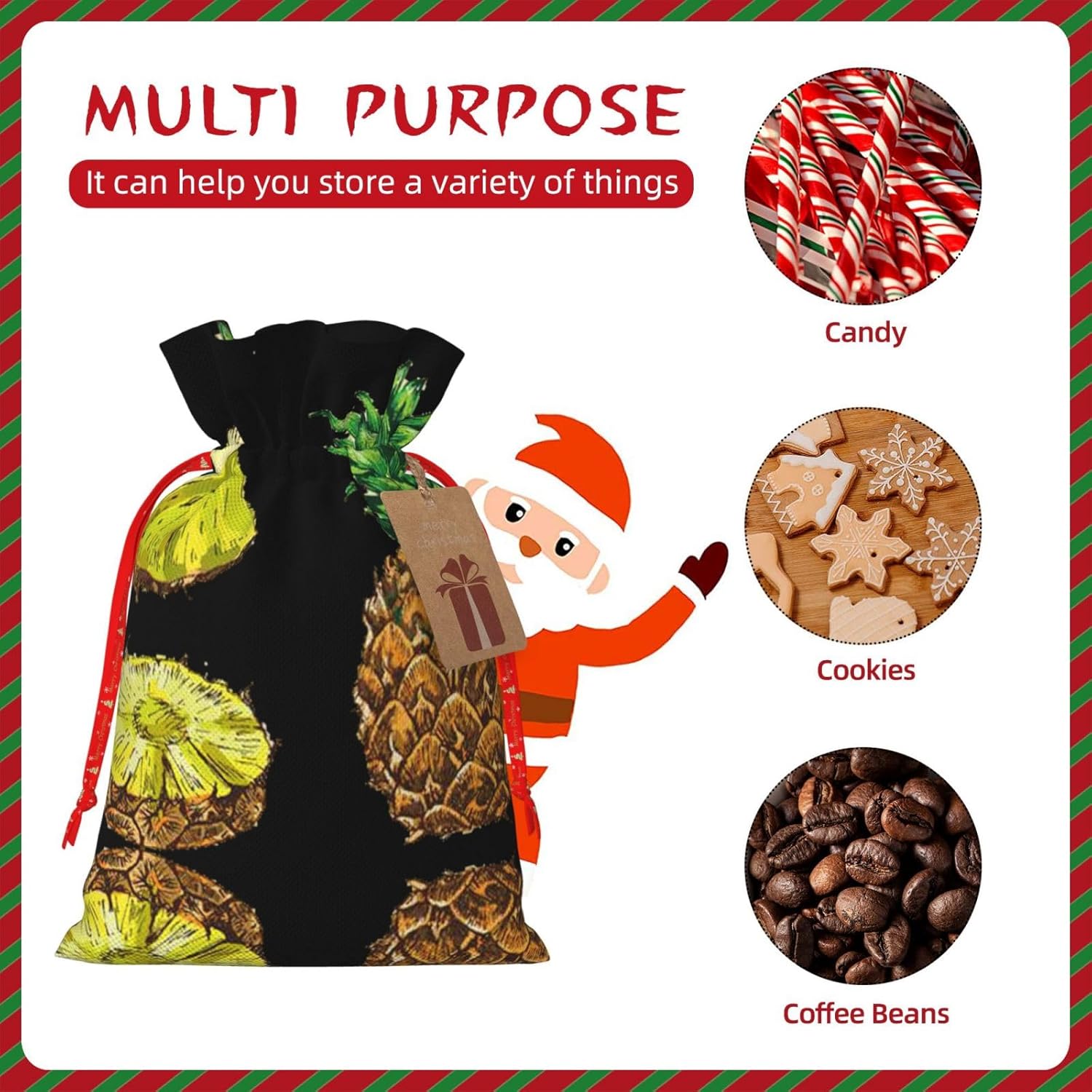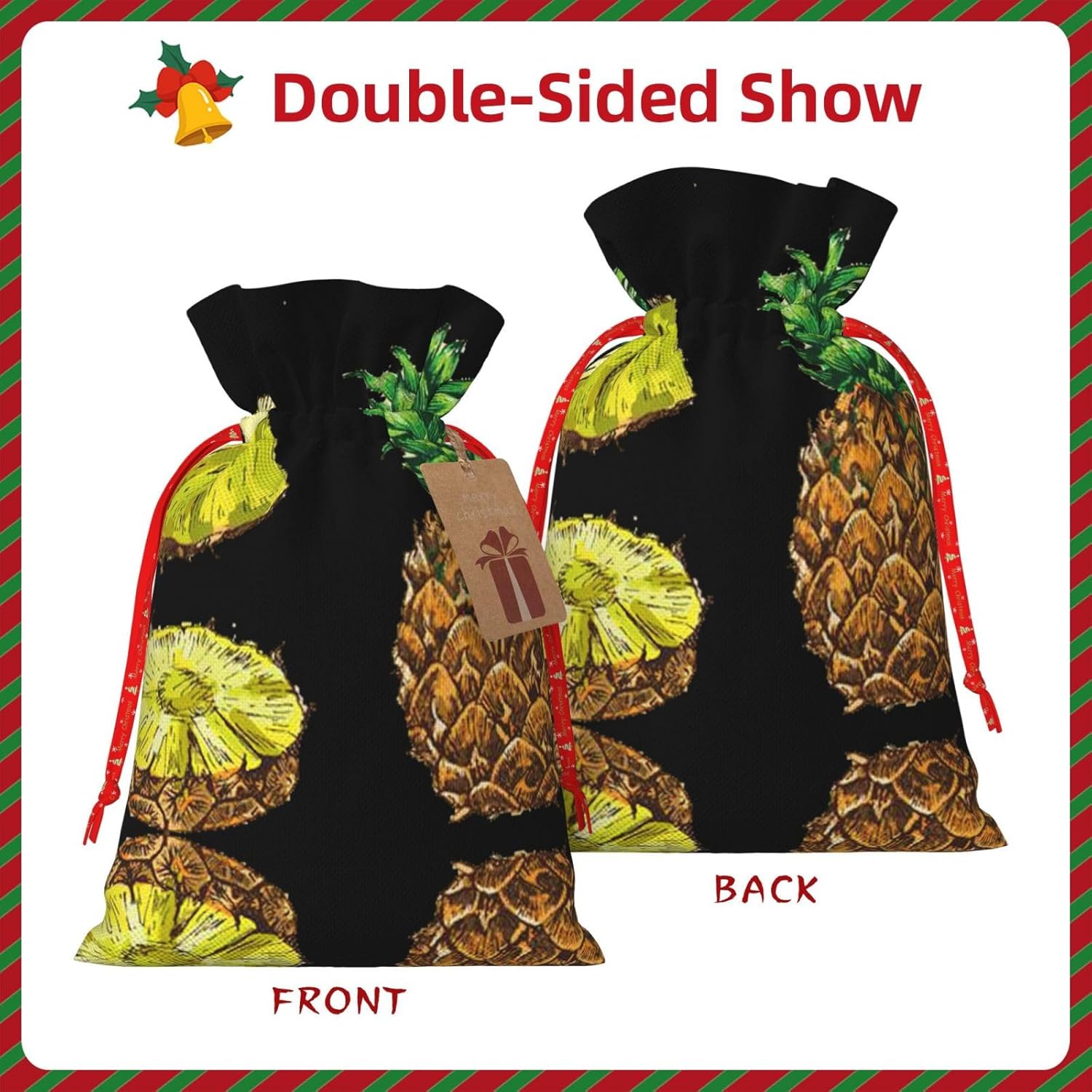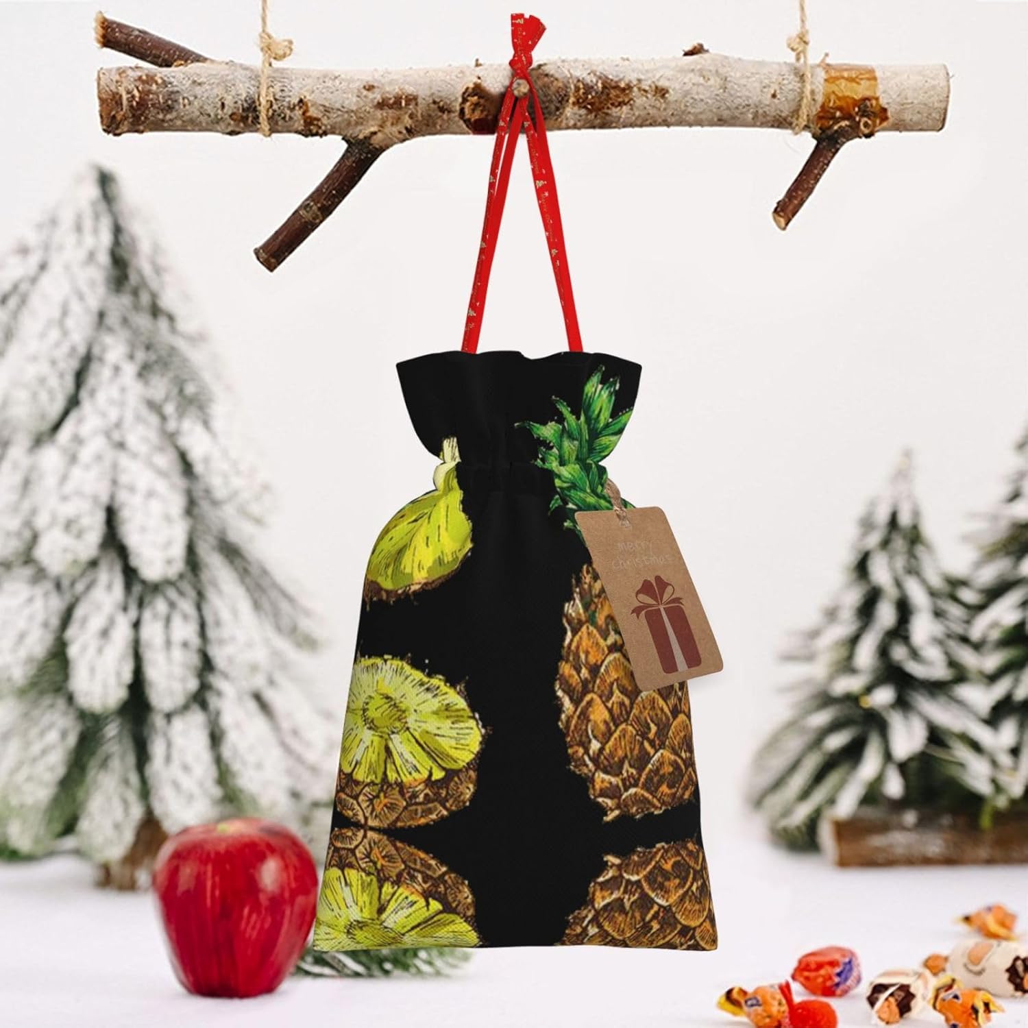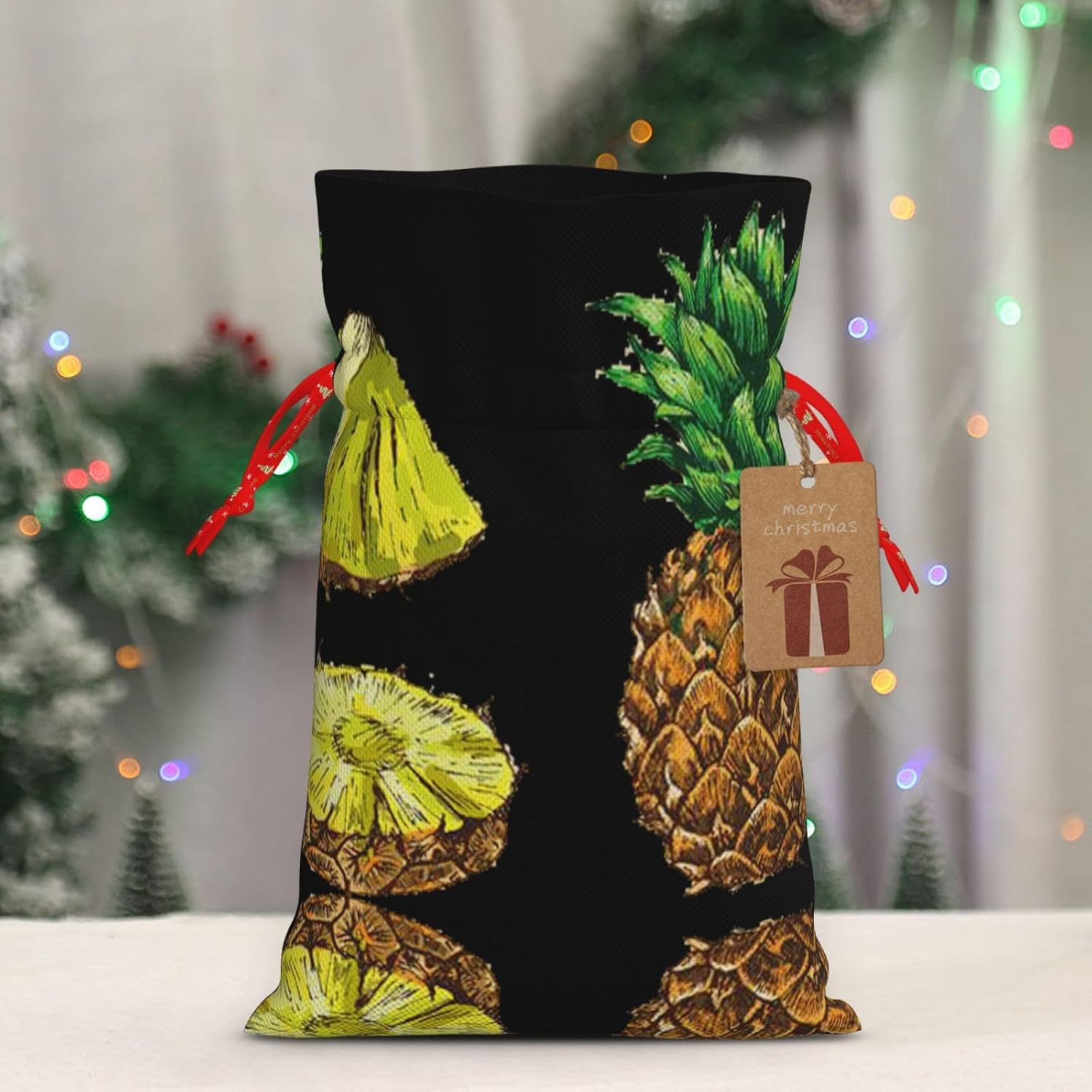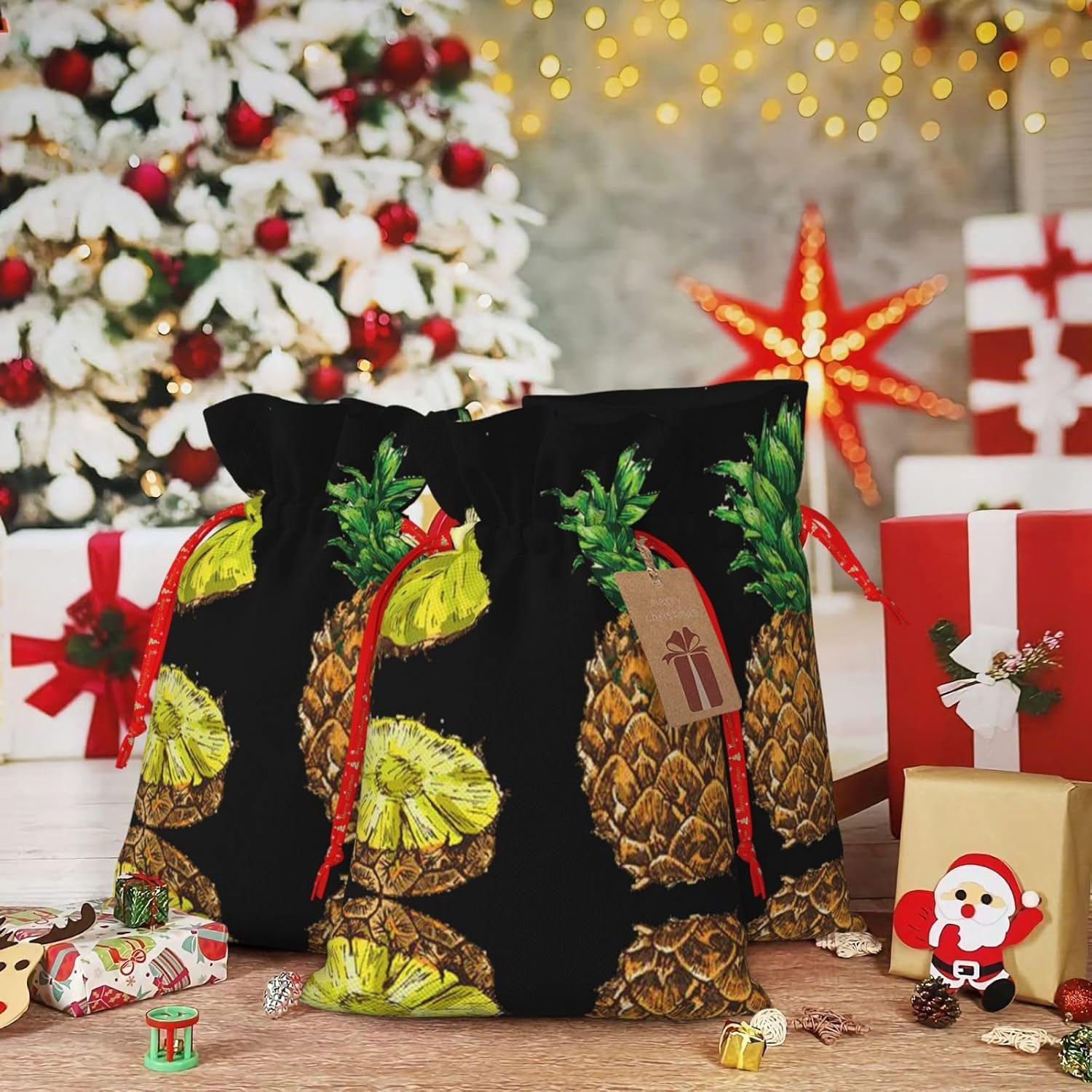 BORSE REGALO DI ALTO VALORE: la borsa a forma di ananas è dotata di sacchetti regalo con cordoncini colorati ed etichette. I sacchetti regalo sono aggiornati con un design con chiusura a coulisse, sacchetti regalo realizzati in poliestere, resistenti e riutilizzabili. Non si strappano come la carta, ottimi per incartare i regali. 10 secondi per incartare un regalo: il sacchetto all'ananas per confezionare facilmente i regali, è facile da usare, basta inserire il regalo nei sacchetti, far scorrere l'etichetta regalo attraverso il nastro, tirare il nastro, annodare un fiocco e il gioco è fatto. Puoi evitare il fastidio associato a carta da imballaggio, forbici, nastro adesivo e nastro, risparmiare tempo e molto conveniente. Dimensioni del sacchetto regalo: i sacchetti regalo in 2 dimensioni possono soddisfare le preferenze di diverse persone e sono sufficienti per l'uso quotidiano e la festa di Natale. La S misura 12 x 17,5 cm e la M misura 12 x 30 cm. Sacchetti regalo in formati assortiti sfusi, perfetti per confezionare regali di diverse dimensioni. Regalo nel regalo: questi sacchetti regalo con ananas possono essere riutilizzati più volte. Un set di sacchetti regalo riutilizzabili sarà un'aggiunta meravigliosa a qualsiasi regalo e migliorerà l'esperienza complessiva del regalo. Inoltre, abbiamo rinforzato il fondo per una maggiore stabilità e una struttura robusta con carichi pesanti. Non facile da rompere per un uso durevole e duraturo. Sacchetti regalo multifunzionali: questi sacchetti regalo di Natale a forma di ananas possono essere utilizzati per conservare regali di Natale, giocattoli, bambole, cappelli di Natale, caramelle e regali durante la festa di Natale. Conservare i regali in questa borsa darà ai bambini più sorprese perché non sanno cosa c'è dentro.