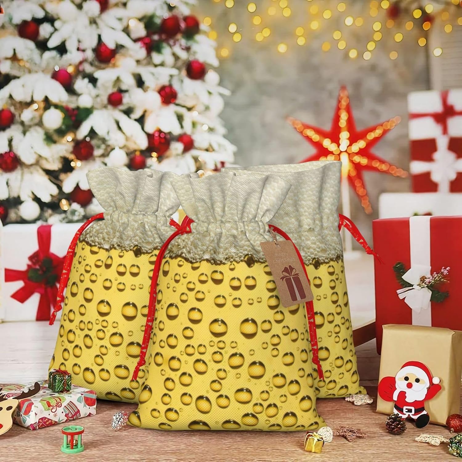 BORSE REGALO DI ALTO VALORE: la borsa per bolle di birra è dotata di sacchetti regalo con cordoncini colorati ed etichette. I sacchetti regalo sono aggiornati con un design con chiusura a coulisse, sacchetti regalo realizzati in poliestere, resistenti e riutilizzabili. Non si strappano come la carta, ottimi per incartare i regali. 10 secondi per incartare un regalo: il sacchetto a bolle di birra per confezionare facilmente i regali, è facile da usare, basta inserire il regalo nei sacchetti, far scorrere l'etichetta regalo attraverso il nastro, tirare il nastro, annodare un fiocco e il gioco è fatto. Puoi evitare il fastidio associato a carta da imballaggio, forbici, nastro adesivo e nastro, risparmiare tempo e molto conveniente. Dimensioni del sacchetto regalo: i sacchetti regalo in 2 dimensioni possono soddisfare le preferenze di diverse persone e sono sufficienti per l'uso quotidiano e la festa di Natale. La S misura 12 x 17,5 cm e la M misura 12 x 30 cm. Sacchetti regalo in formati assortiti sfusi, perfetti per confezionare regali di diverse dimensioni. REGALO NEL REGALO: questi sacchetti regalo con bolle di birra possono essere riutilizzati molte volte. Un set di sacchetti regalo riutilizzabili sarà un'aggiunta meravigliosa a qualsiasi regalo e migliorerà l'esperienza complessiva del regalo. Inoltre, abbiamo rinforzato il fondo per una maggiore stabilità e una struttura robusta con carichi pesanti. Non facile da rompere per un uso durevole e duraturo. Sacchetti regalo multifunzionali: questi sacchetti a bolle di birra possono essere utilizzati per conservare regali di Natale, giocattoli, bambole, cappelli di Natale, caramelle e regali durante una festa di Natale. Conservare i regali in questa borsa darà ai bambini più sorprese perché non sanno cosa c'è dentro.