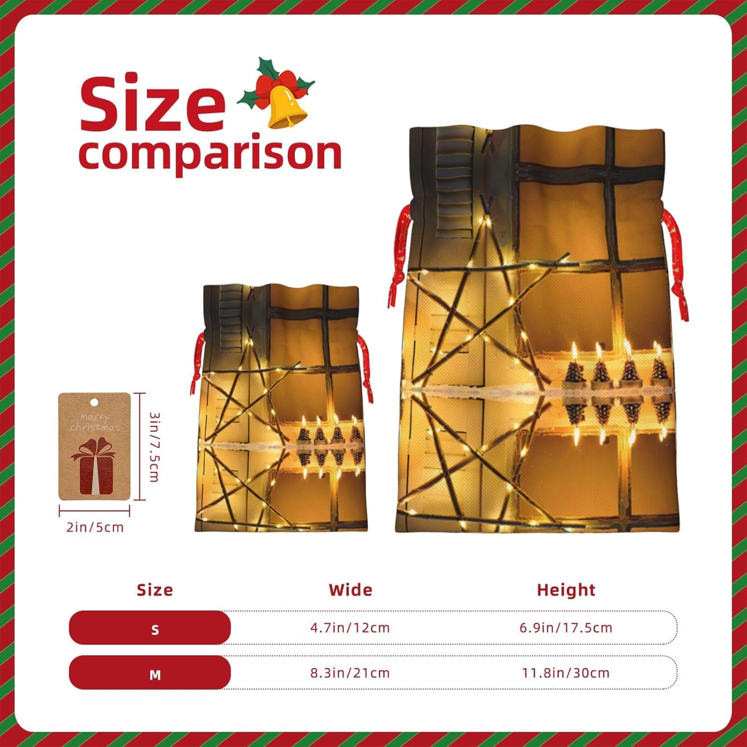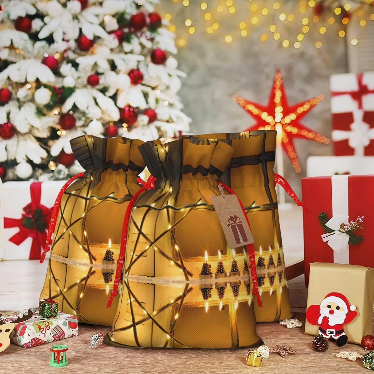 BORSE REGALO DI ALTO VALORE: la borsa Merry Christmas Star è dotata di sacchetti regalo con cordoncini colorati ed etichette. I sacchetti regalo sono aggiornati con un design con chiusura a coulisse, sacchetti regalo realizzati in poliestere, resistenti e riutilizzabili. Non si strappano come la carta, ottimi per incartare i regali. 10 secondi per incartare un regalo: il sacchetto con stella di Natale per confezionare facilmente i regali, è facile da usare, basta inserire il regalo nei sacchetti, far scorrere l'etichetta regalo attraverso il nastro, tirare il nastro, annodare un fiocco e il gioco è fatto. Puoi evitare il fastidio associato a carta da imballaggio, forbici, nastro adesivo e nastro, risparmiare tempo e molto conveniente. Dimensioni del sacchetto regalo: i sacchetti regalo in 2 dimensioni possono soddisfare le preferenze di diverse persone e sono sufficienti per l'uso quotidiano e la festa di Natale. La S misura 12 x 17,5 cm e la M misura 12 x 30 cm. Sacchetti regalo in formati assortiti sfusi, perfetti per confezionare regali di diverse dimensioni. Regalo nel regalo: questi sacchetti regalo con stella di Natale possono essere riutilizzati molte volte. Un set di sacchetti regalo riutilizzabili sarà un'aggiunta meravigliosa a qualsiasi regalo e migliorerà l'esperienza complessiva del regalo. Inoltre, abbiamo rinforzato il fondo per una maggiore stabilità e una struttura robusta con carichi pesanti. Non facile da rompere per un uso durevole e duraturo. Sacchetti regalo multifunzionali: questi sacchetti regalo natalizi a forma di stella di Natale possono essere utilizzati per conservare regali di Natale, giocattoli, bambole, cappelli di Natale, caramelle e regali durante la festa di Natale. Conservare i regali in questa borsa darà ai bambini più sorprese perché non sanno cosa c'è dentro.
