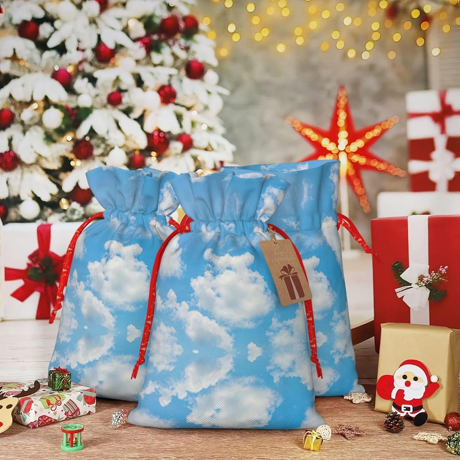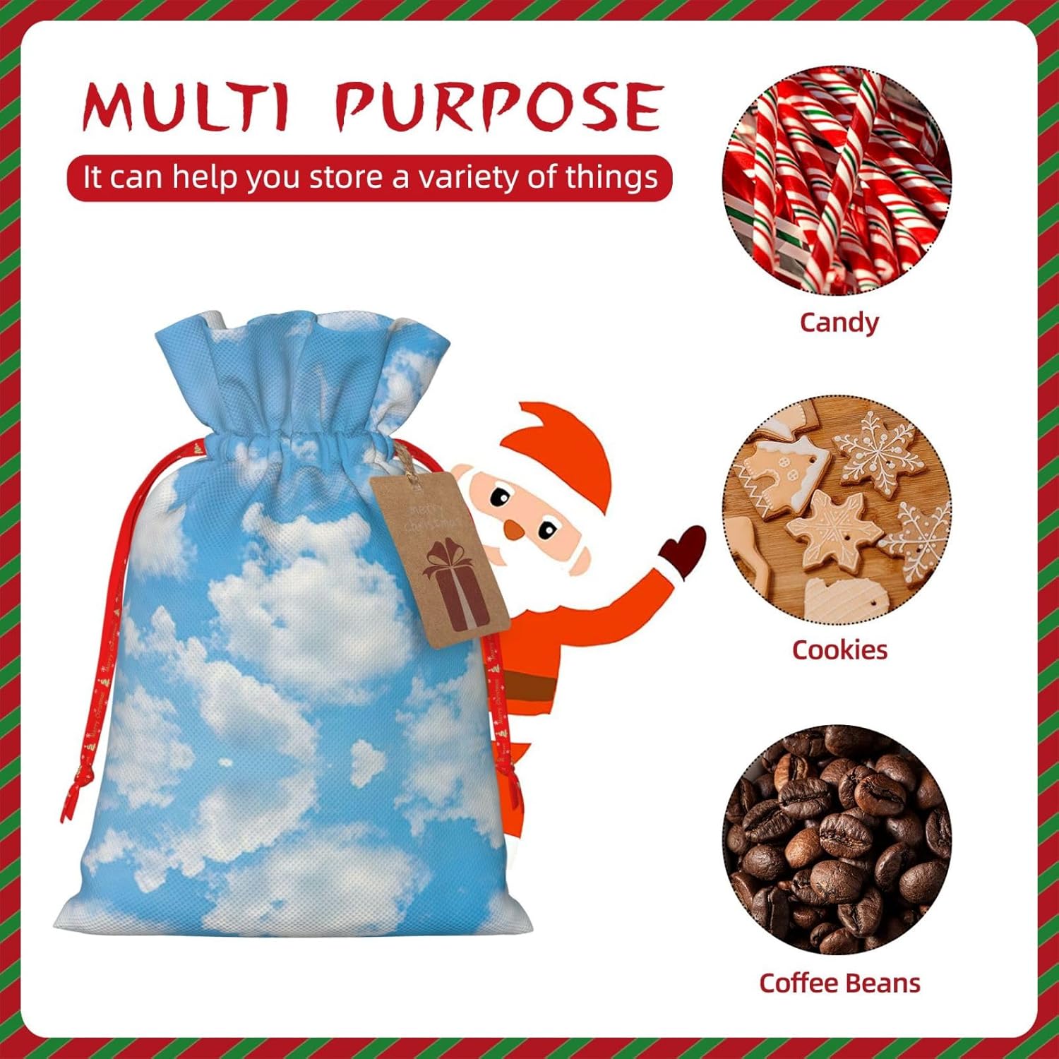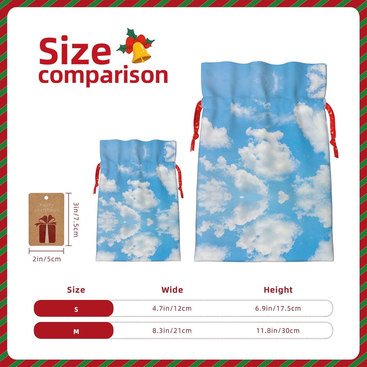 BORSE REGALO DI ALTO VALORE: la borsa Sky Blue White Cloud è dotata di sacchetti regalo con cordoncini colorati ed etichette. I sacchetti regalo sono aggiornati con un design con chiusura a coulisse, sacchetti regalo realizzati in poliestere, resistenti e riutilizzabili. Non si strappano come la carta, ottimi per incartare i regali. 10 secondi per incartare un regalo: il sacchetto con nuvola bianca celeste per confezionare facilmente i regali, è facile da usare, basta inserire il regalo nei sacchetti, far scorrere l'etichetta regalo attraverso il nastro, tirare il nastro, annodare un fiocco e il gioco è fatto. Puoi evitare il fastidio associato a carta da imballaggio, forbici, nastro adesivo e nastro, risparmiare tempo e molto conveniente. Dimensioni del sacchetto regalo: i sacchetti regalo in 2 dimensioni possono soddisfare le preferenze di diverse persone e sono sufficienti per l'uso quotidiano e la festa di Natale. La S misura 12 x 17,5 cm e la M misura 12 x 30 cm. Sacchetti regalo in formati assortiti sfusi, perfetti per confezionare regali di diverse dimensioni. REGALO NEL REGALO: questi sacchetti regalo blu cielo e bianco nuvola possono essere riutilizzati molte volte. Un set di sacchetti regalo riutilizzabili sarà un'aggiunta meravigliosa a qualsiasi regalo e migliorerà l'esperienza complessiva del regalo. Inoltre, abbiamo rinforzato il fondo per una maggiore stabilità e una struttura robusta con carichi pesanti. Non facile da rompere per un uso durevole e duraturo. Sacchetti regalo multifunzionali: questi sacchetti natalizi con nuvola celeste e bianca possono essere utilizzati per conservare regali di Natale, giocattoli, bambole, cappelli natalizi, caramelle e regali durante una festa di Natale. Conservare i regali in questa borsa darà ai bambini più sorprese perché non sanno cosa c'è dentro.