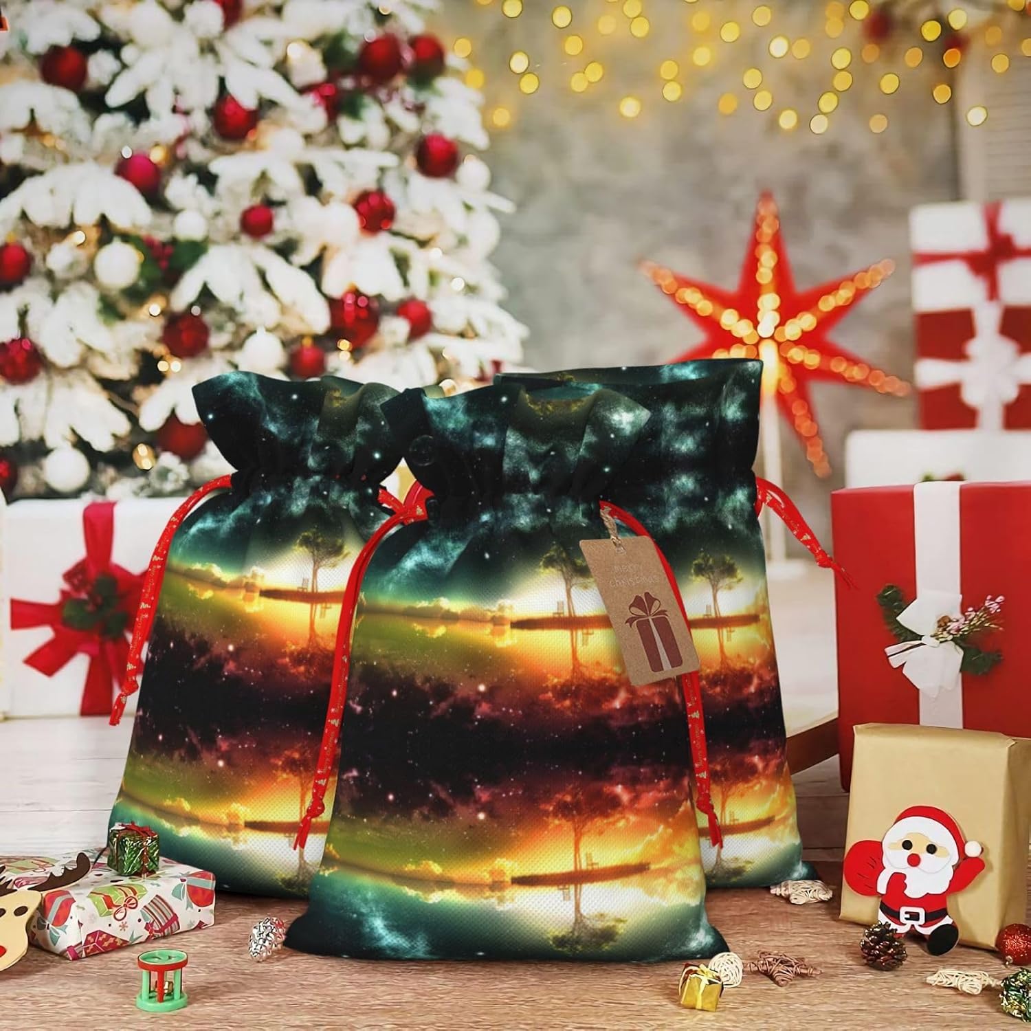 BORSE REGALO DI ALTO VALORE: la borsa Anime Sky è dotata di sacchetti regalo con cordoncini colorati ed etichette. I sacchetti regalo sono aggiornati con un design con chiusura a coulisse, sacchetti regalo realizzati in poliestere, resistenti e riutilizzabili. Non si strappano come la carta, ottimi per incartare i regali. 10 secondi per incartare un regalo: borsa Anime Sky per confezionare facilmente i regali, è facile da usare, basta inserire il regalo nelle buste, far scorrere l'etichetta regalo attraverso il nastro, tirare il nastro, annodare un fiocco e il gioco è fatto. Puoi evitare il fastidio associato a carta da imballaggio, forbici, nastro adesivo e nastro, risparmiare tempo e molto conveniente. Dimensioni del sacchetto regalo: i sacchetti regalo in 2 dimensioni possono soddisfare le preferenze di diverse persone e sono sufficienti per l'uso quotidiano e la festa di Natale. La S misura 12 x 17,5 cm e la M misura 12 x 30 cm. Sacchetti regalo in formati assortiti sfusi, perfetti per confezionare regali di diverse dimensioni. REGALO NEL REGALO: questi sacchetti regalo Anime Sky possono essere riutilizzati molte volte. Un set di sacchetti regalo riutilizzabili sarà un'aggiunta meravigliosa a qualsiasi regalo e migliorerà l'esperienza complessiva del regalo. Inoltre, abbiamo rinforzato il fondo per una maggiore stabilità e una struttura robusta con carichi pesanti. Non facile da rompere per un uso durevole e duraturo. Sacchetti regalo multifunzionali: questi sacchetti natalizi possono essere utilizzati per conservare regali di Natale, giocattoli, bambole, cappelli natalizi, caramelle e regali durante una festa di Natale. Conservare i regali in questa borsa darà ai bambini più sorprese perché non sanno cosa c'è dentro.