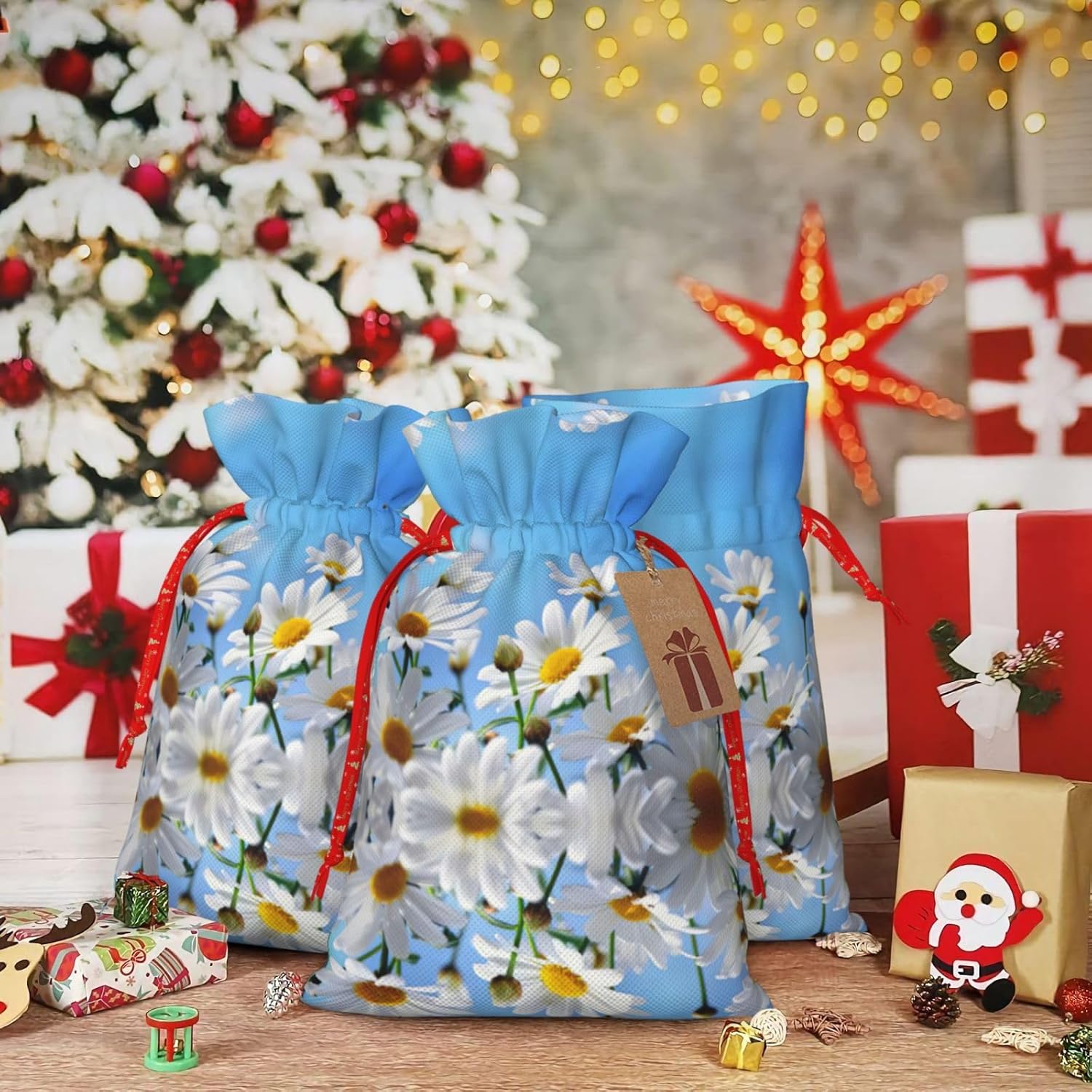 BORSE REGALO DI ALTO VALORE: la borsa Daisy bianca è dotata di sacchetti regalo con cordoncini colorati ed etichette. I sacchetti regalo sono aggiornati con un design con chiusura a coulisse, sacchetti regalo realizzati in poliestere, resistenti e riutilizzabili. Non si strappano come la carta, ottimi per incartare i regali. 10 secondi per incartare un regalo: il sacchetto con margherite bianche per confezionare facilmente i regali, è facile da usare, basta inserire il regalo nei sacchetti, far scorrere l'etichetta regalo attraverso il nastro, tirare il nastro, annodare un fiocco e il gioco è fatto. Puoi evitare il fastidio associato a carta da imballaggio, forbici, nastro adesivo e nastro, risparmiare tempo e molto conveniente. Dimensioni del sacchetto regalo: i sacchetti regalo in 2 dimensioni possono soddisfare le preferenze di diverse persone e sono sufficienti per l'uso quotidiano e la festa di Natale. La S misura 12 x 17,5 cm e la M misura 12 x 30 cm. Sacchetti regalo in formati assortiti sfusi, perfetti per confezionare regali di diverse dimensioni. REGALO NEL REGALO: questi sacchetti regalo con margherite bianche possono essere riutilizzati molte volte. Un set di sacchetti regalo riutilizzabili sarà un'aggiunta meravigliosa a qualsiasi regalo e migliorerà l'esperienza complessiva del regalo. Inoltre, abbiamo rinforzato il fondo per una maggiore stabilità e una struttura robusta con carichi pesanti. Non facile da rompere per un uso durevole e duraturo. Sacchetti regalo multifunzionali: questi sacchetti con motivo a margherite bianche possono essere utilizzati per conservare regali di Natale, giocattoli, bambole, cappelli natalizi, caramelle e regali durante una festa di Natale. Conservare i regali in questa borsa darà ai bambini più sorprese perché non sanno cosa c'è dentro.