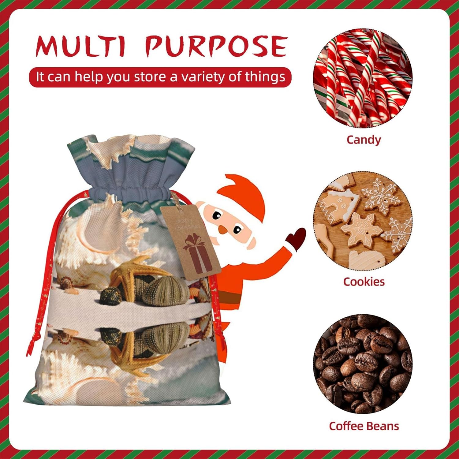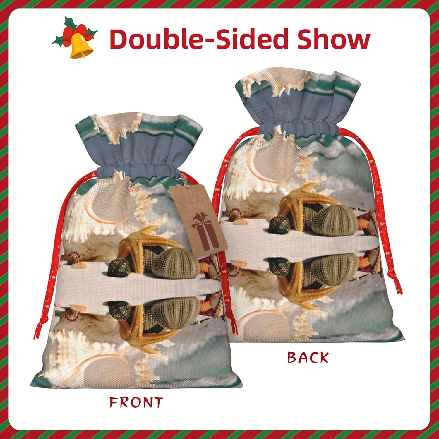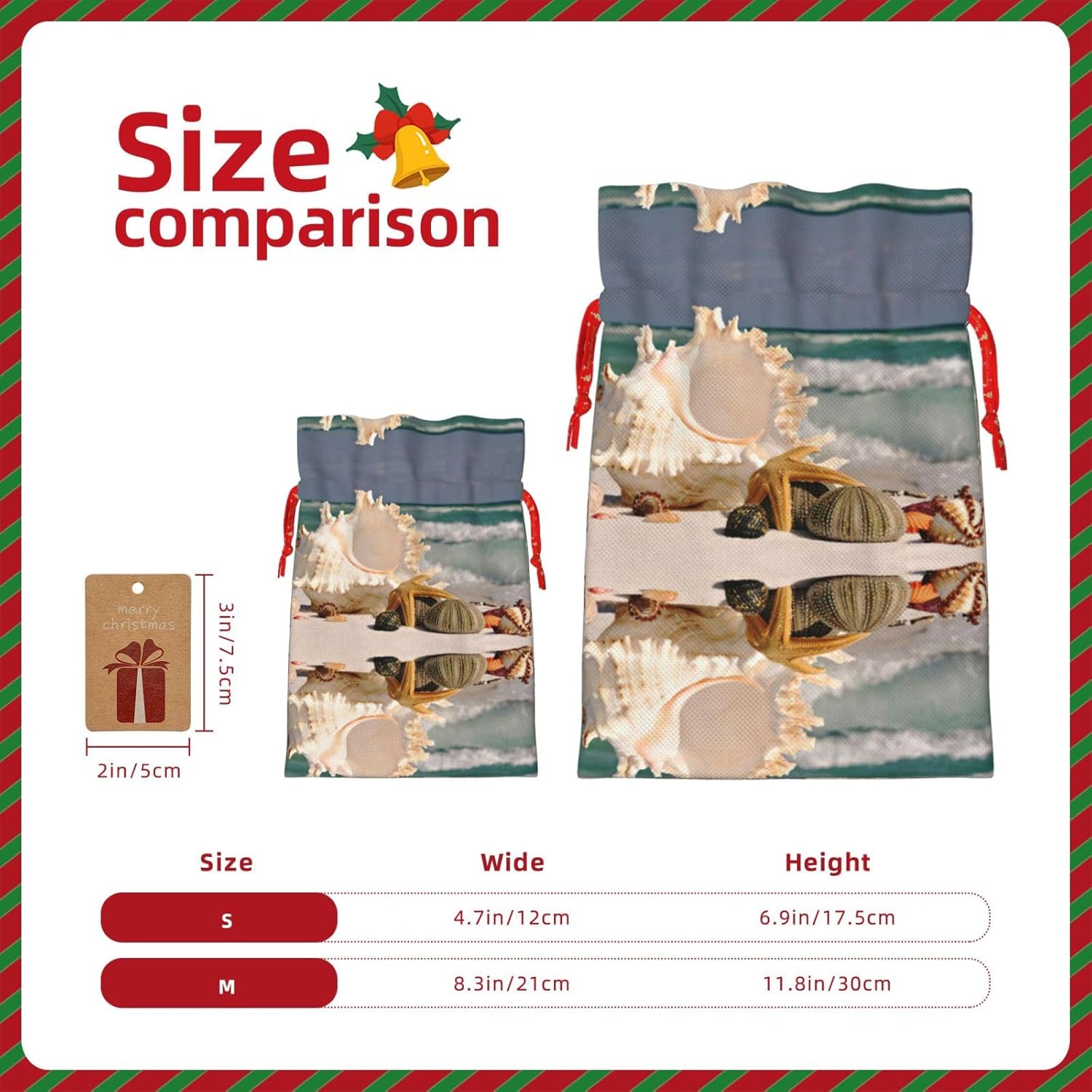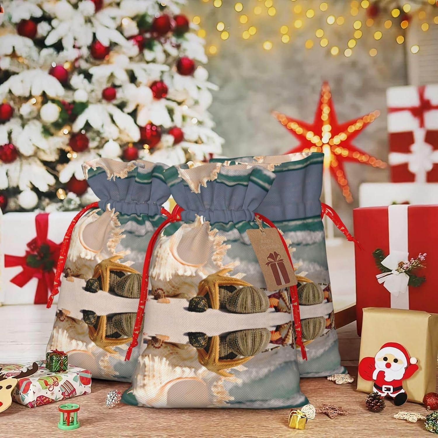 BORSE REGALO DI ALTO VALORE: la borsa da spiaggia con stelle marine e conchiglie è dotata di sacchetti regalo con cordoncini colorati ed etichette. I sacchetti regalo sono aggiornati con coulisse, sacchetti regalo realizzati in poliestere, resistenti e riutilizzabili. Non si strappano come la carta, ottimi per incartare i regali. 10 secondi per incartare un regalo: la borsa da spiaggia con stelle marine e conchiglie per confezionare facilmente i regali, è facile da usare, basta inserire il regalo nelle borse, far scorrere l'etichetta regalo attraverso il nastro, tirare il nastro, annodare un fiocco e il gioco è fatto. Puoi evitare il fastidio associato a carta da imballaggio, forbici, nastro adesivo e nastro, risparmiare tempo e molto conveniente. Dimensioni del sacchetto regalo: i sacchetti regalo in 2 dimensioni possono soddisfare le preferenze di diverse persone e sono sufficienti per l'uso quotidiano e la festa di Natale. La S misura 12 x 17,5 cm e la M misura 12 x 30 cm. Sacchetti regalo in formati assortiti sfusi, perfetti per confezionare regali di diverse dimensioni. REGALO IDEALE: questi sacchetti regalo con stelle marine e conchiglie possono essere riutilizzati molte volte. Un set di sacchetti regalo riutilizzabili sarà un'aggiunta meravigliosa a qualsiasi regalo e migliorerà l'esperienza complessiva del regalo. Inoltre, abbiamo rinforzato il fondo per una maggiore stabilità e una struttura robusta con carichi pesanti. Non facile da rompere per un uso durevole e duraturo. Sacchetti regalo multifunzionali: questi sacchetti natalizi possono essere utilizzati per conservare regali di Natale, giocattoli, bambole, cappelli natalizi, caramelle e regali durante una festa di Natale. Conservare i regali in questa borsa darà ai bambini più sorprese perché non sanno cosa c'è dentro.